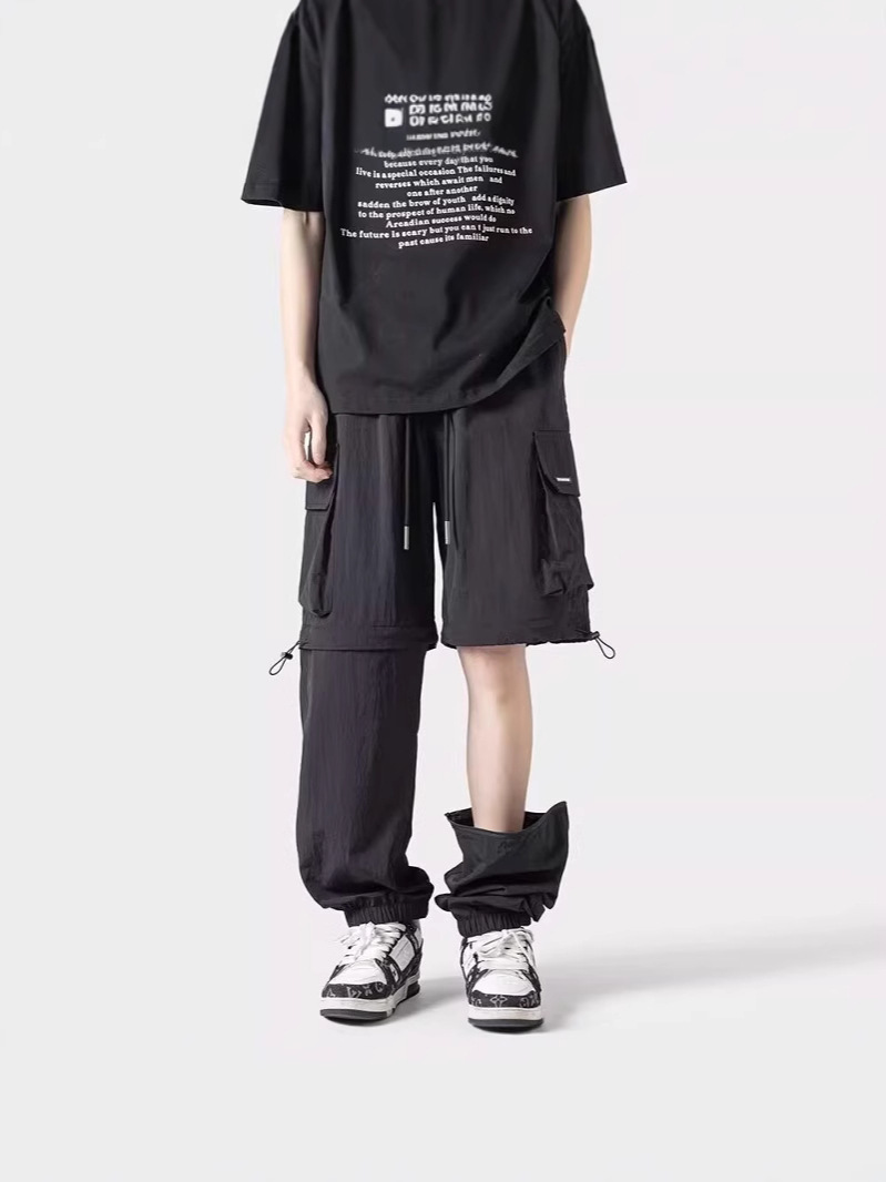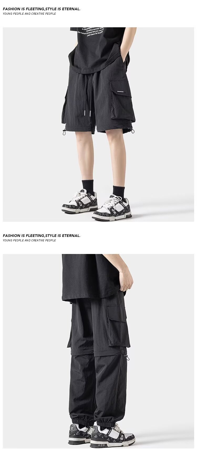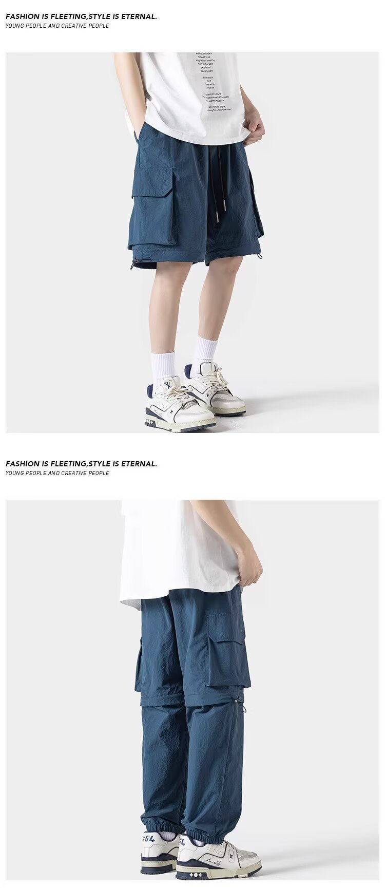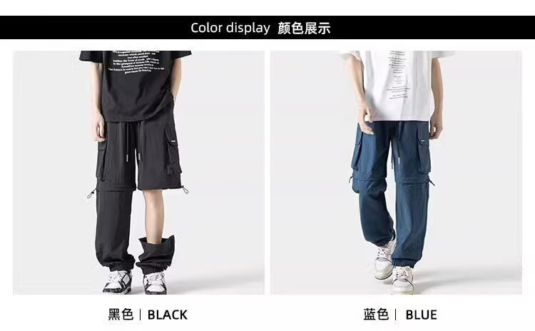 남성용 여름 탈착식 작업복 아이스 실크 바지 2025 얇은 속건성 충전 바지 잘 생긴 느슨한 레깅스 캐주얼 바지스토어 가기