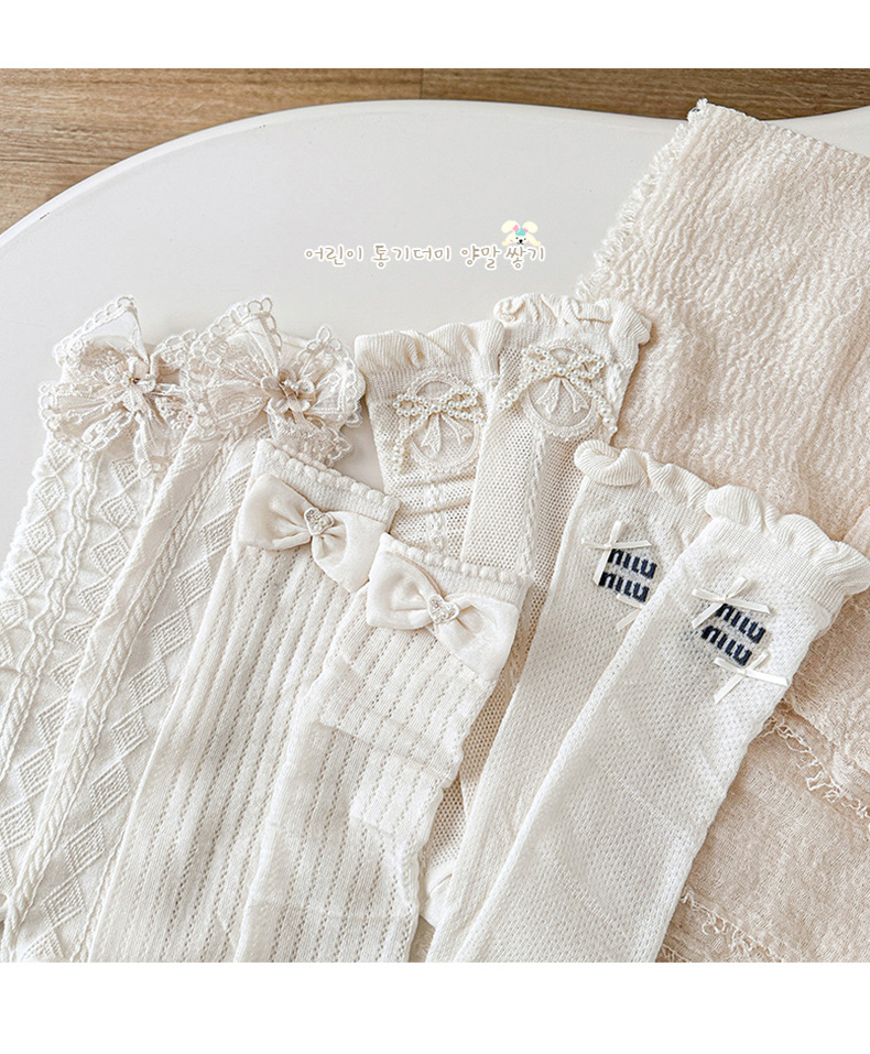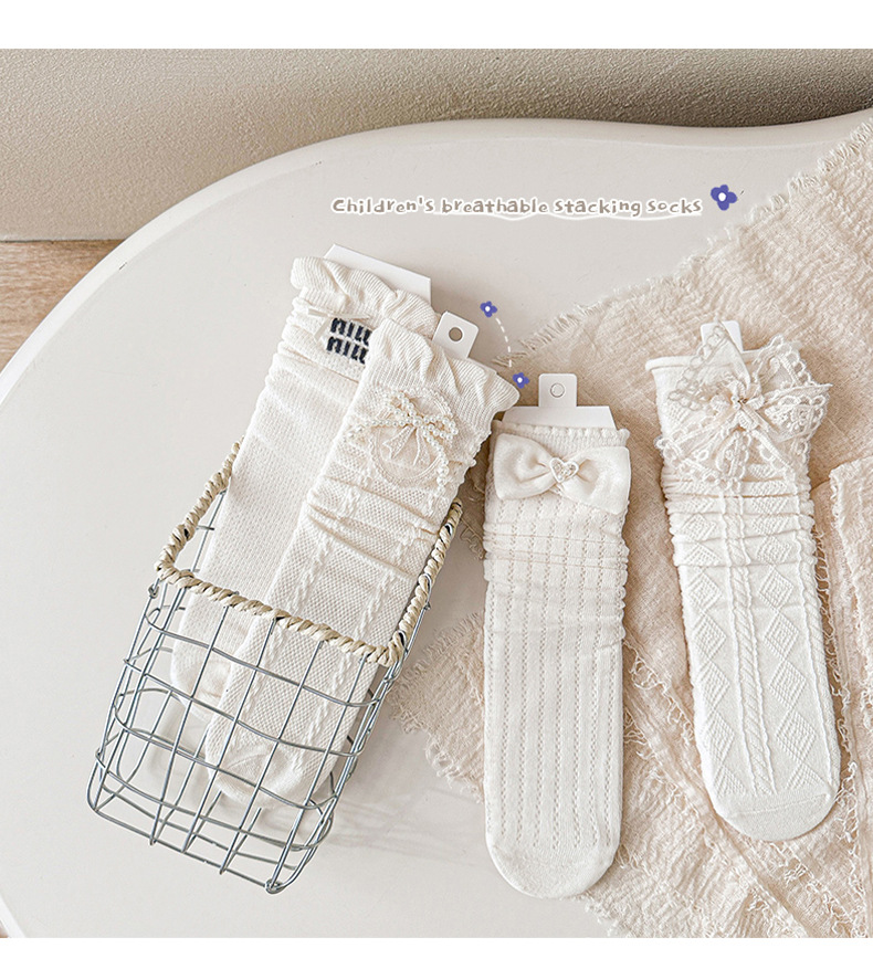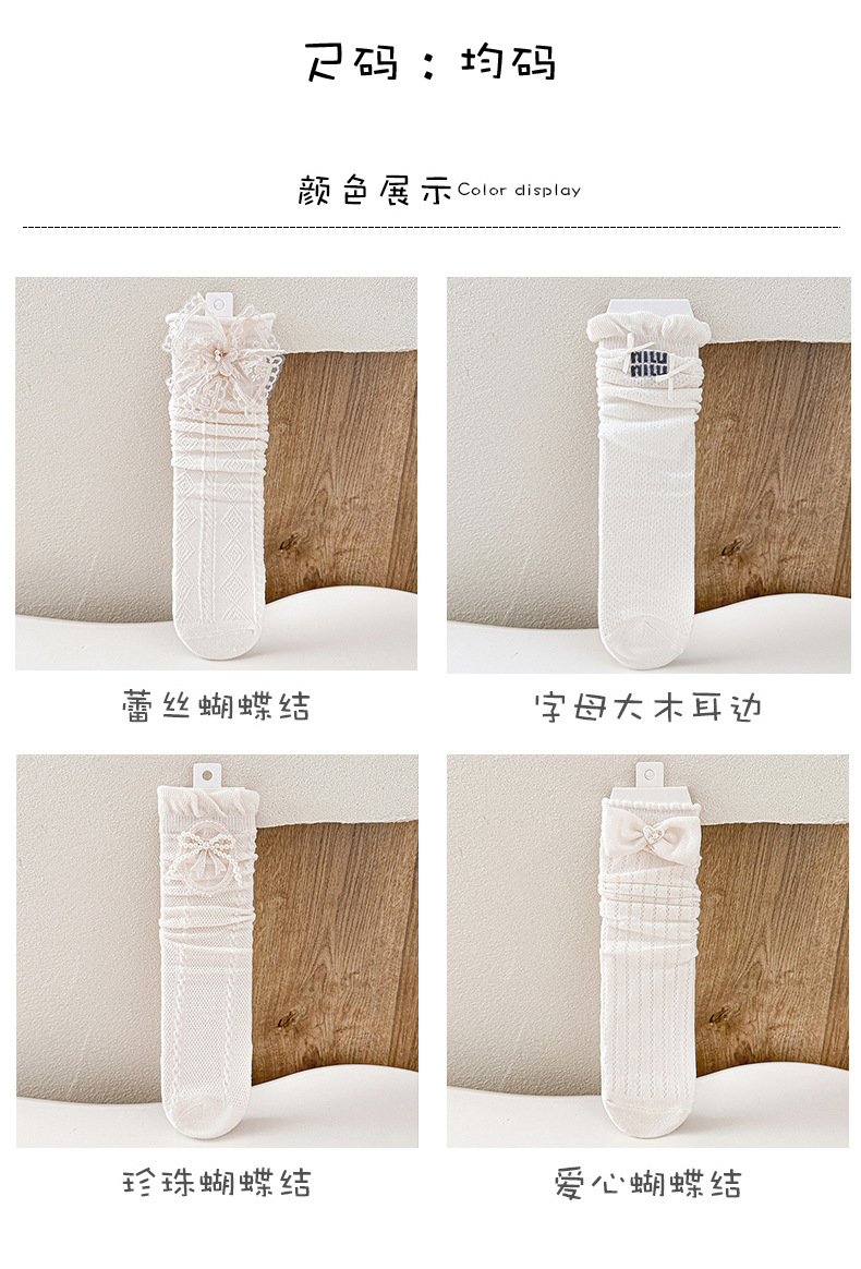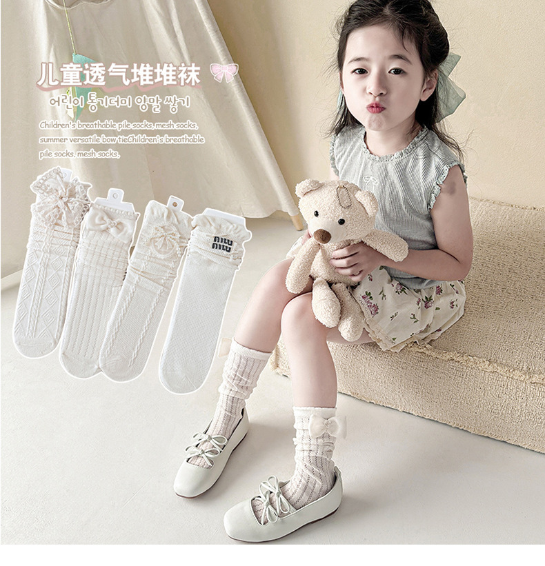 2025 여자 양말 여름 얇은 어린이 종아리 양말 중간 튜브 달콤한 활 공주 양말 아기 스타킹