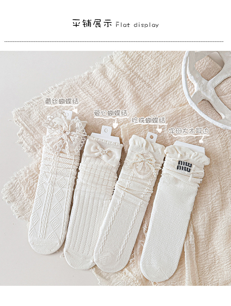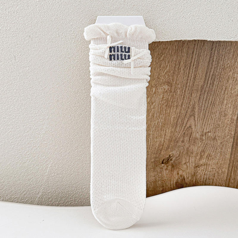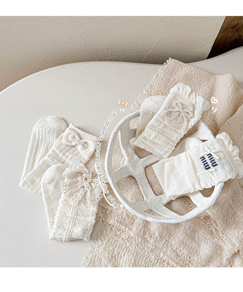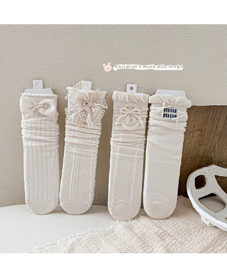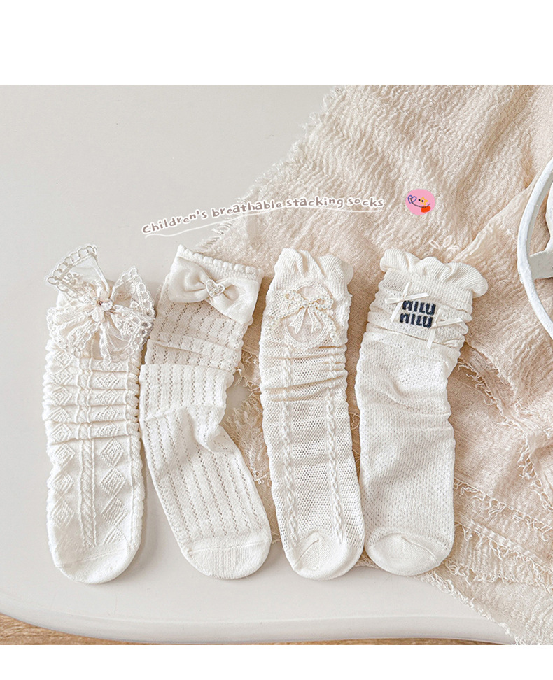 2025 여자 양말 여름 얇은 어린이 종아리 양말 중간 튜브 달콤한 활 공주 양말 아기 스타킹