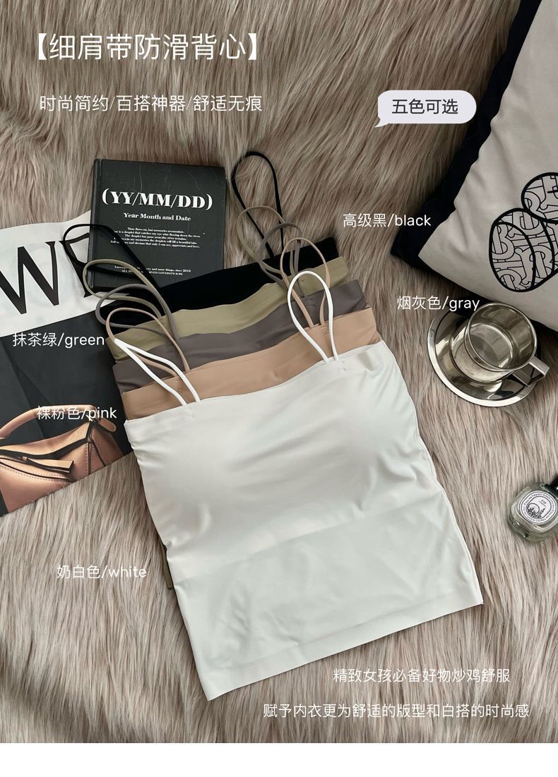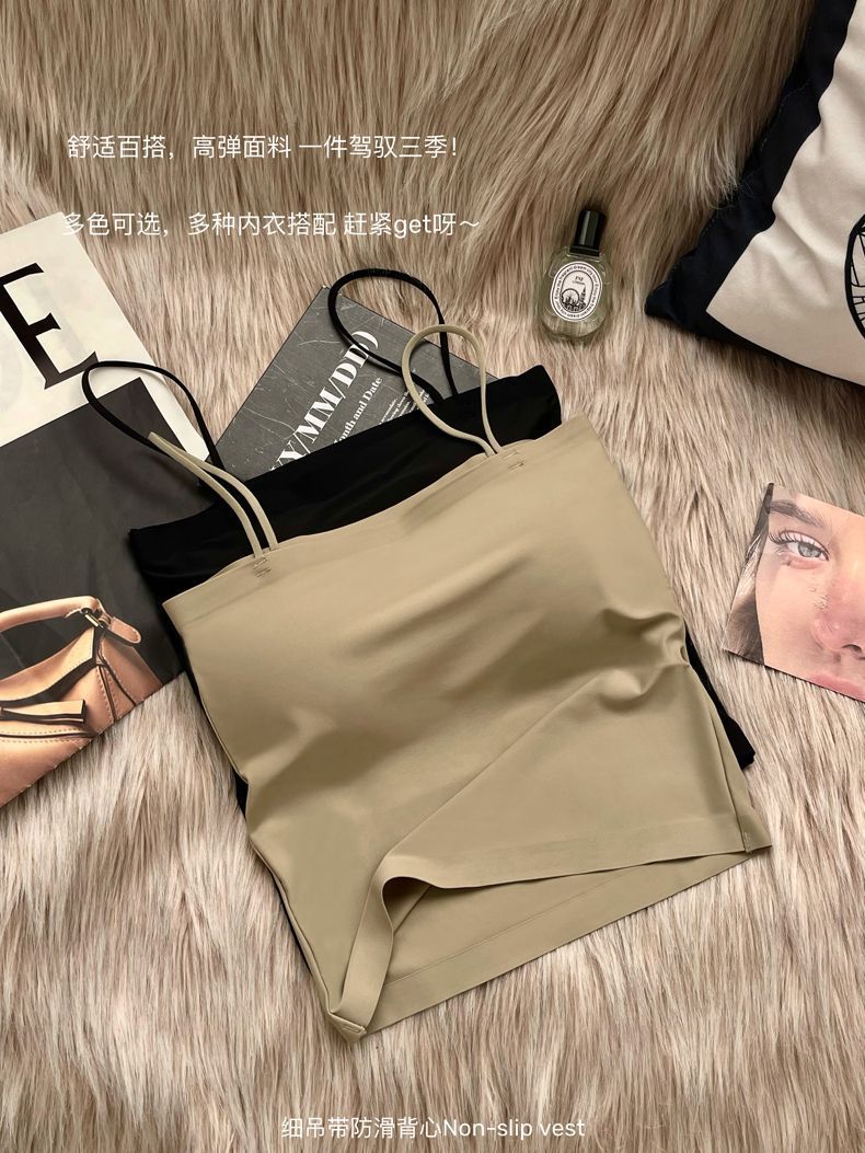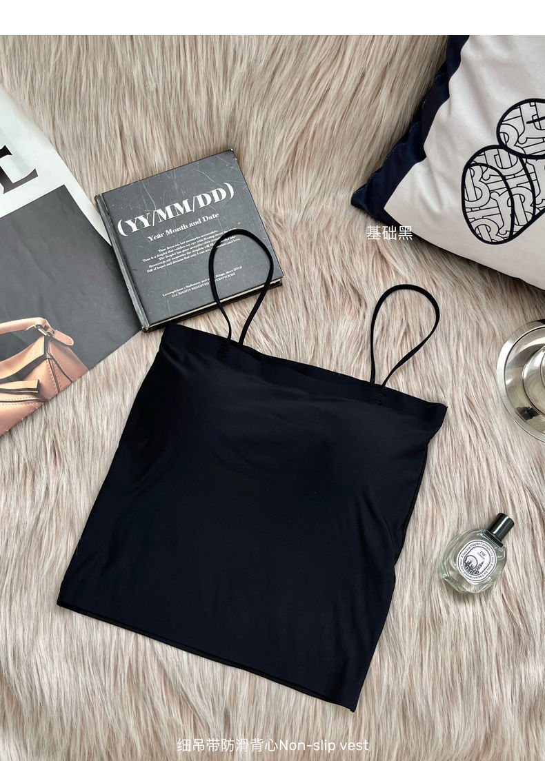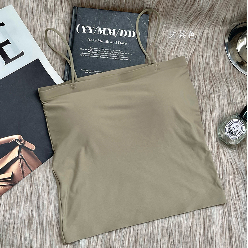 여름 고정 컵 아이스 실크 아름다운 뒤 작은 슬링 여자 내부 레이스 가슴 패드 원피스 안티 워킹 비 마킹 조끼 베이스스토어 가기