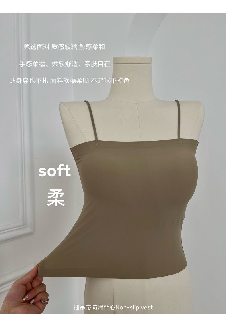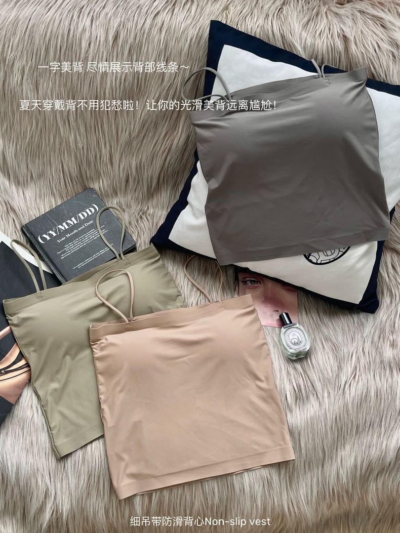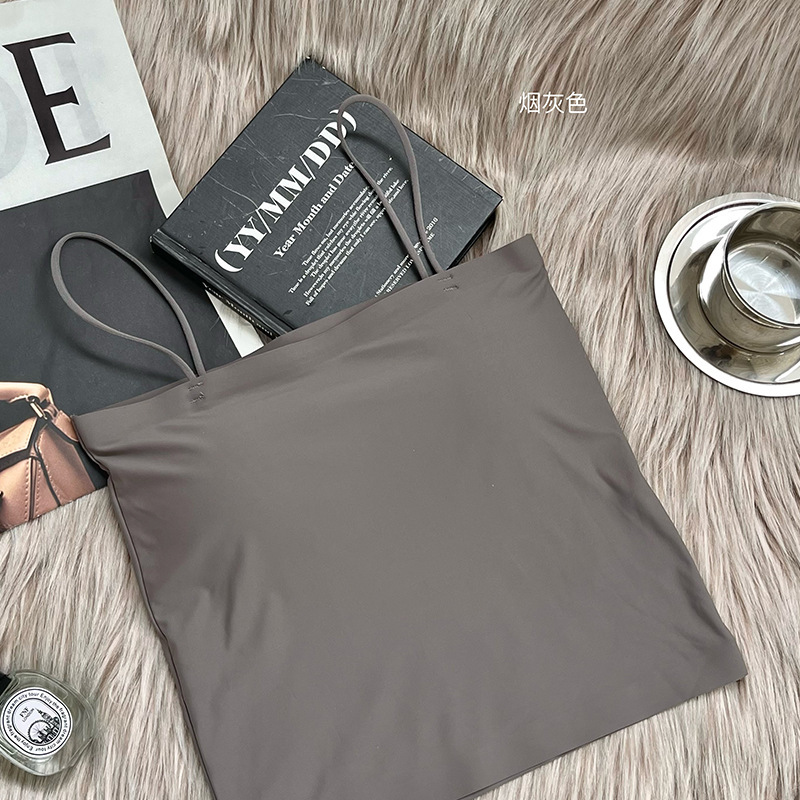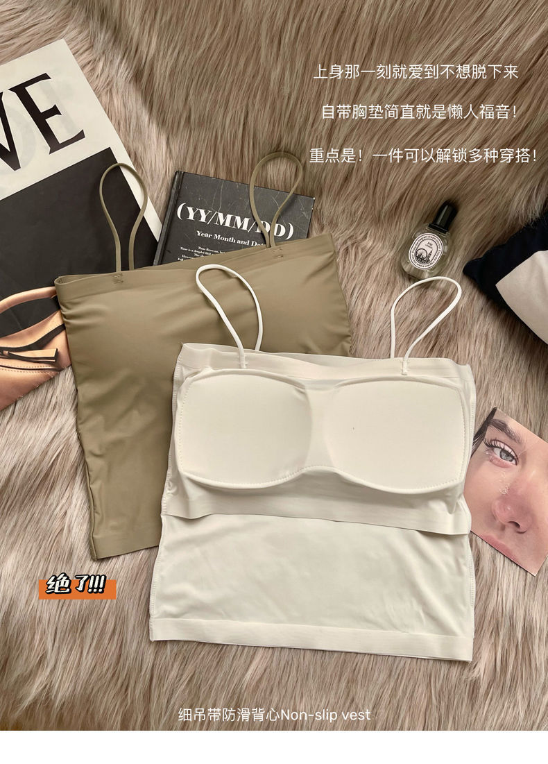 여름 고정 컵 아이스 실크 아름다운 뒤 작은 슬링 여자 내부 레이스 가슴 패드 원피스 안티 워킹 비 마킹 조끼 베이스스토어 가기