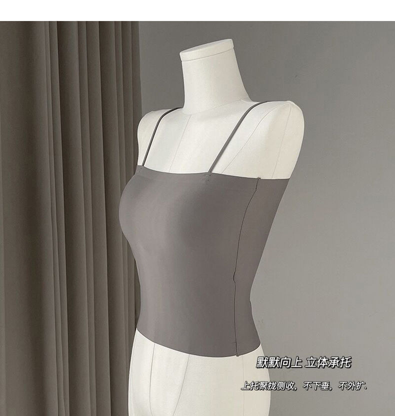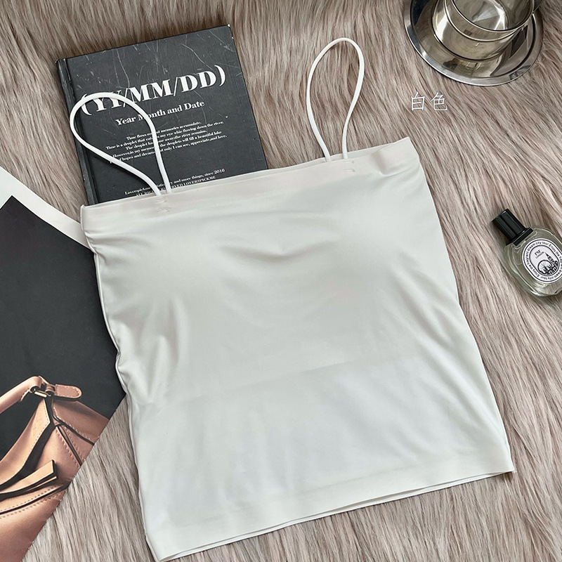 여름 고정 컵 아이스 실크 아름다운 뒤 작은 슬링 여자 내부 레이스 가슴 패드 원피스 안티 워킹 비 마킹 조끼 베이스