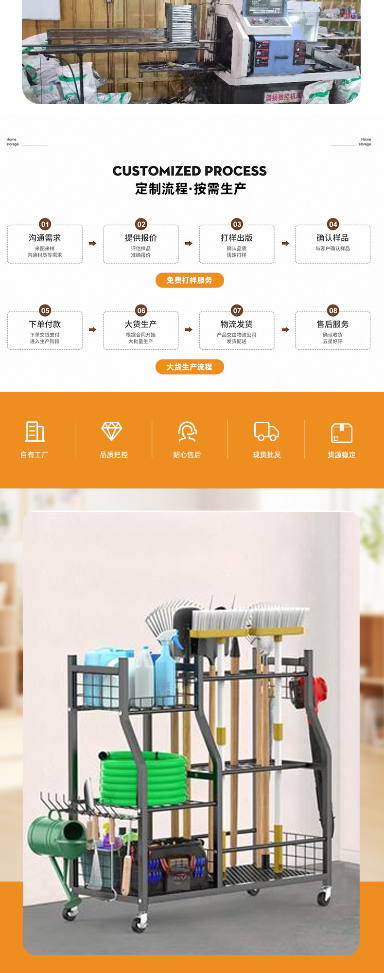 맞춤형 Amazon 국경 간 마당 청소 도구 보관 랙 차고 정원 도구 대용량 삽 보관 랙