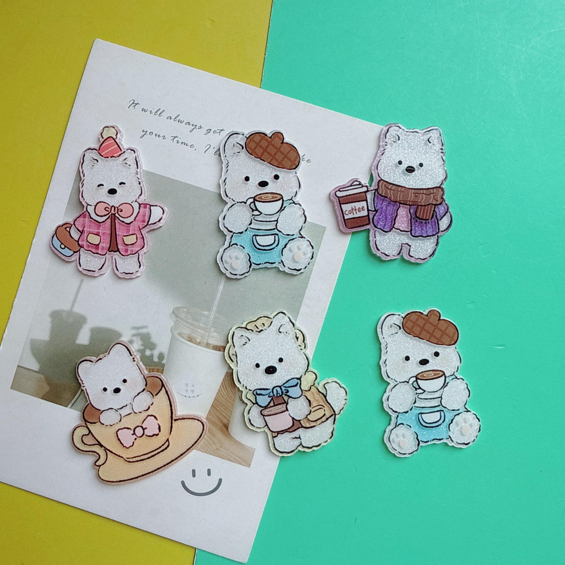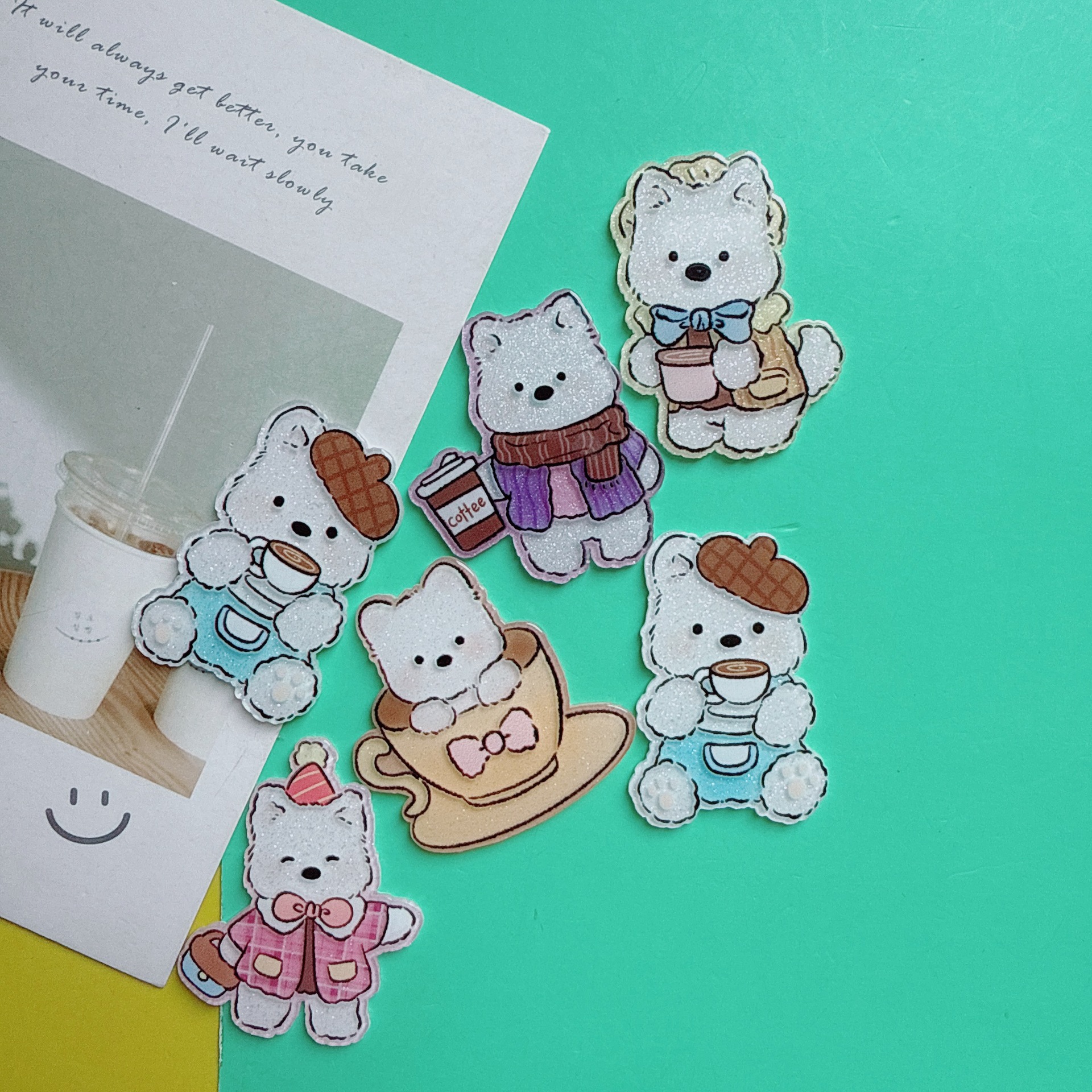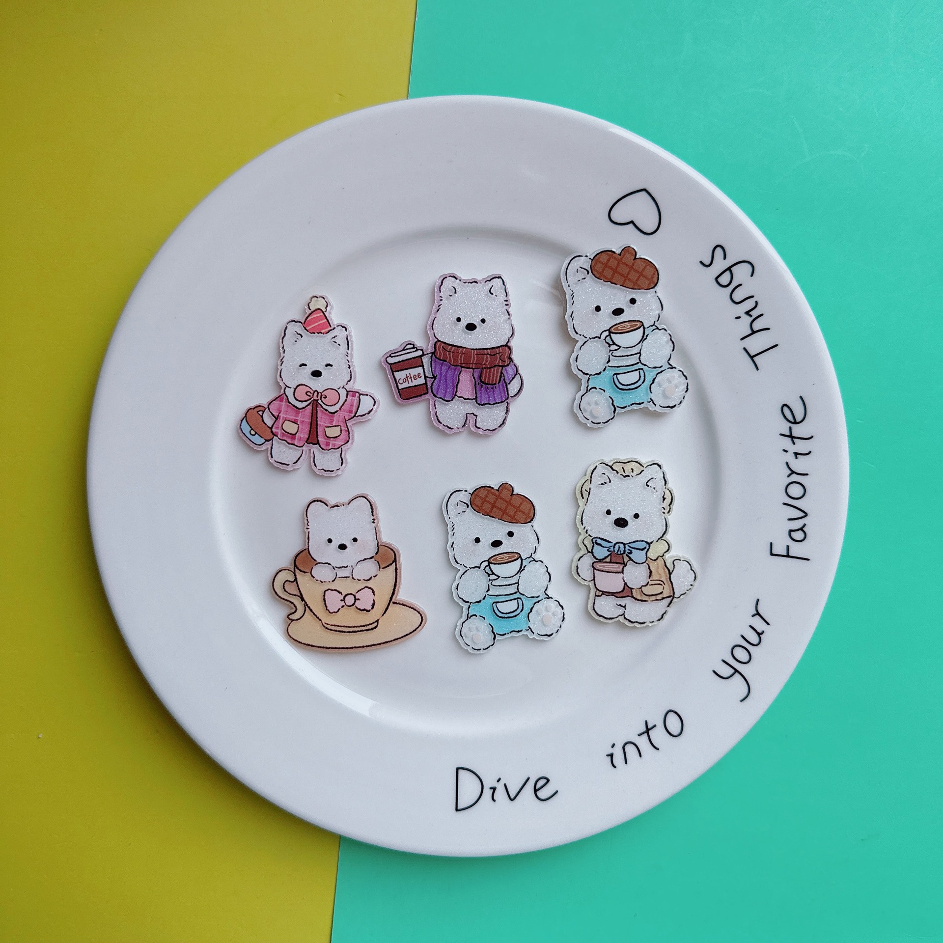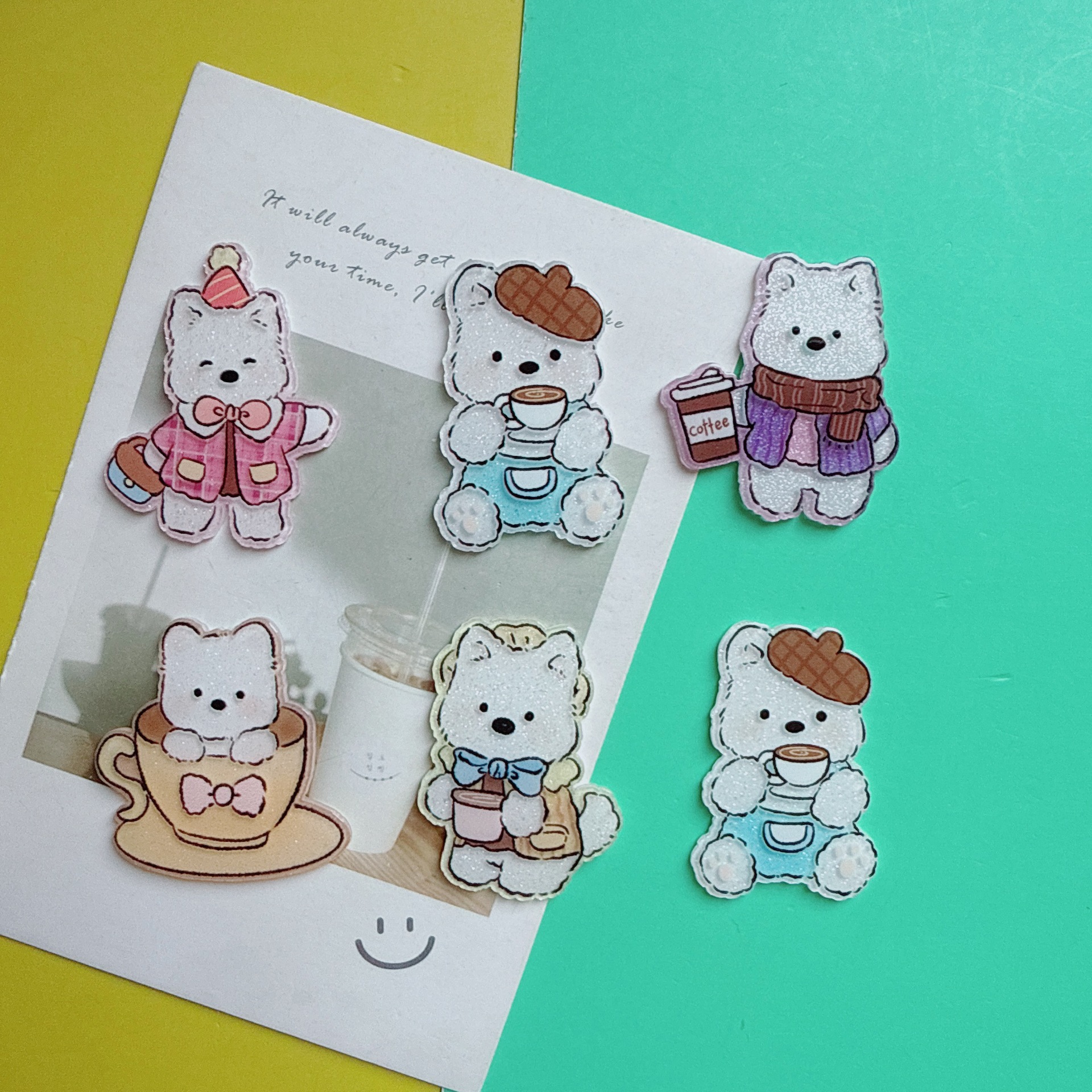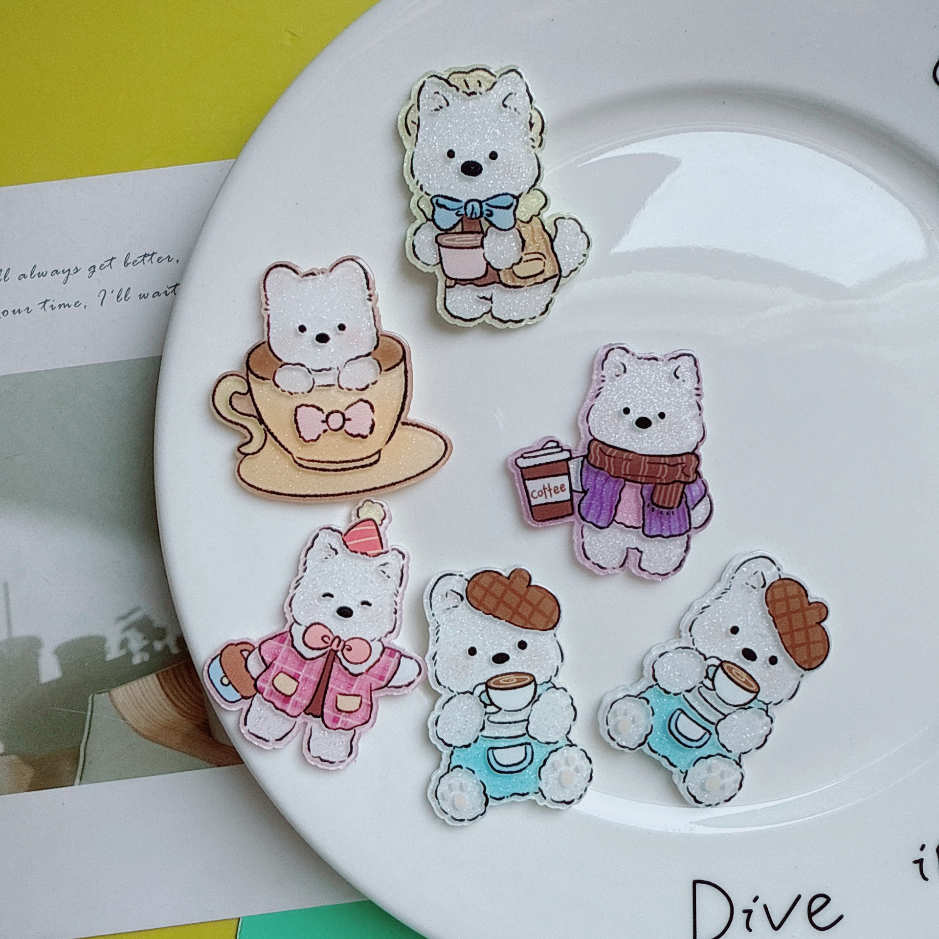 레트로 만화 웨스트 하이랜드 강아지 패치 달콤한 귀여운 아크릴 헤어 액세서리 가방 장난감 구멍 신발 소재
