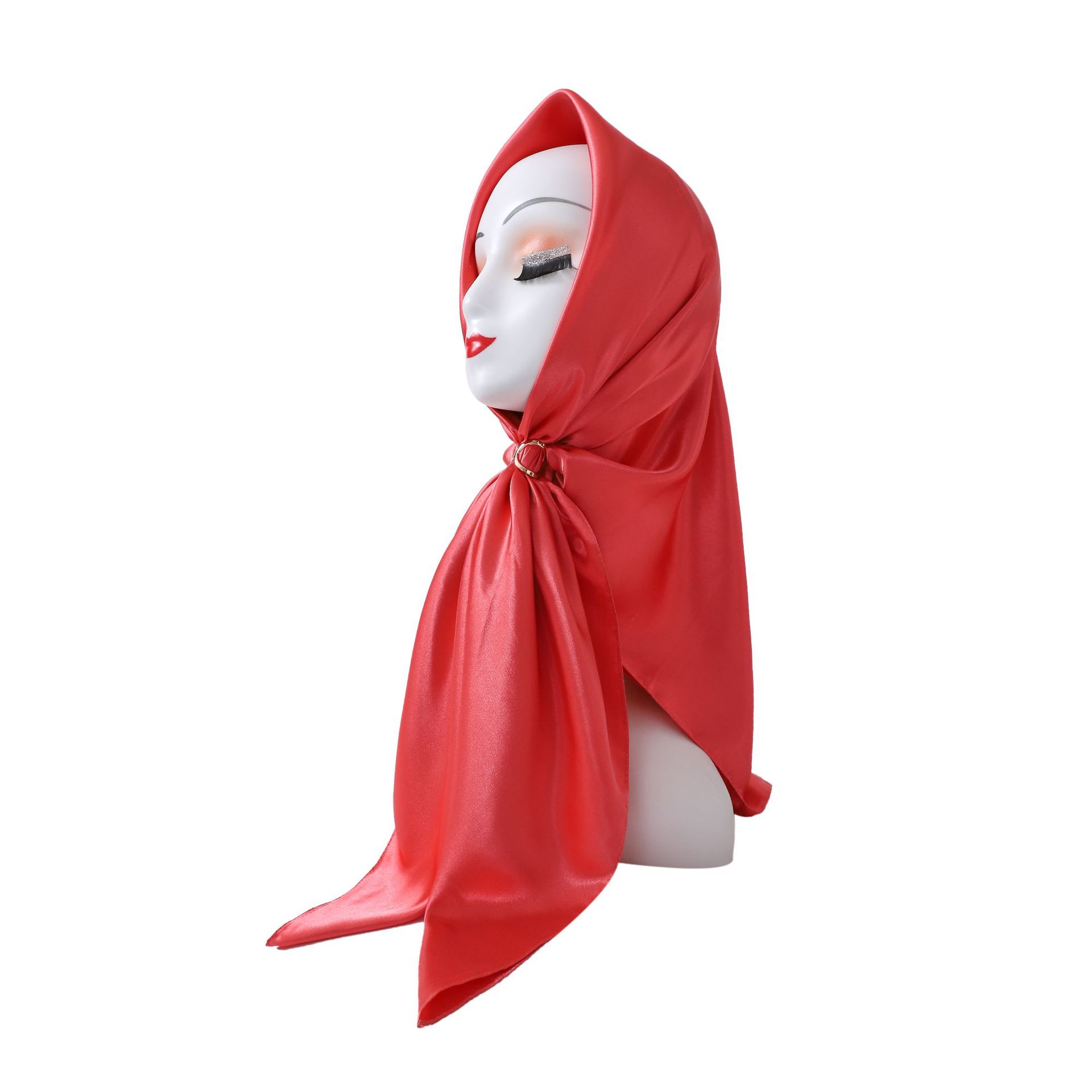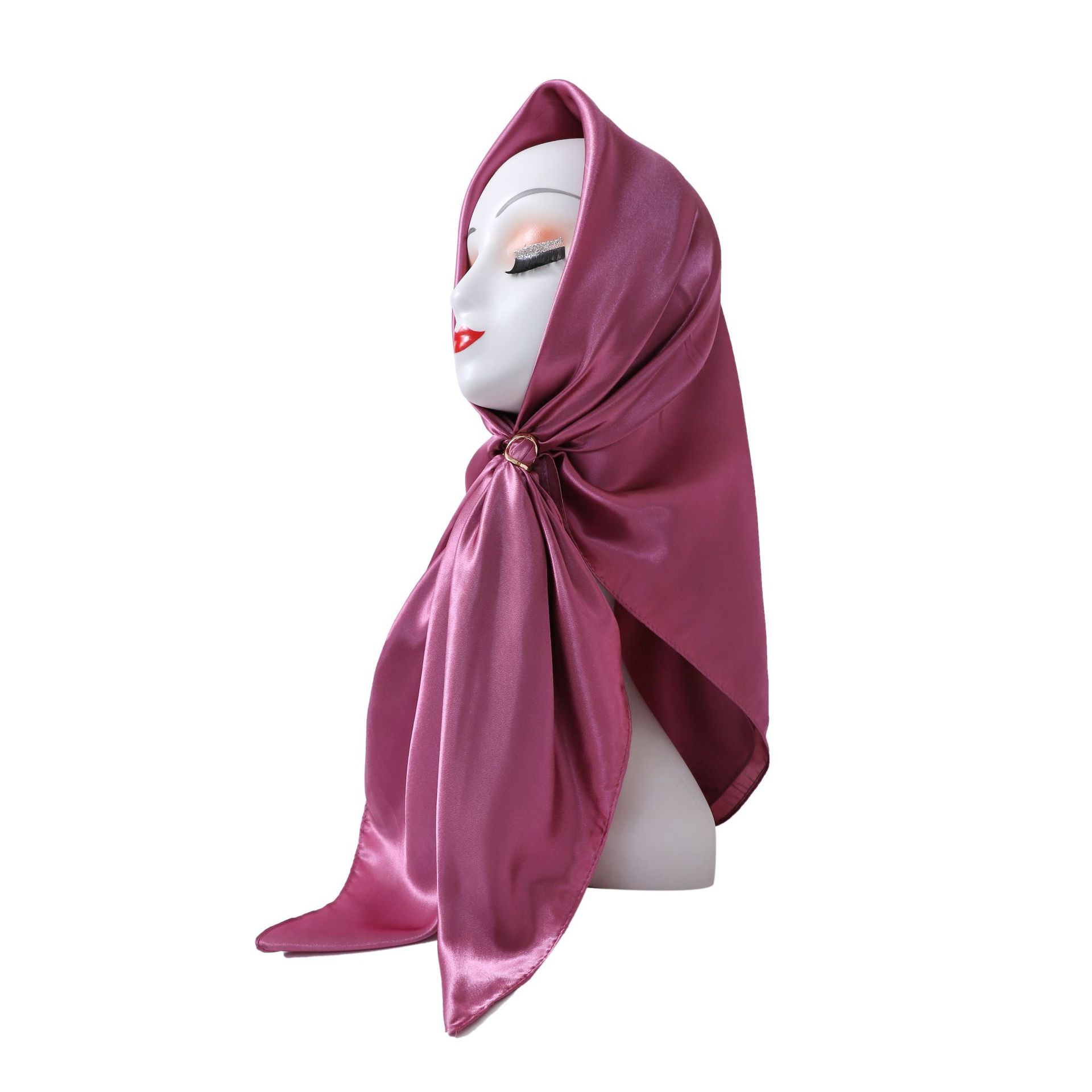 중동 히잡, 큰 사각 스카프, 단색 실크 스카프, 여성용 인조 실크, 새틴, 중앙아시아 스카프