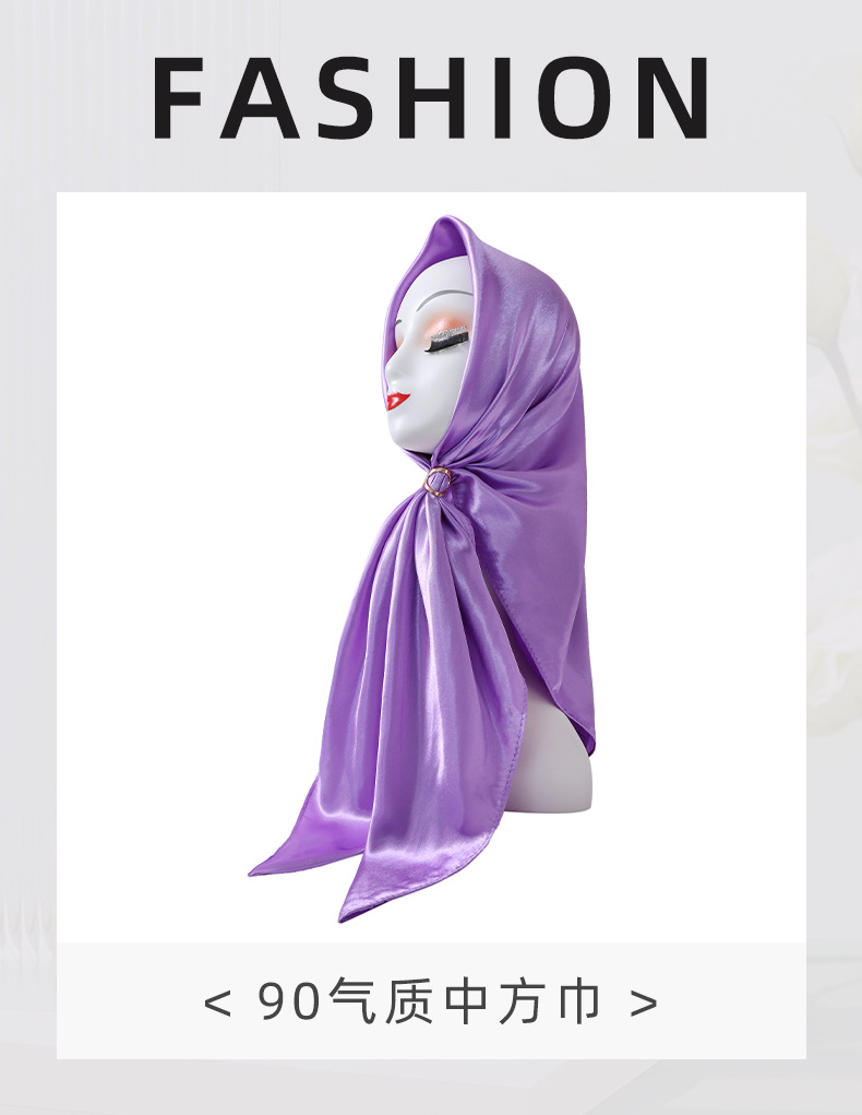 중동 히잡, 큰 사각 스카프, 단색 실크 스카프, 여성용 인조 실크, 새틴, 중앙아시아 스카프스토어 가기