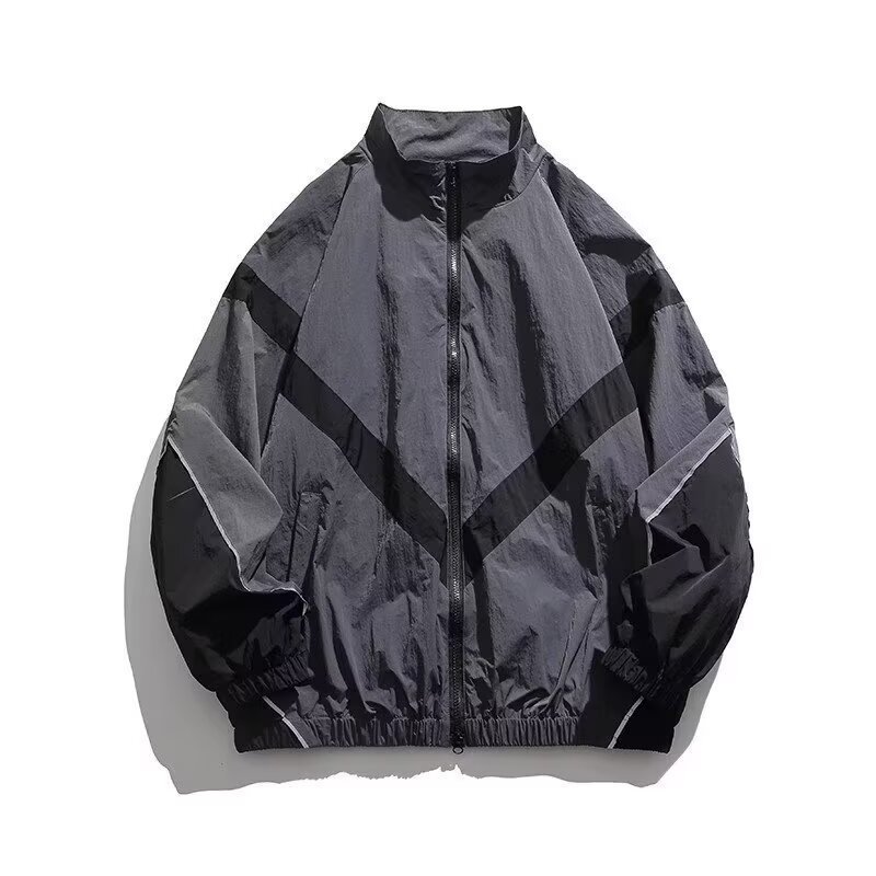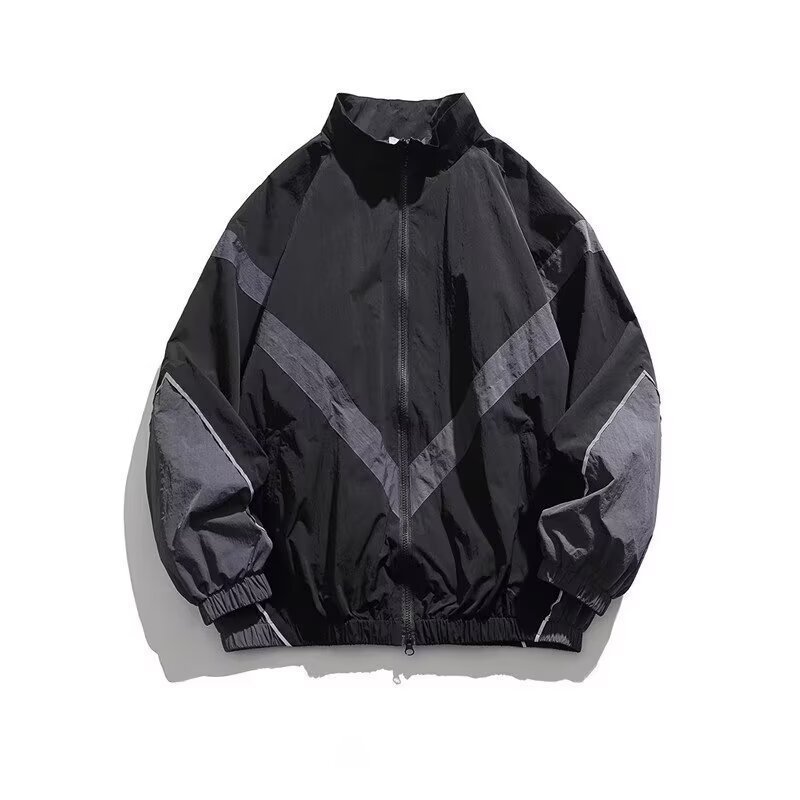 아메리칸 트렌디 브랜드 인레이드 반사 스플라이싱 스탠드 칼라 지퍼 재킷 봄, 가을 재킷 루즈 캐주얼 재킷 남성용 얇은 스타일스토어 가기