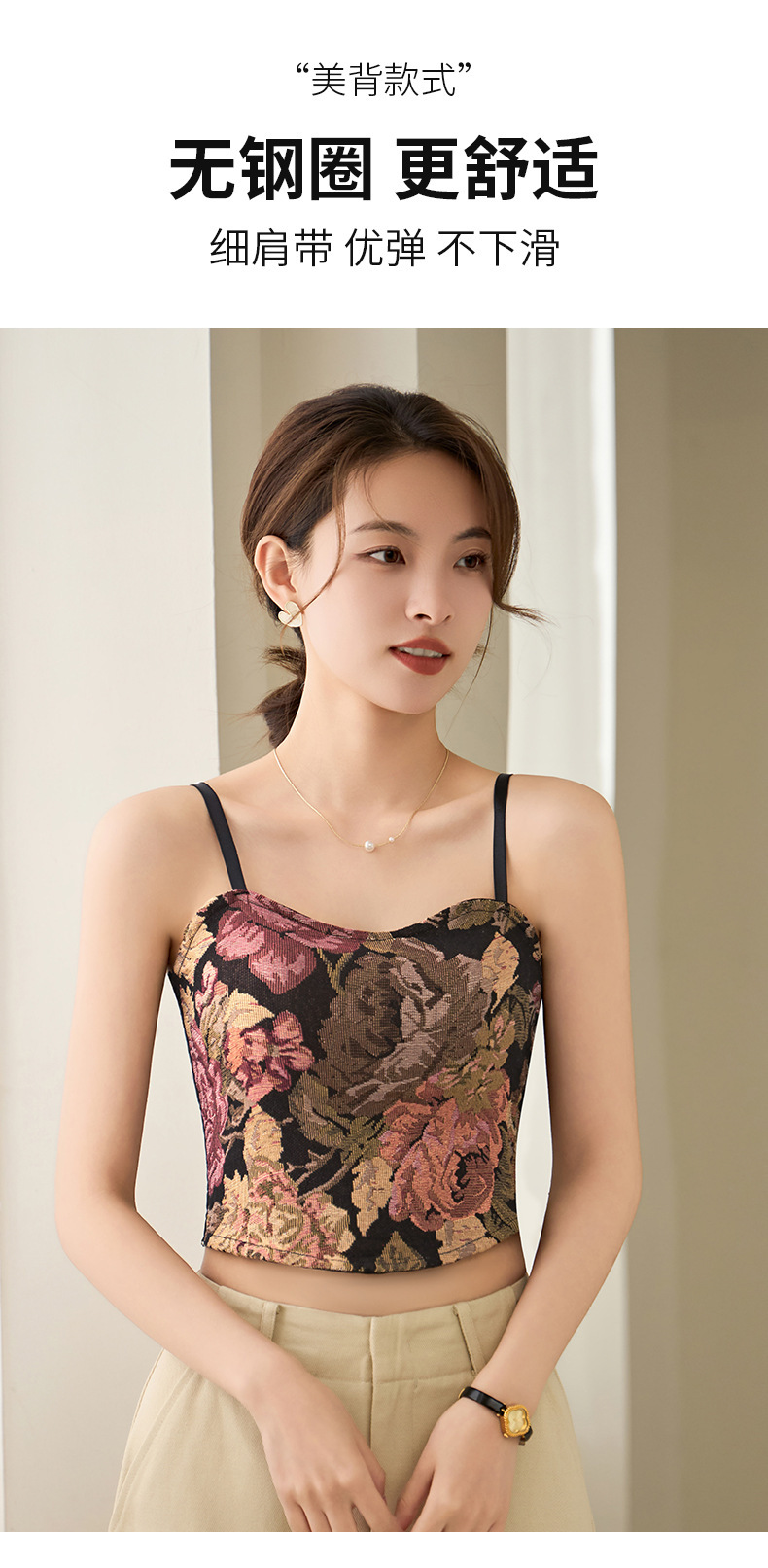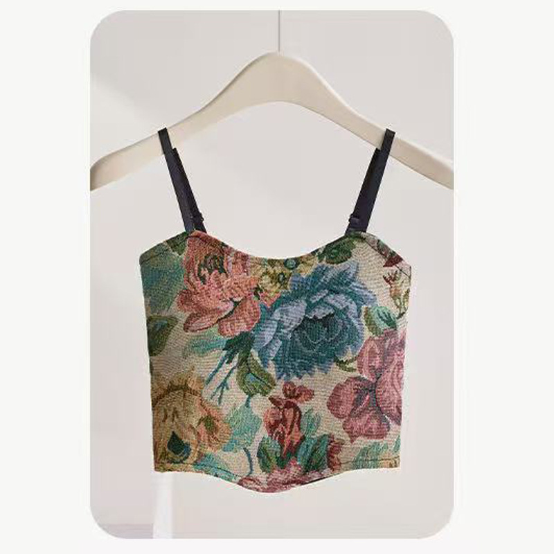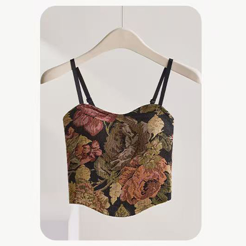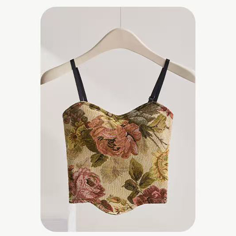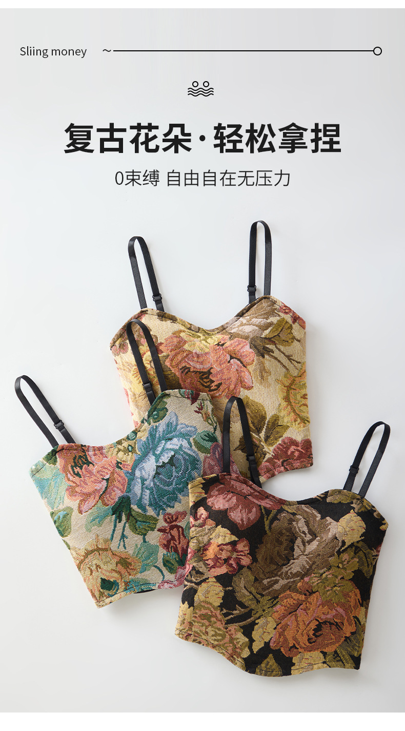 봄 여름 신상 복고풍 중국 스타일 서스펜더 조끼, 가슴 패드 포함, 가슴 감싸기, 노출 방지, 통기성 튜브 탑, 짧은 스타일