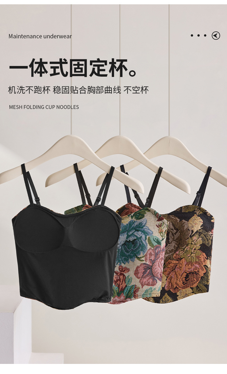 봄 여름 신상 복고풍 중국 스타일 서스펜더 조끼, 가슴 패드 포함, 가슴 감싸기, 노출 방지, 통기성 튜브 탑, 짧은 스타일스토어 가기