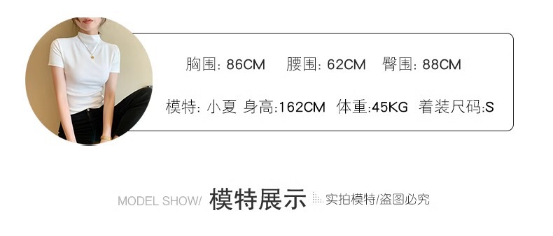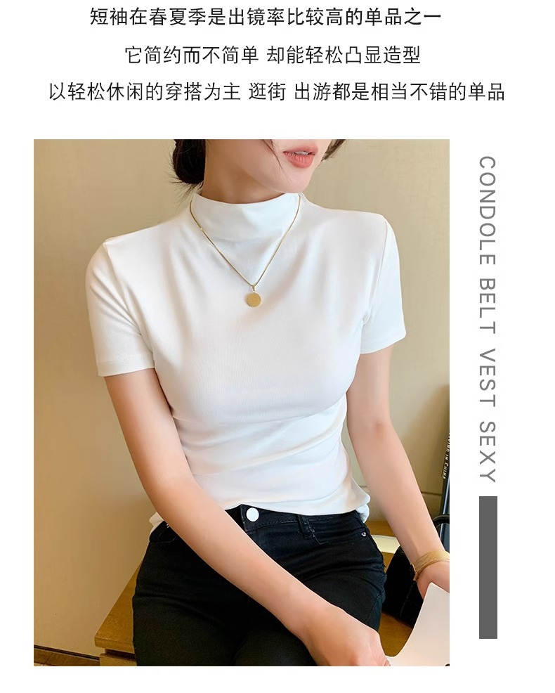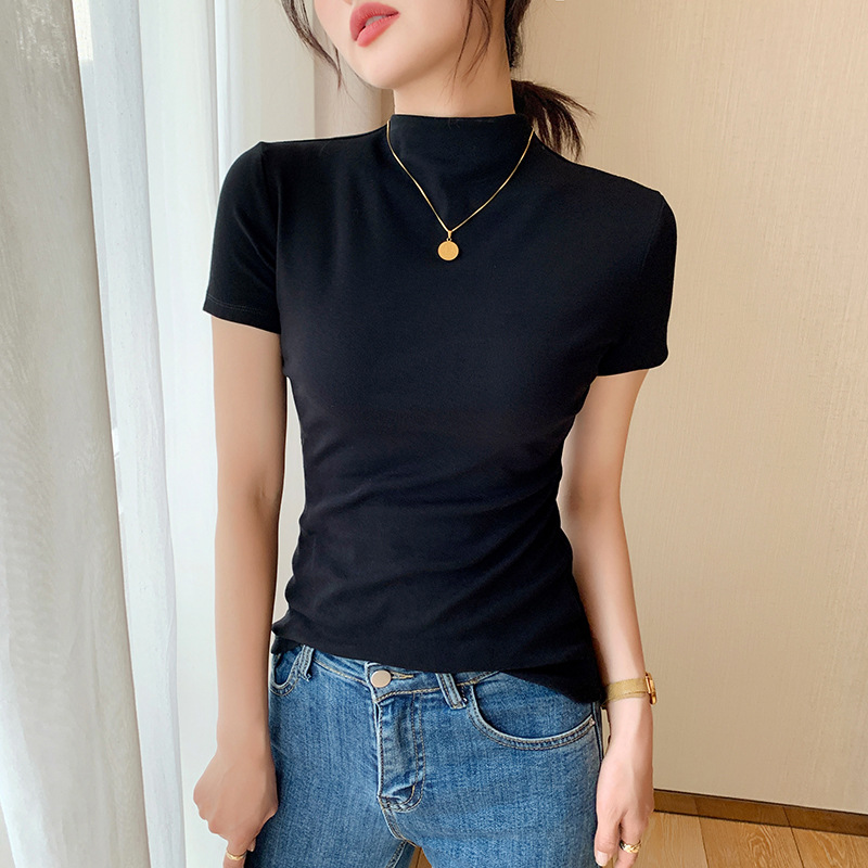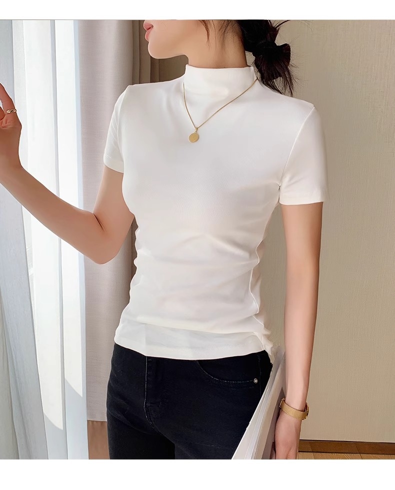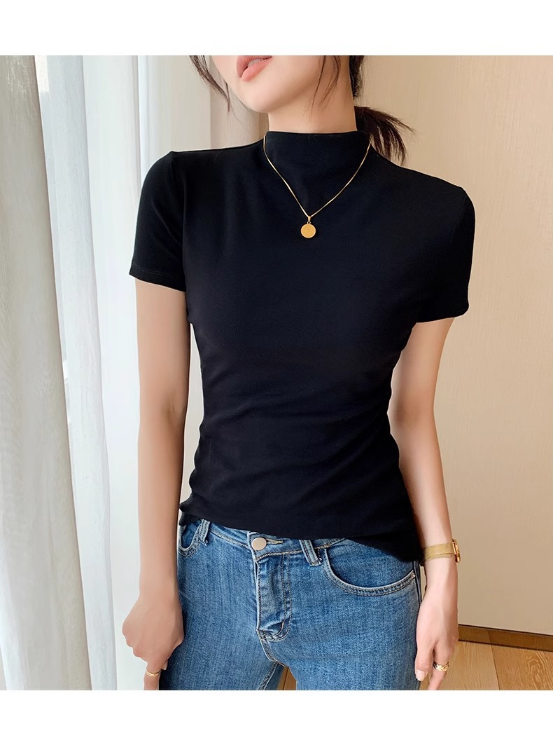 여성용 하프 터틀넥 반팔 셔츠, 봄, 여름, 가을 얇은 순면 티셔츠, 슬림핏 셔츠, 기질 있는 반팔 상의스토어 가기