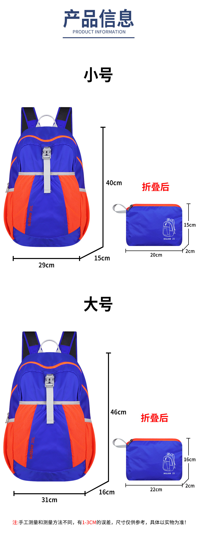 남성과 여성을 위한 경량 초박형 접이식 배낭, 스킨 등산 가방, 야외 하이킹 및 러닝 가방, 휴대용 여행 배낭