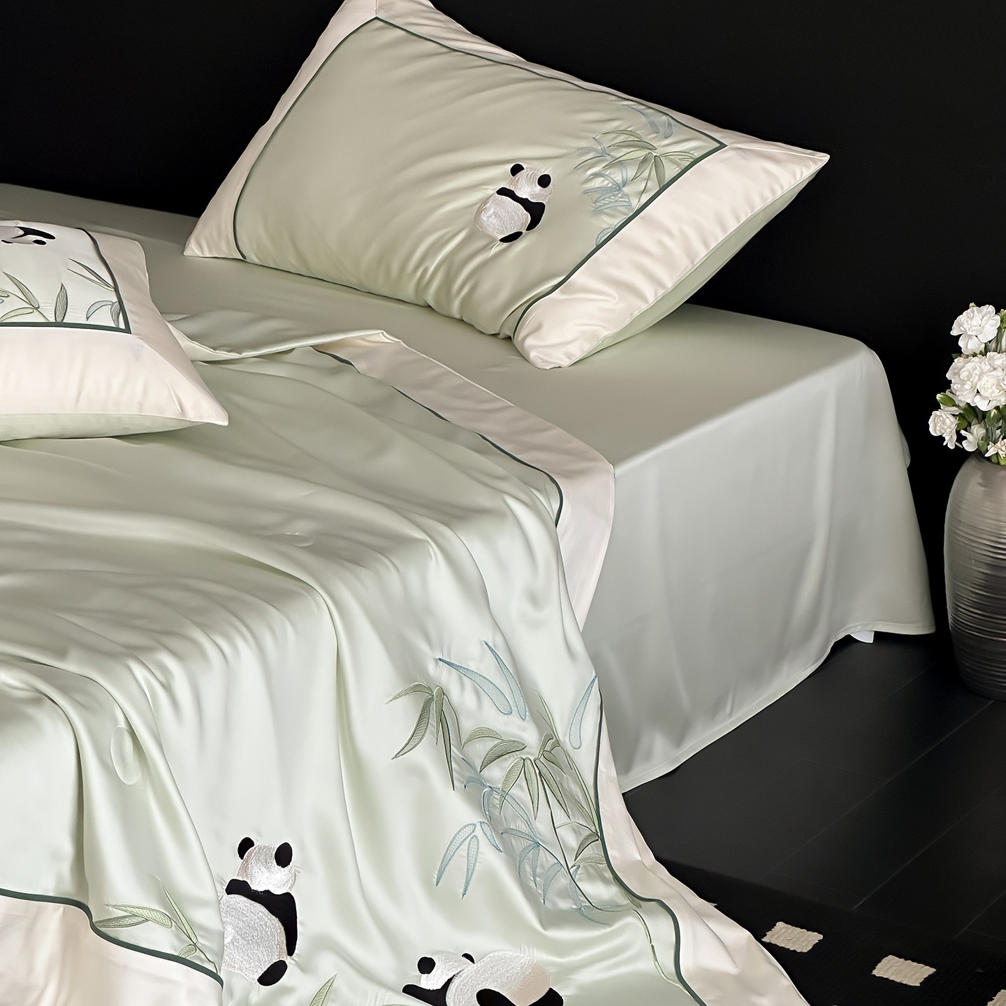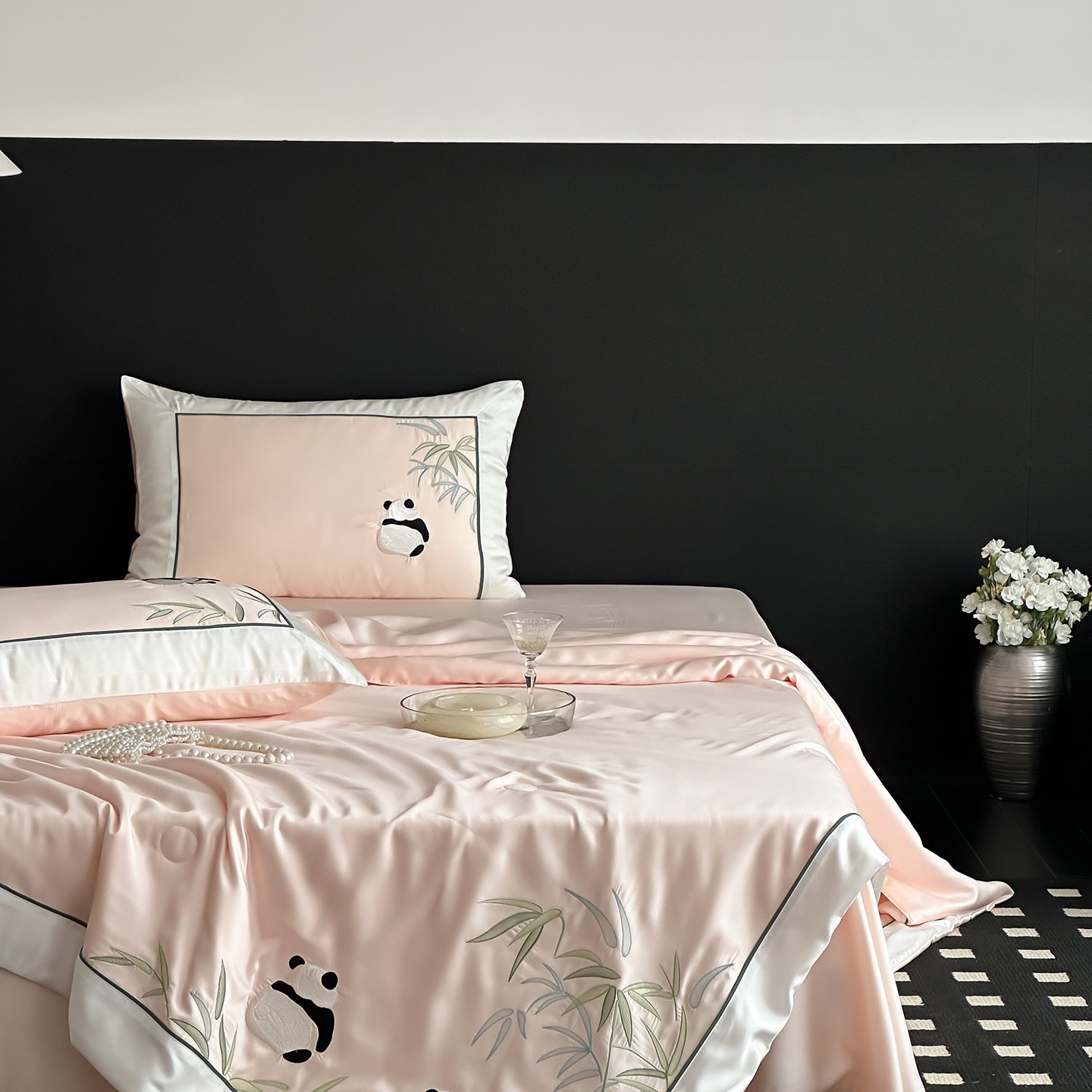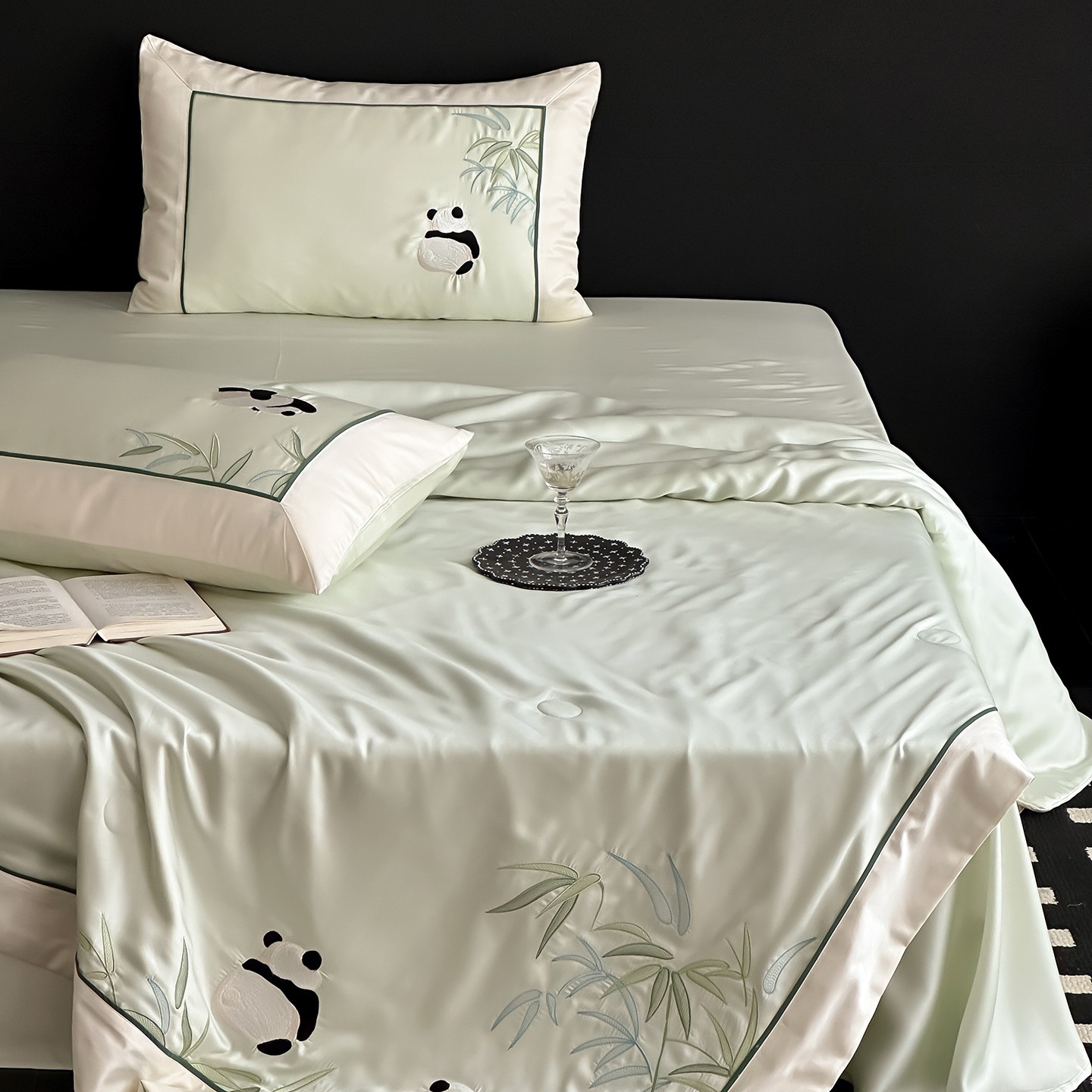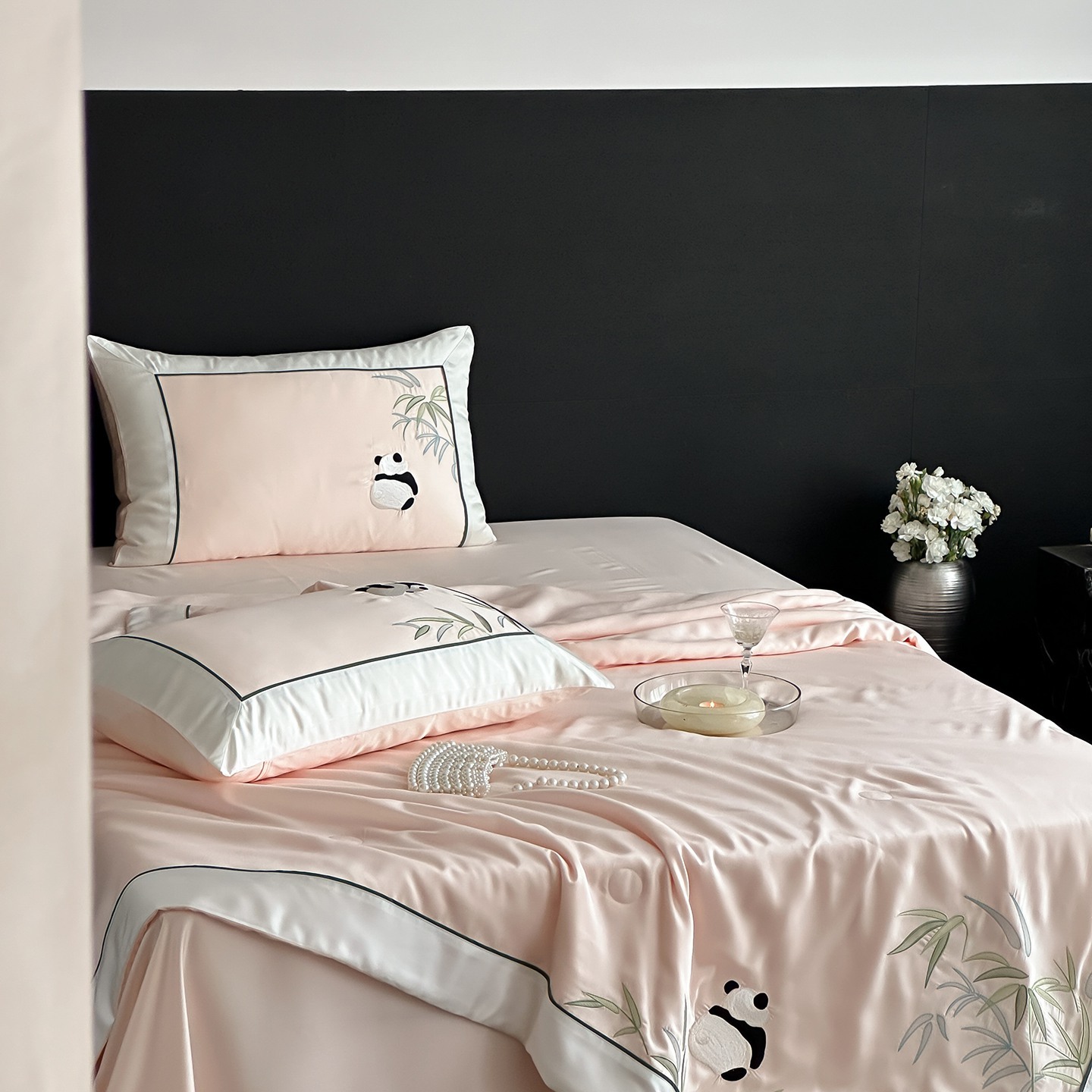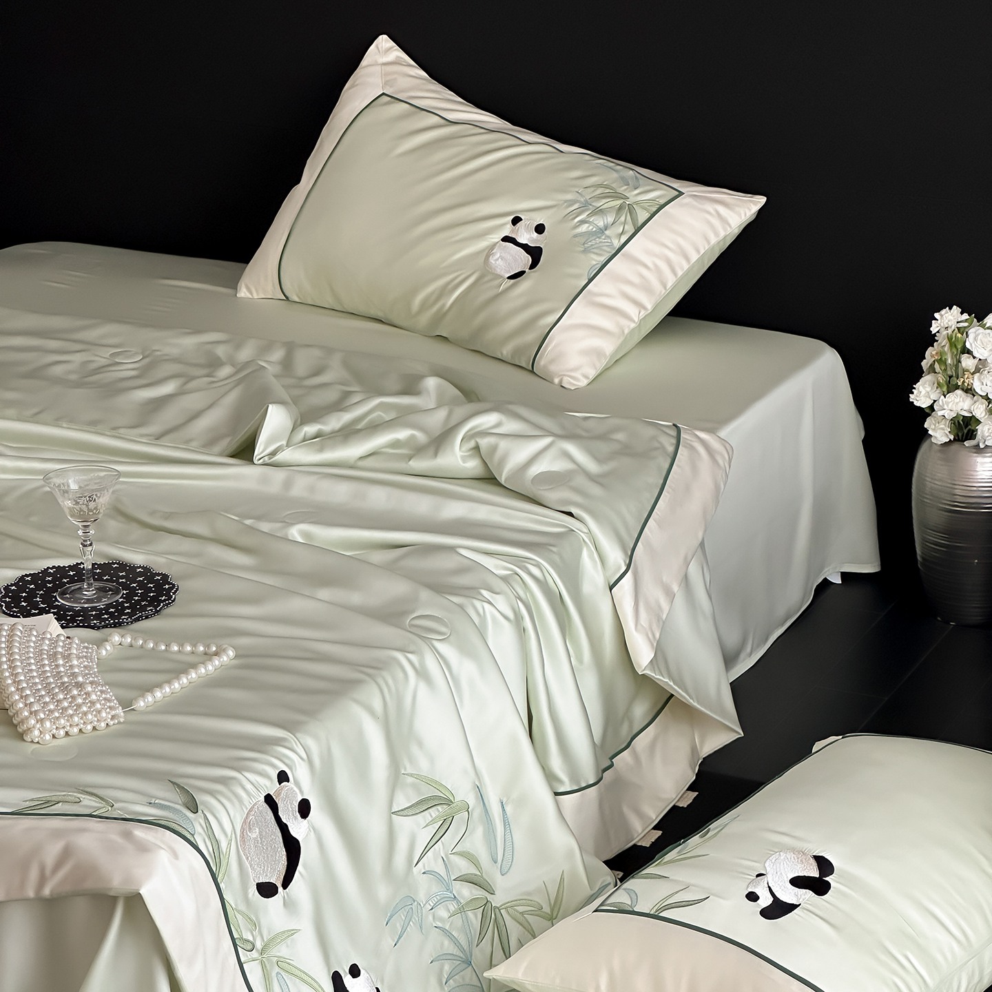 고급 팬더 여름 이불! 60 카운트 텐셀 에어컨 이불 4 피스 양면 얼음 실크 만화 어린이 여름 이불