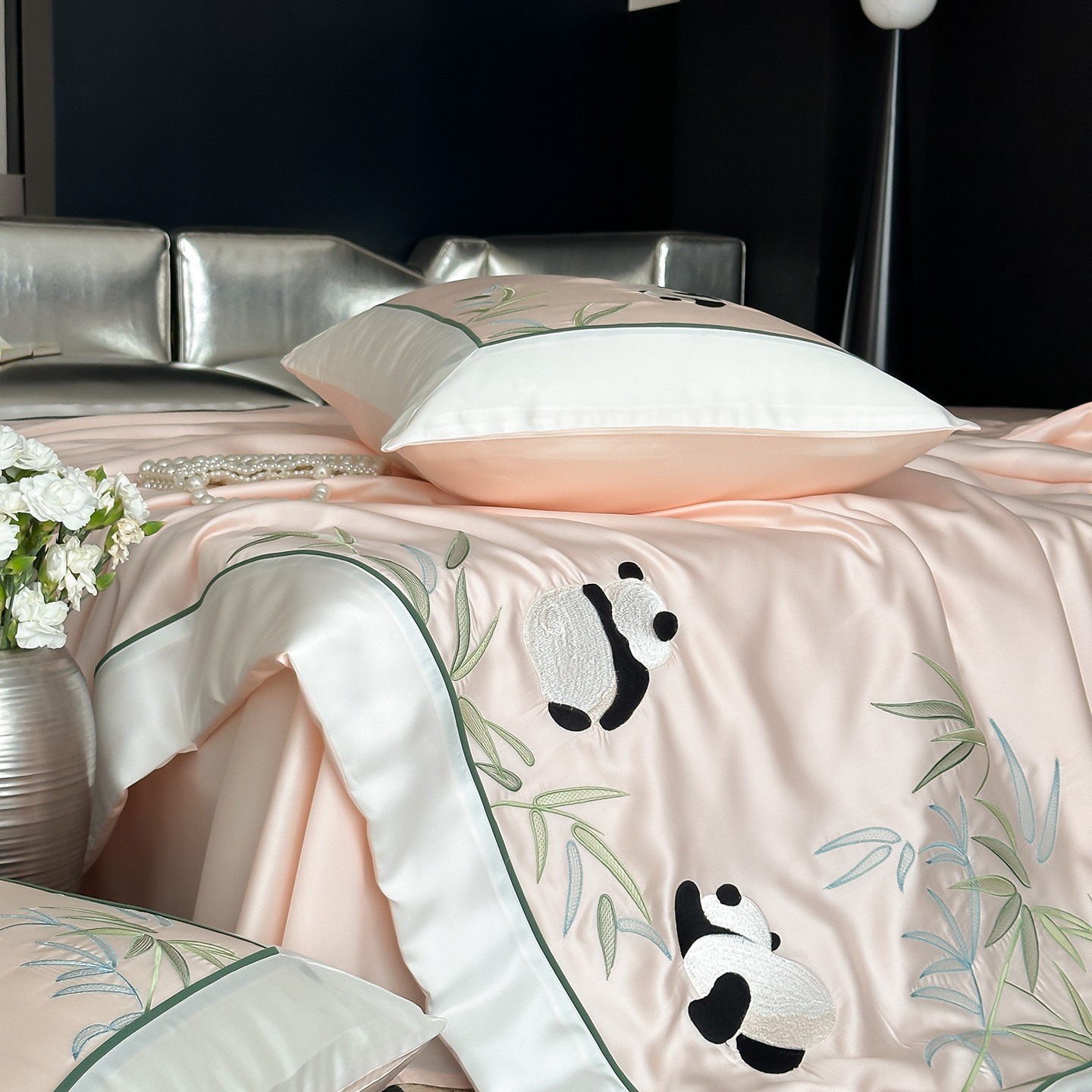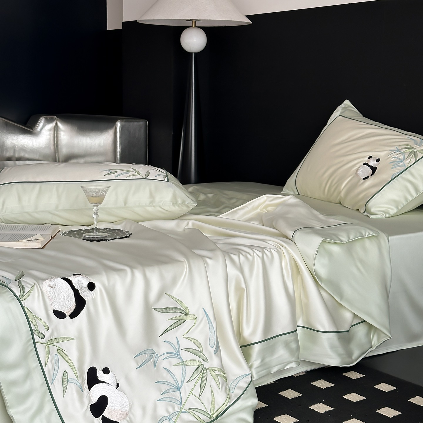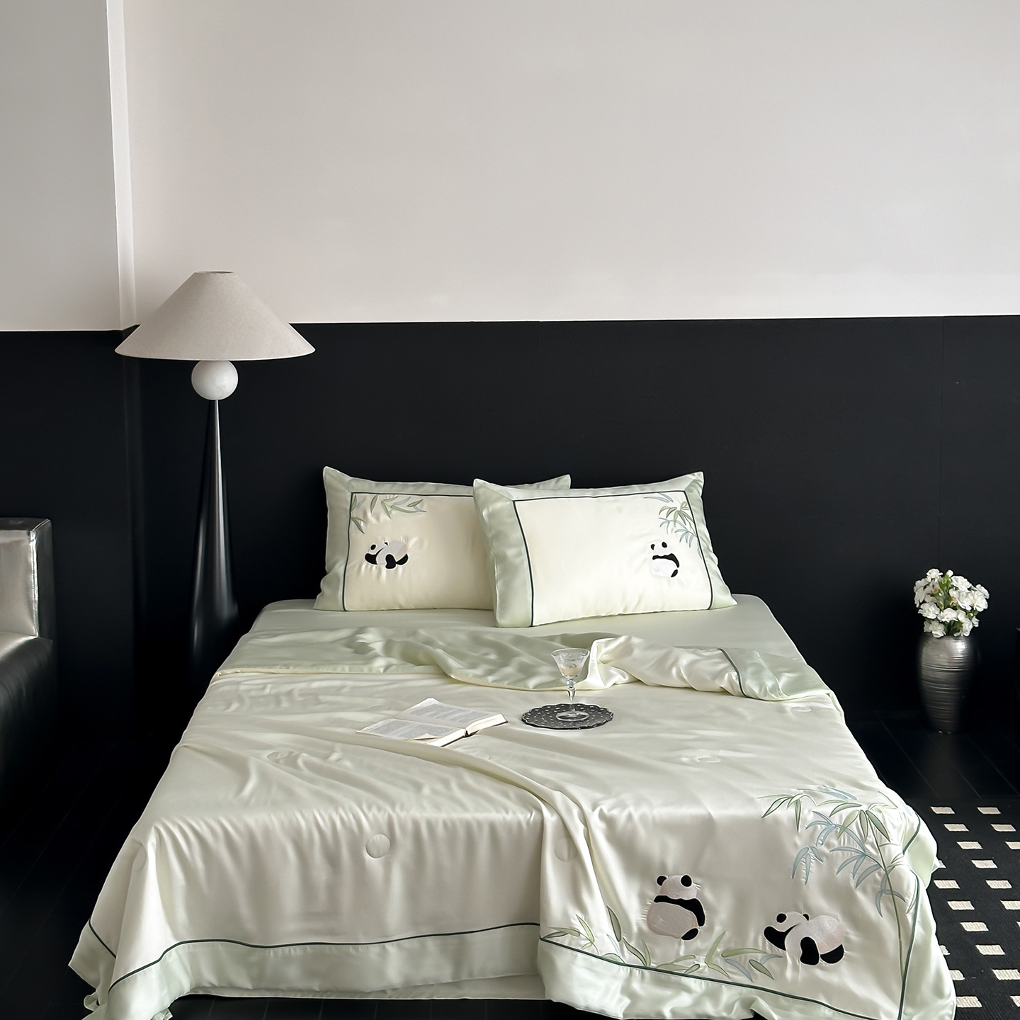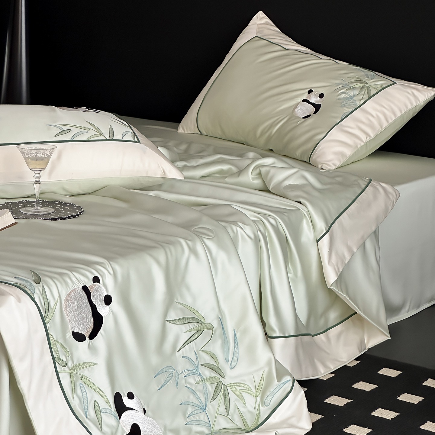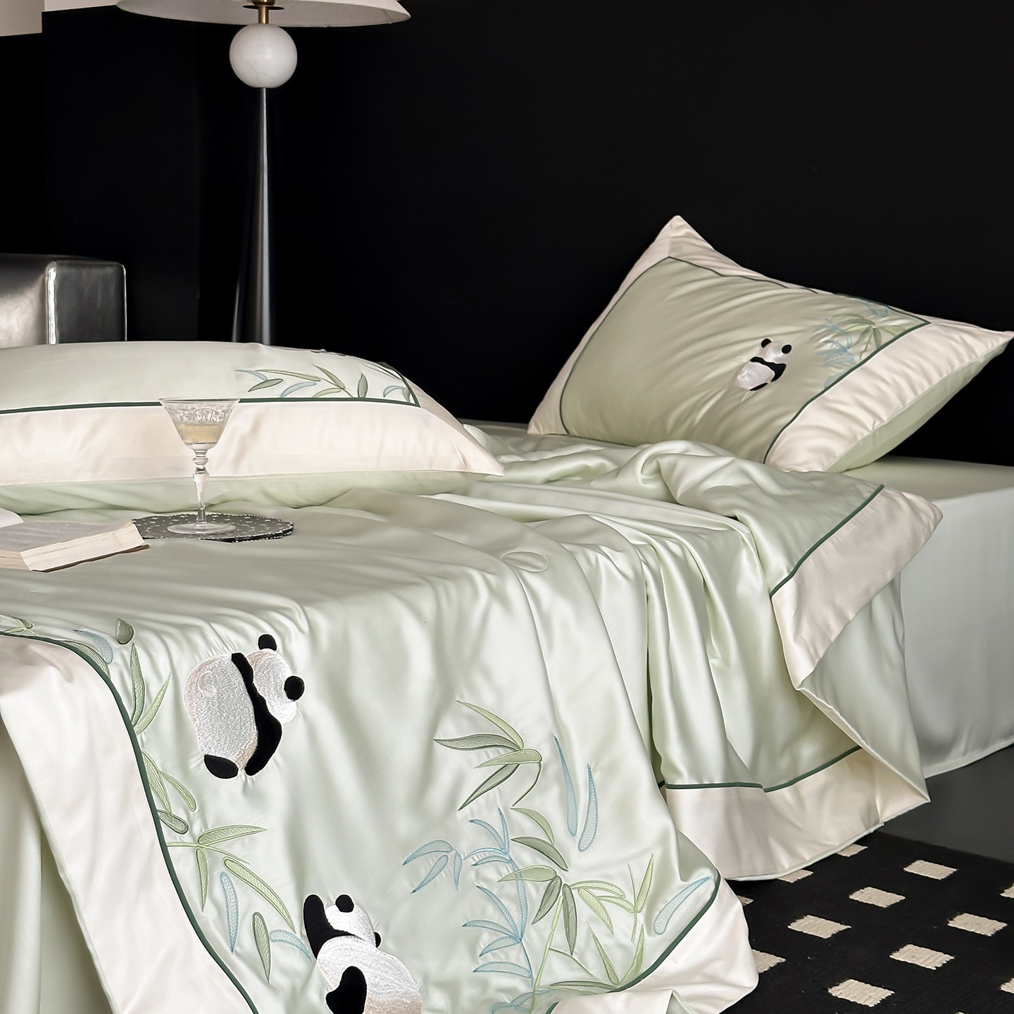 고급 팬더 여름 이불! 60 카운트 텐셀 에어컨 이불 4 피스 양면 얼음 실크 만화 어린이 여름 이불