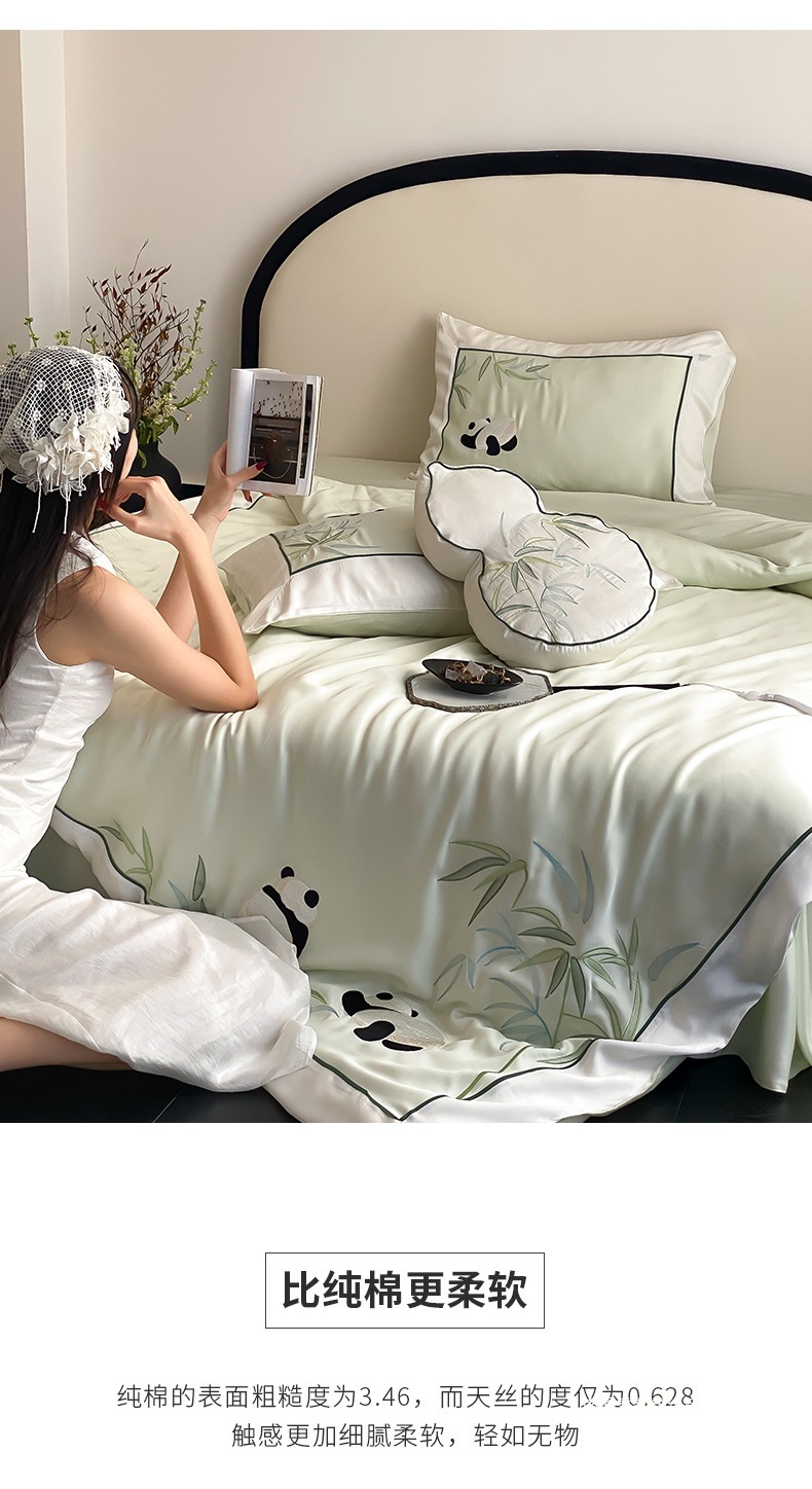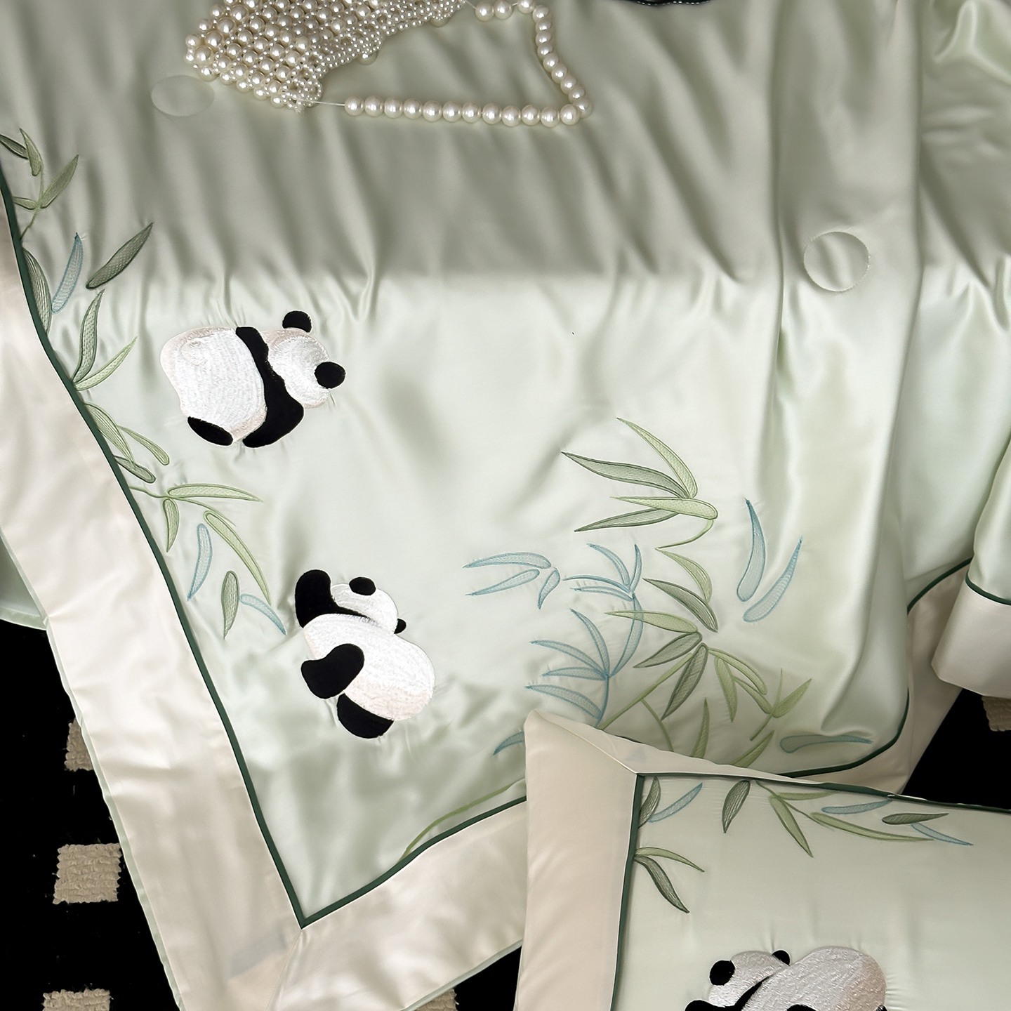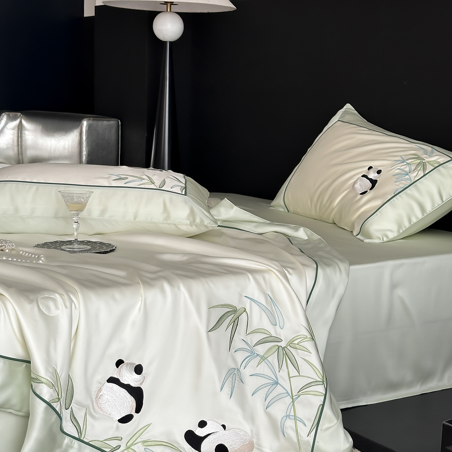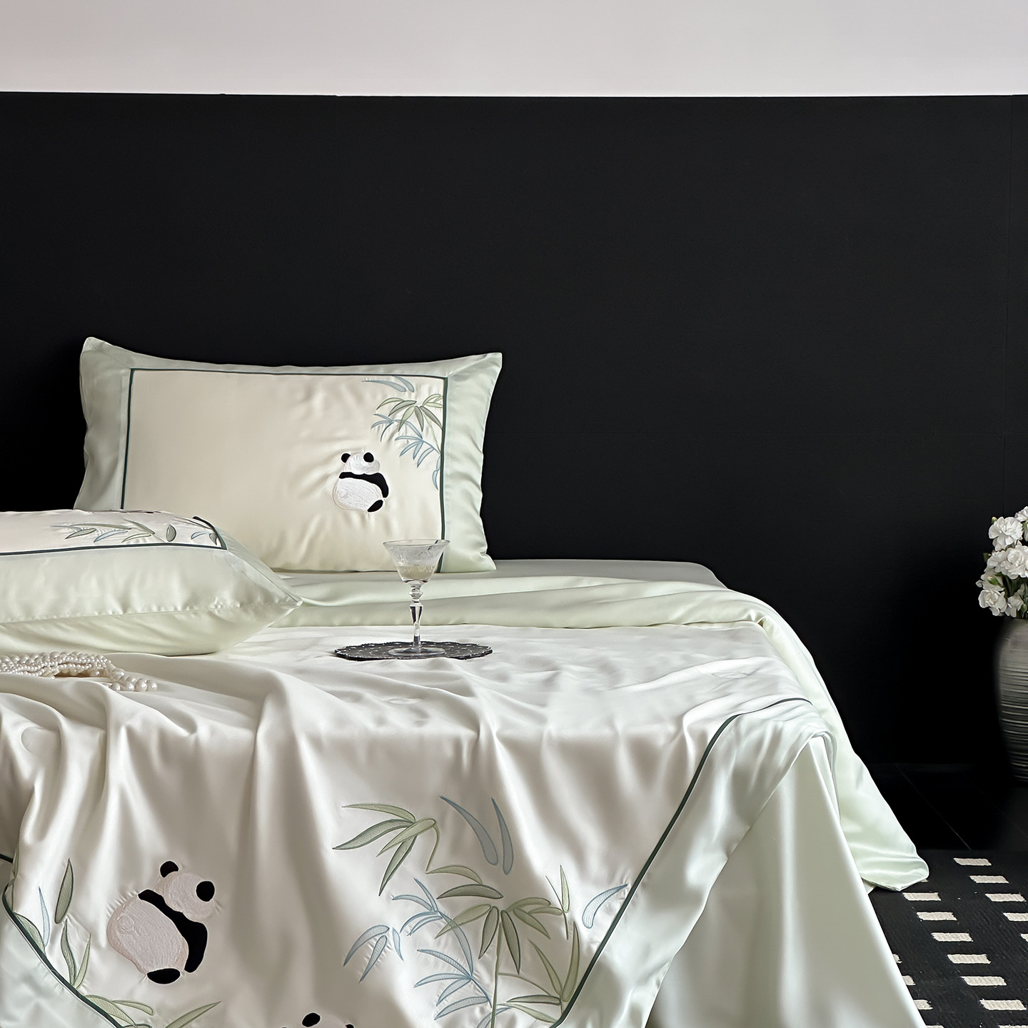 고급 팬더 여름 이불! 60 카운트 텐셀 에어컨 이불 4 피스 양면 얼음 실크 만화 어린이 여름 이불