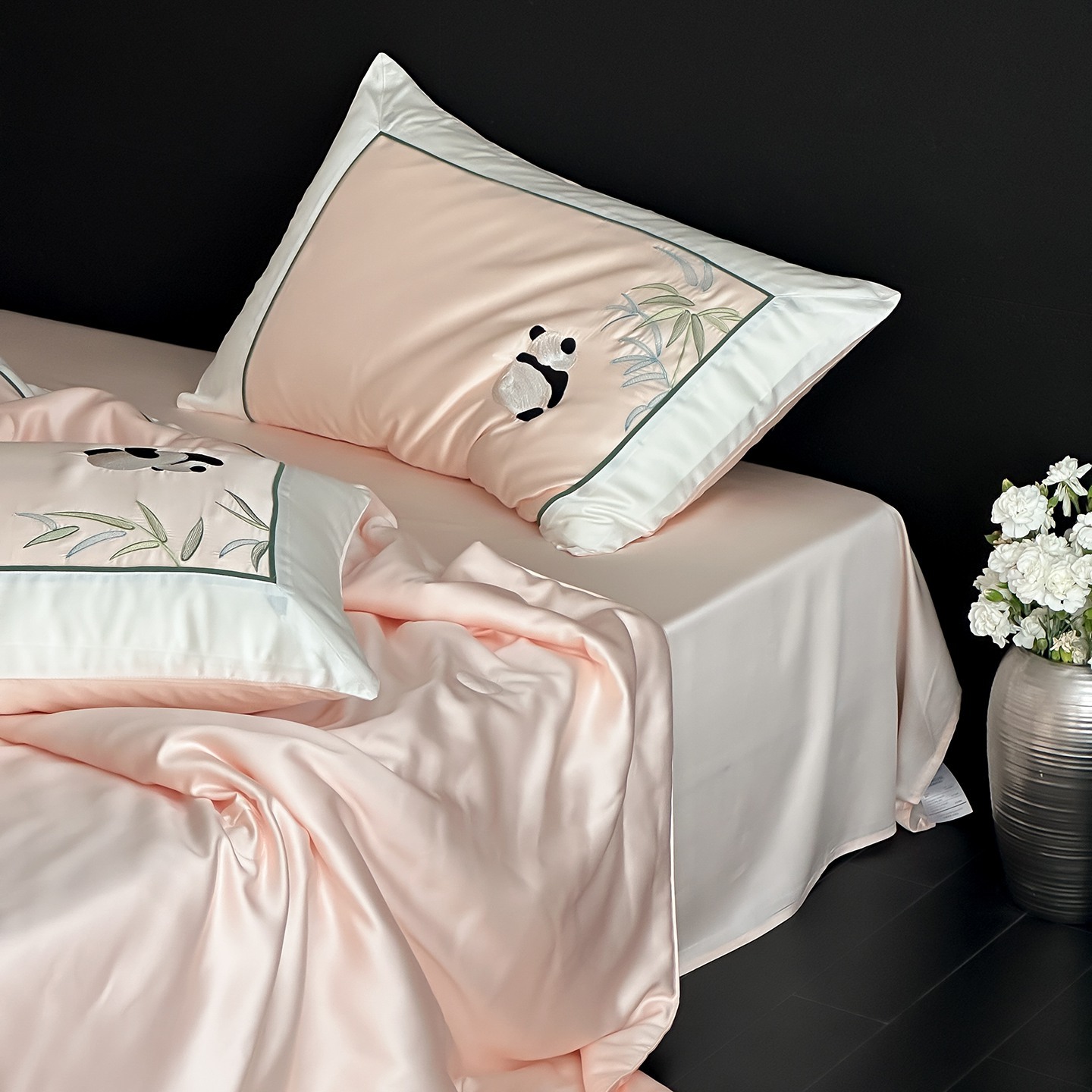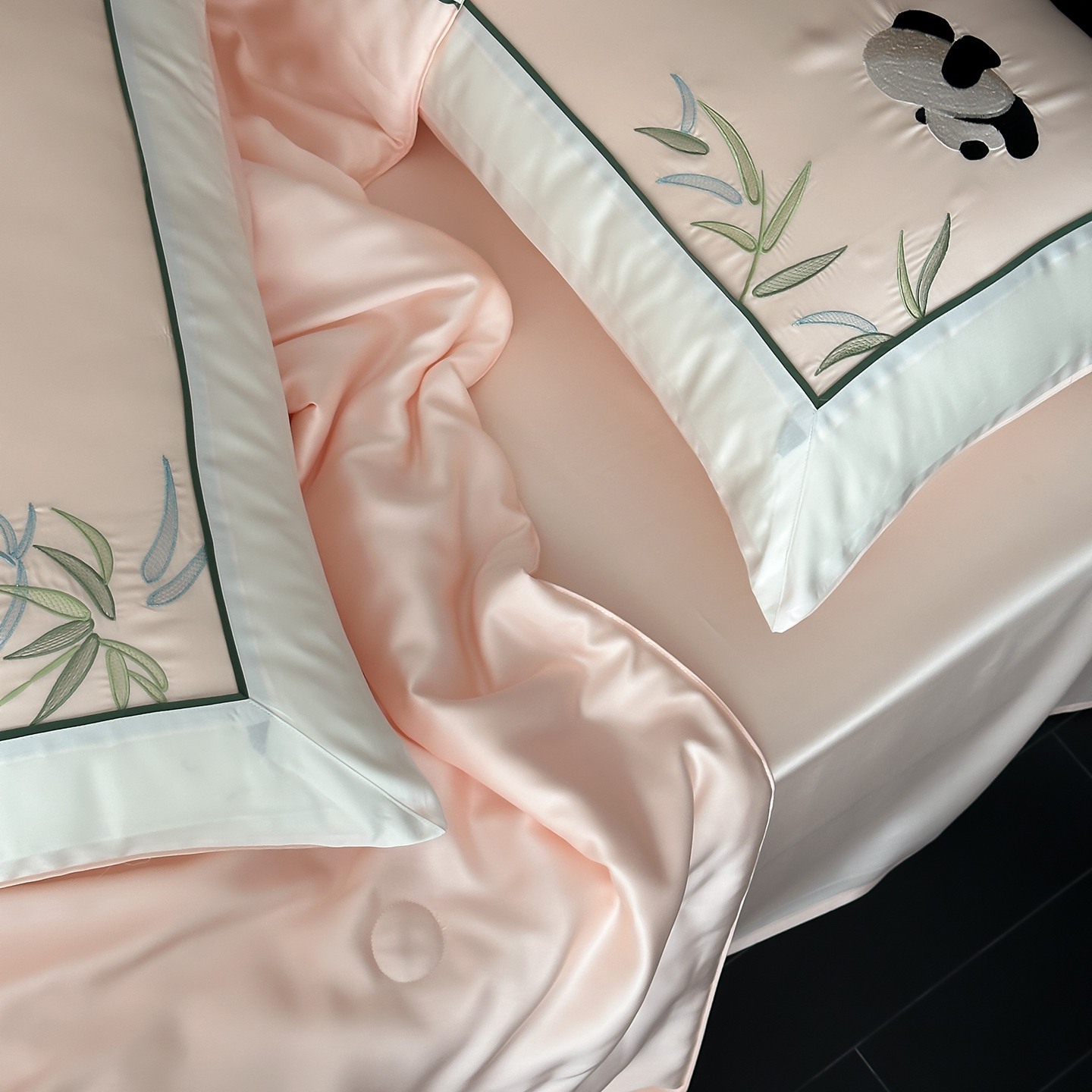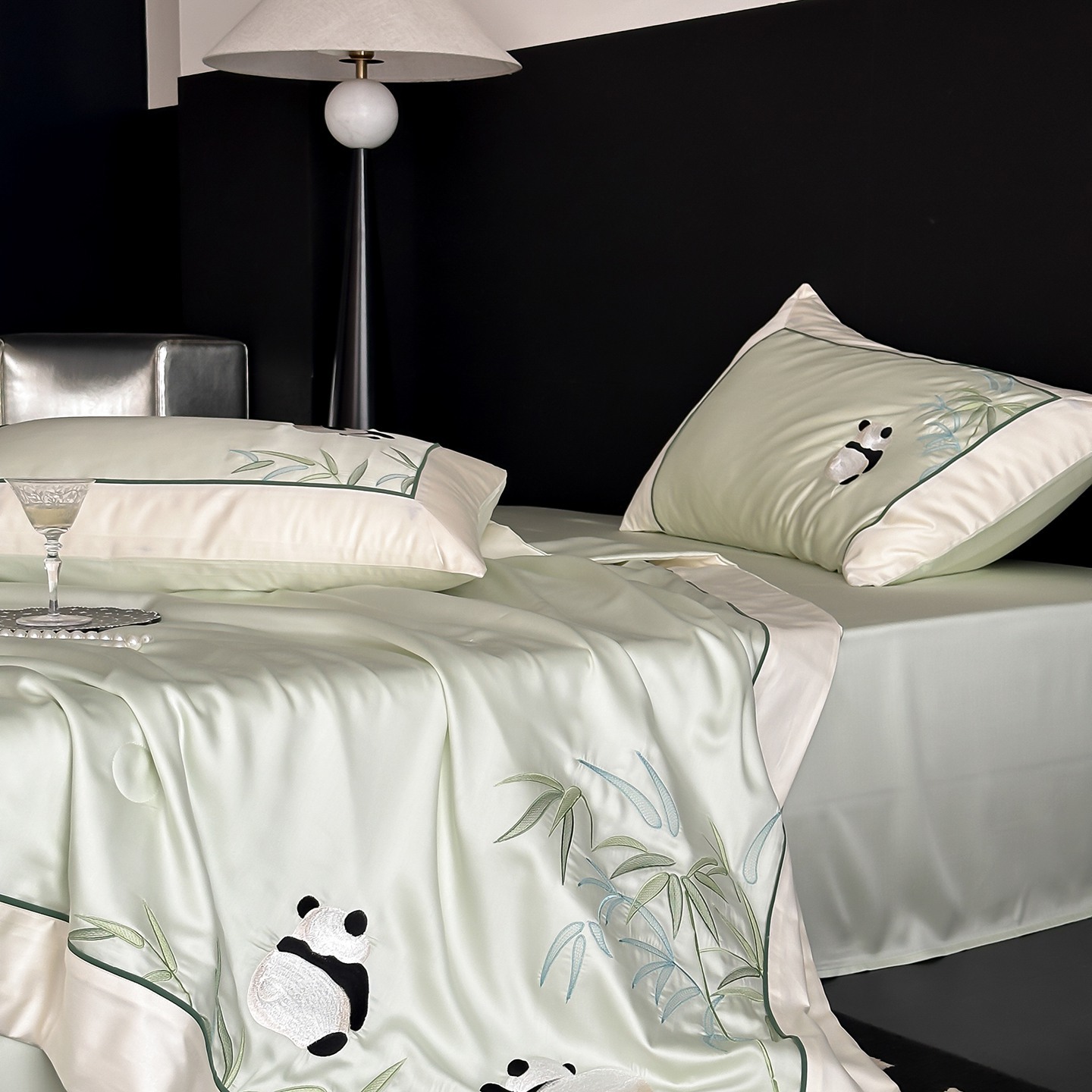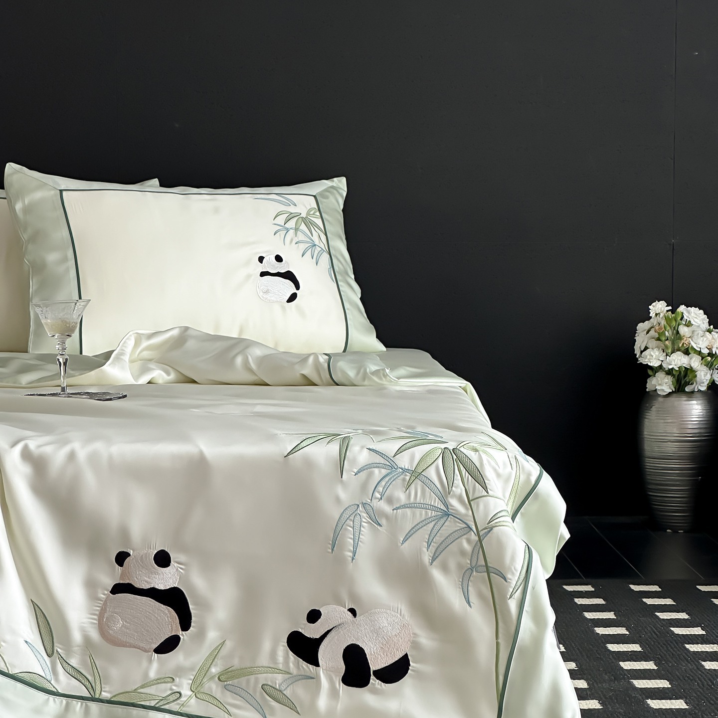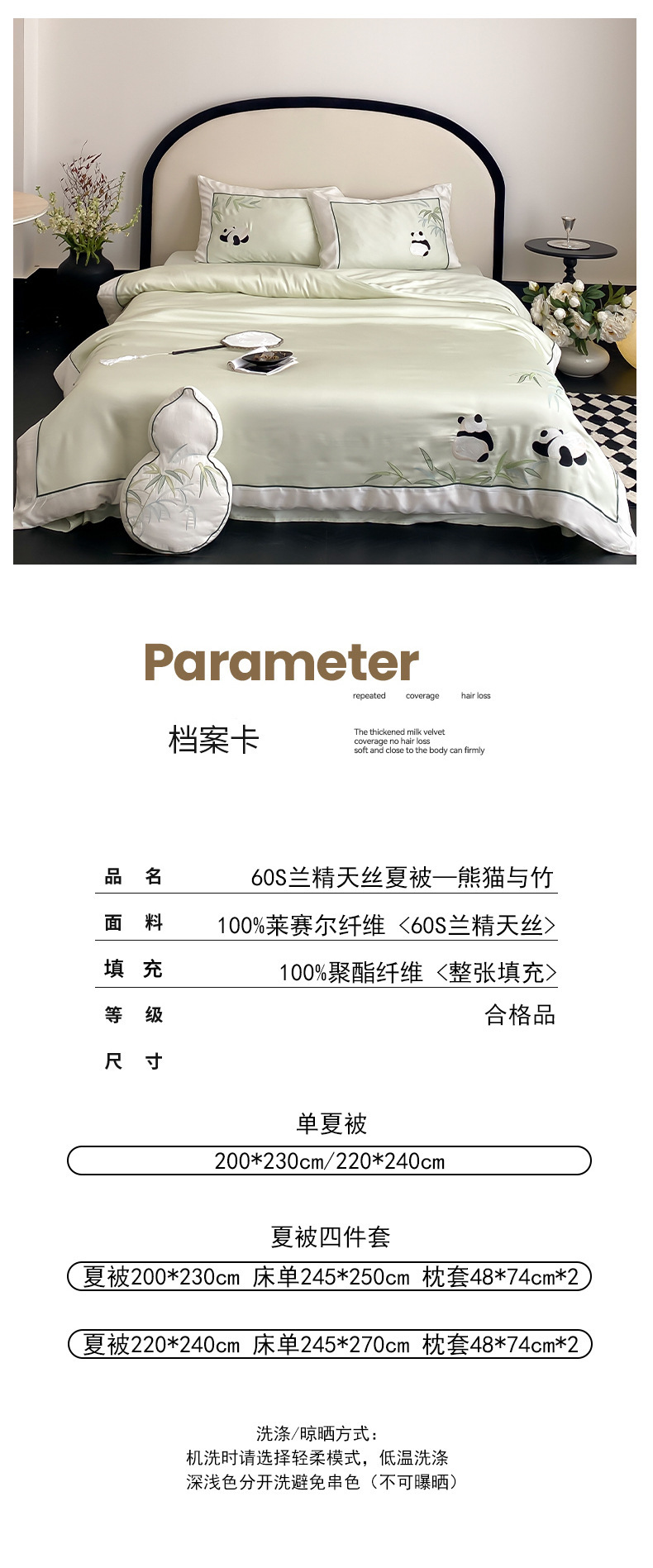 고급 팬더 여름 이불! 60 카운트 텐셀 에어컨 이불 4 피스 양면 얼음 실크 만화 어린이 여름 이불