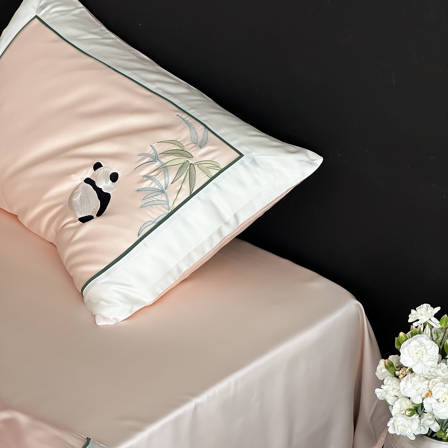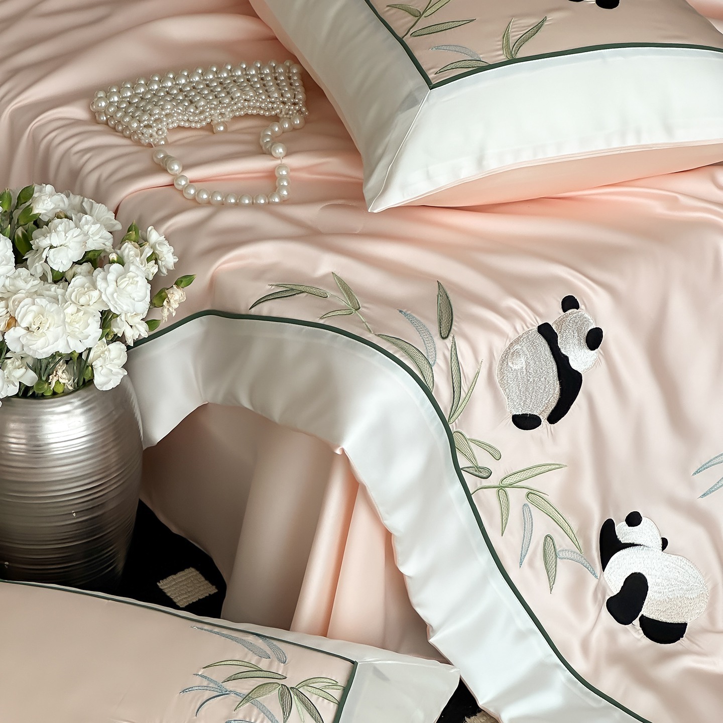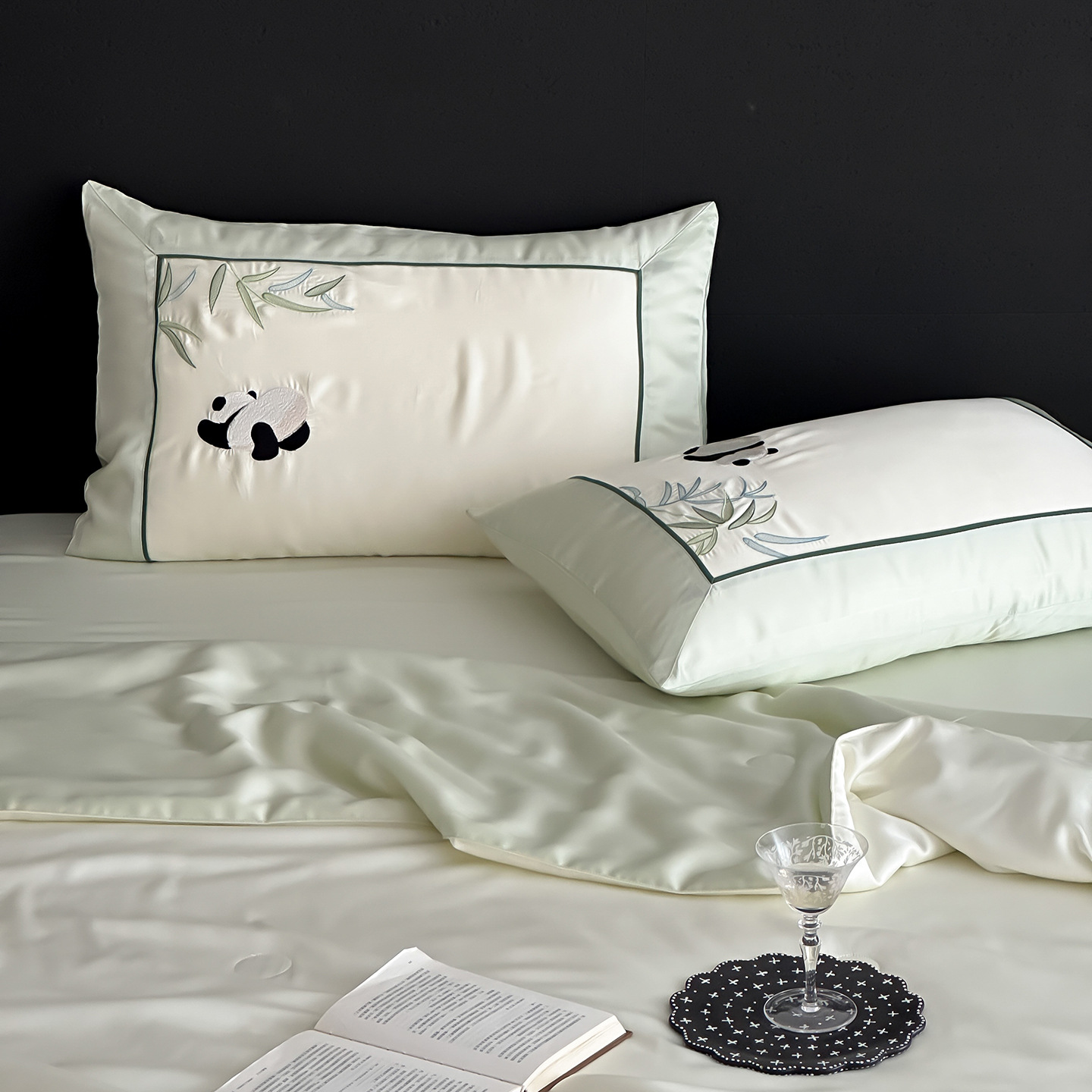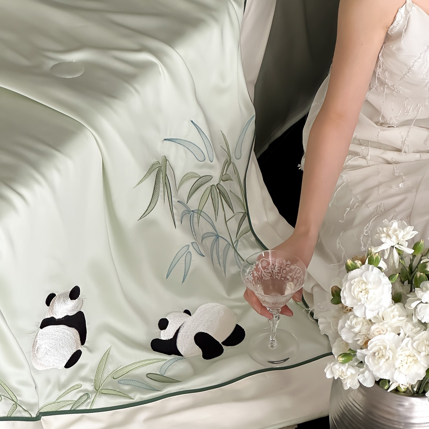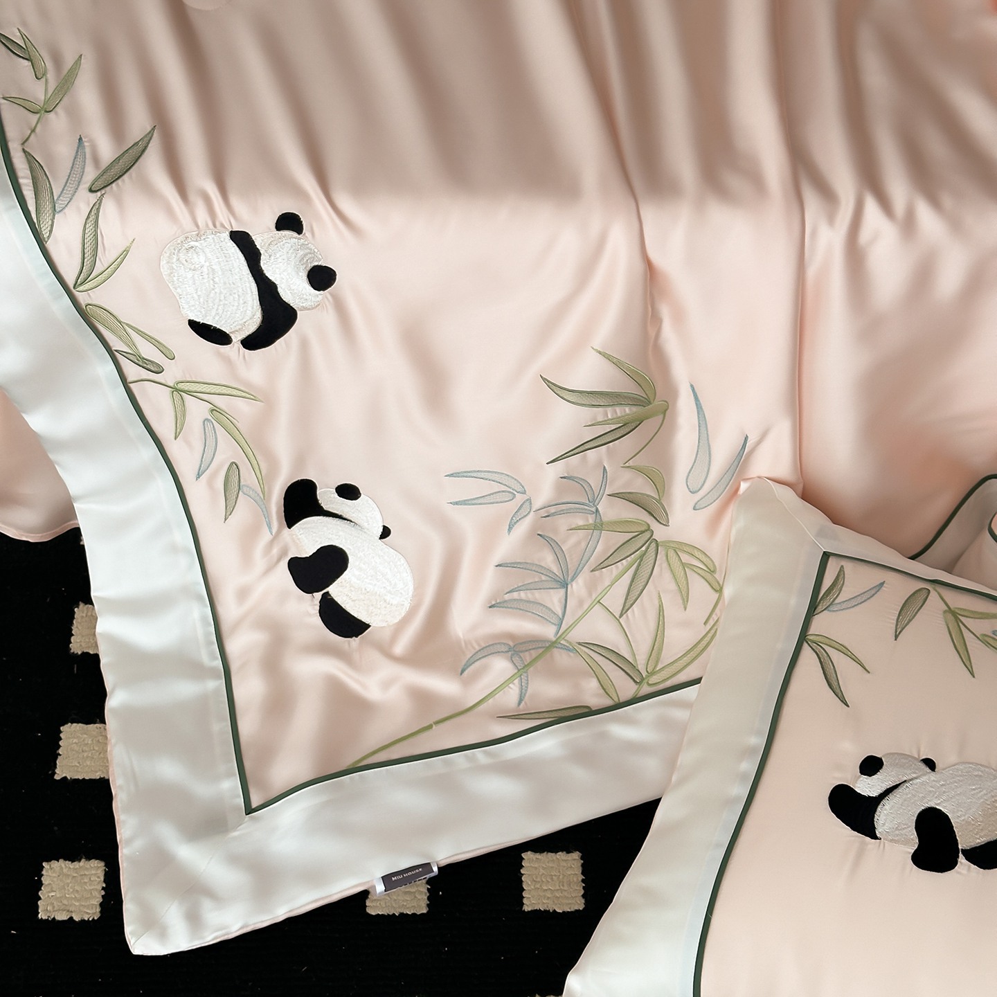 고급 팬더 여름 이불! 60 카운트 텐셀 에어컨 이불 4 피스 양면 얼음 실크 만화 어린이 여름 이불