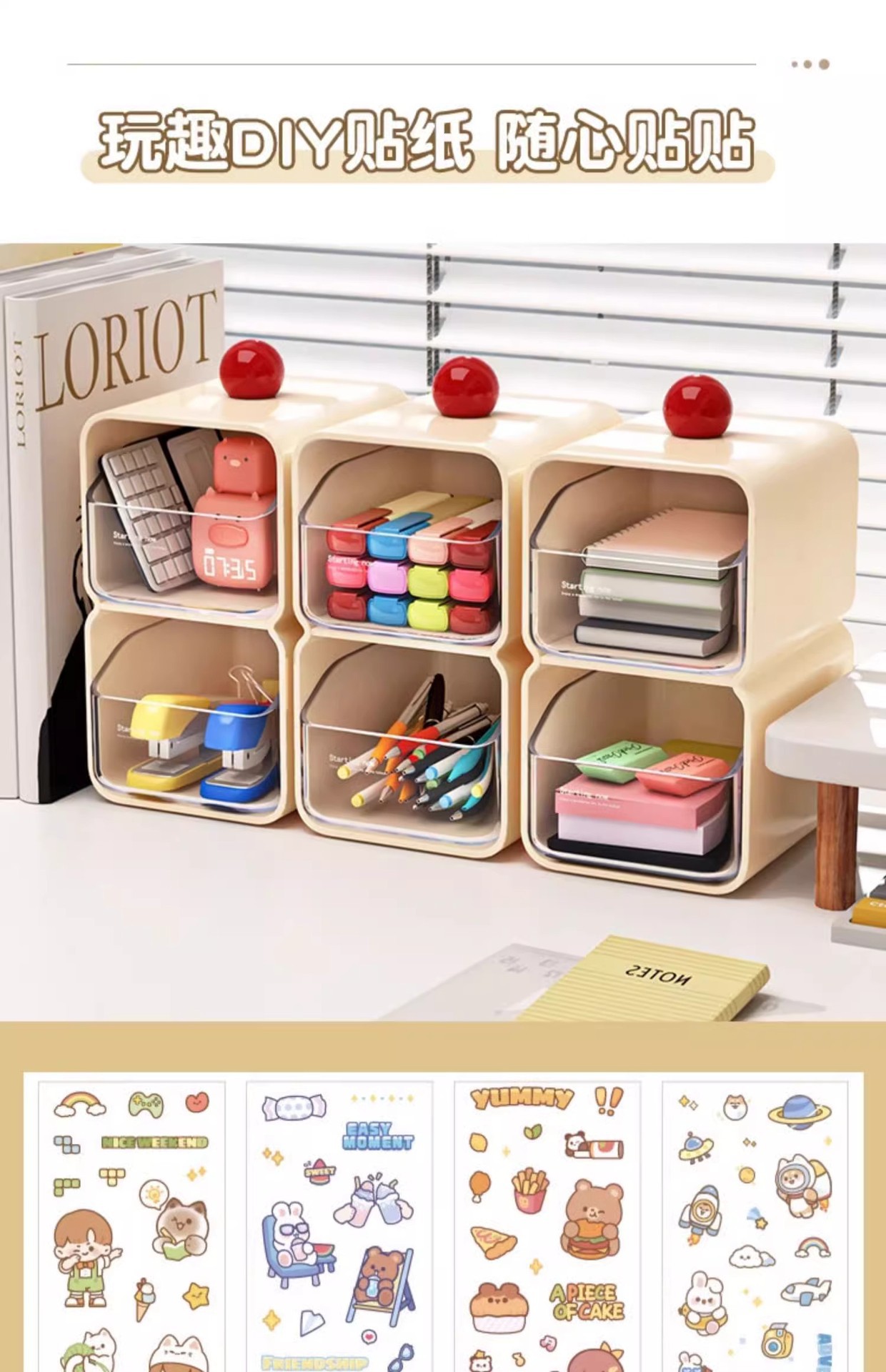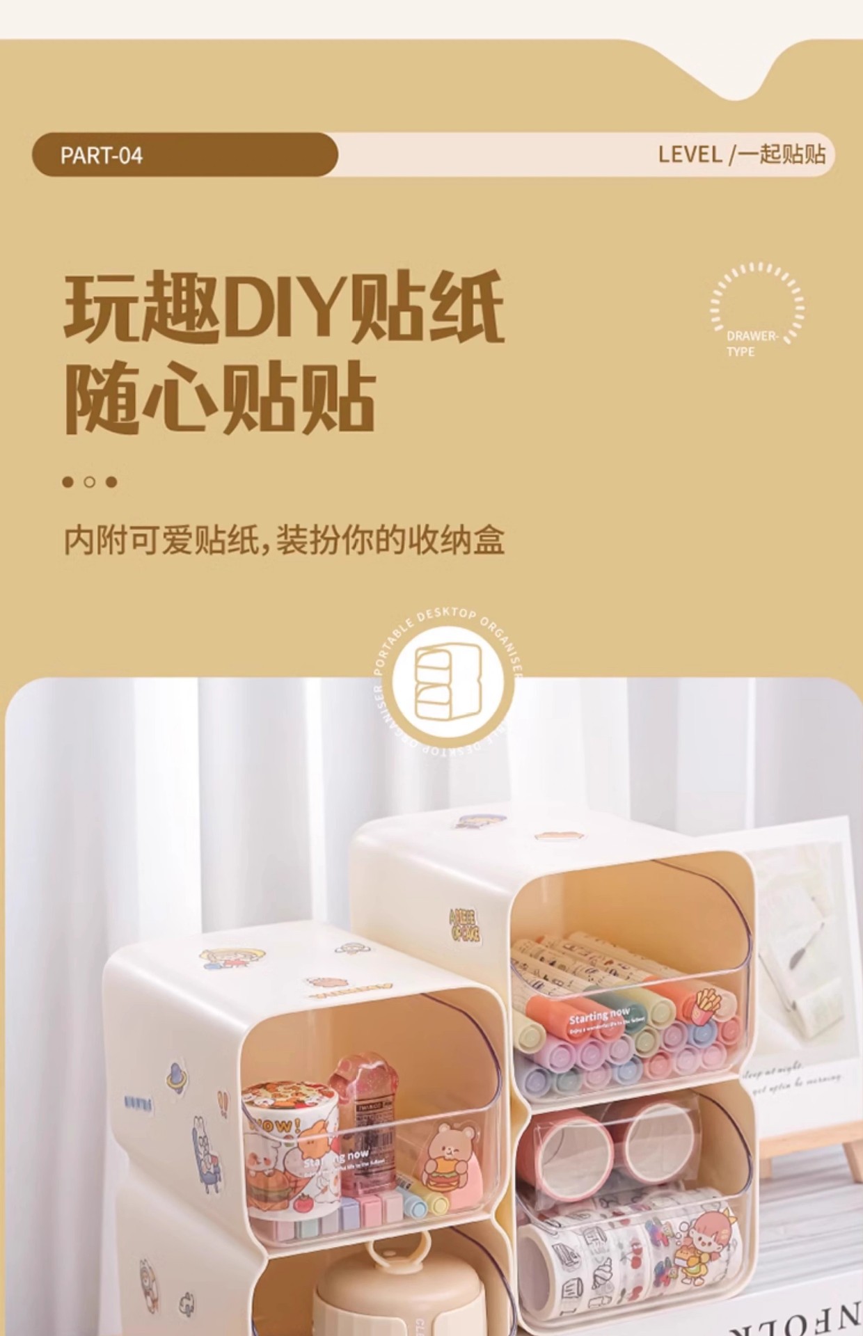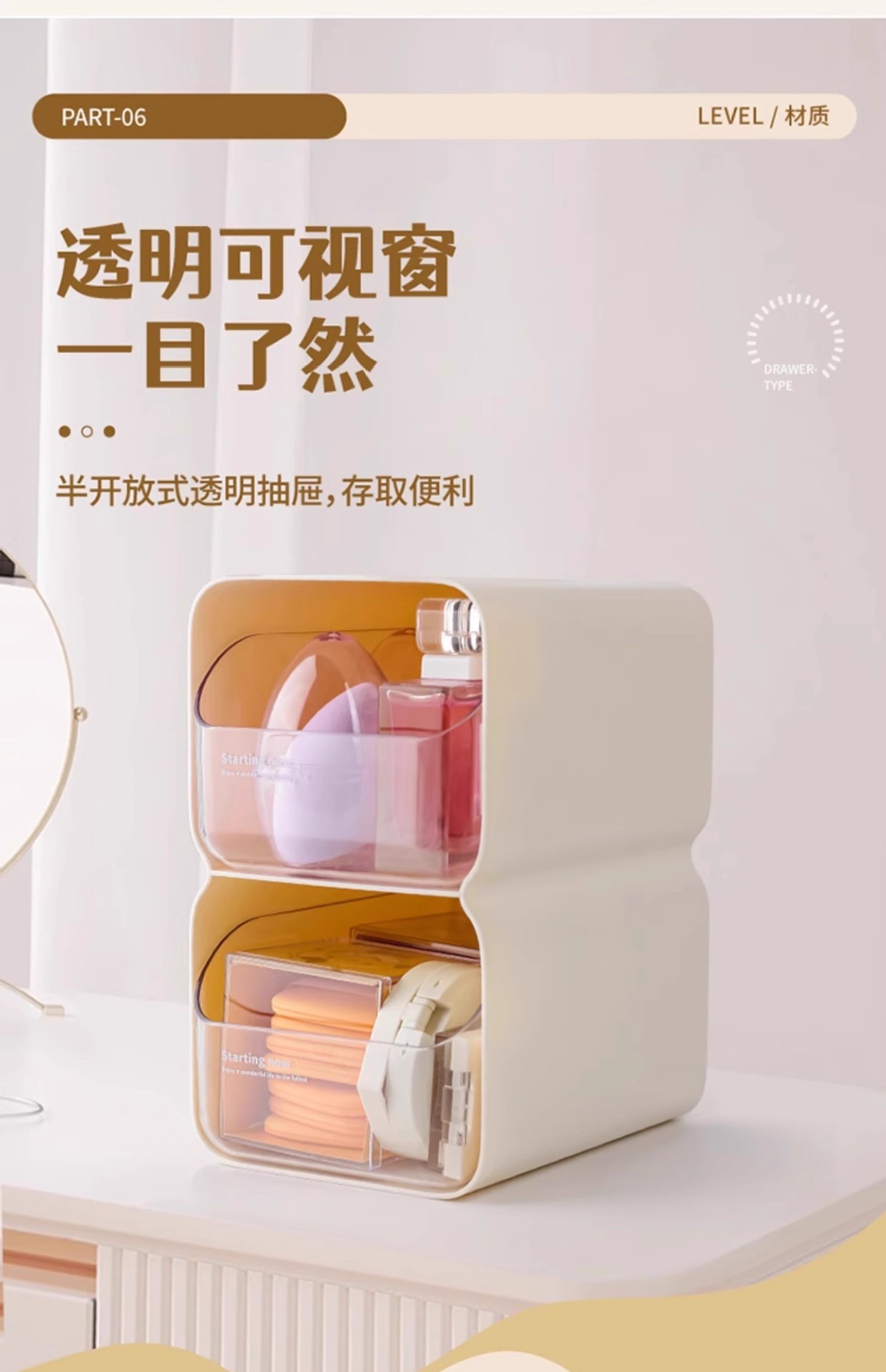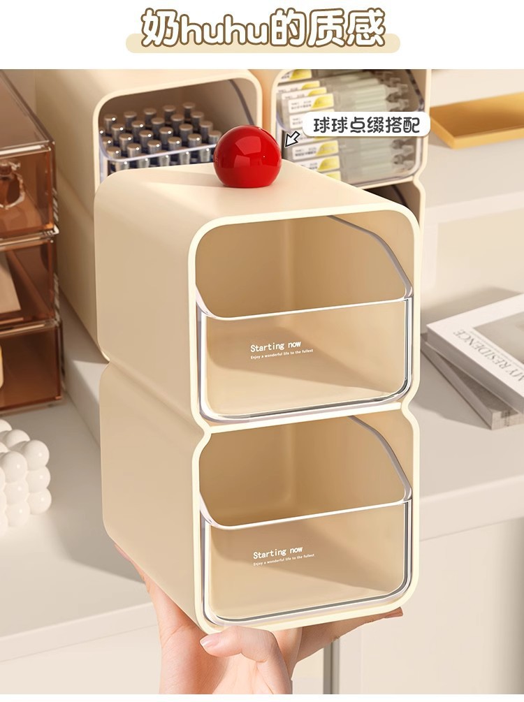 도파민 보관 상자 크림 스타일 서랍 형 데스크탑 잡화 정리 상자 사무실 책상 보관 펜 홀더스토어 가기
