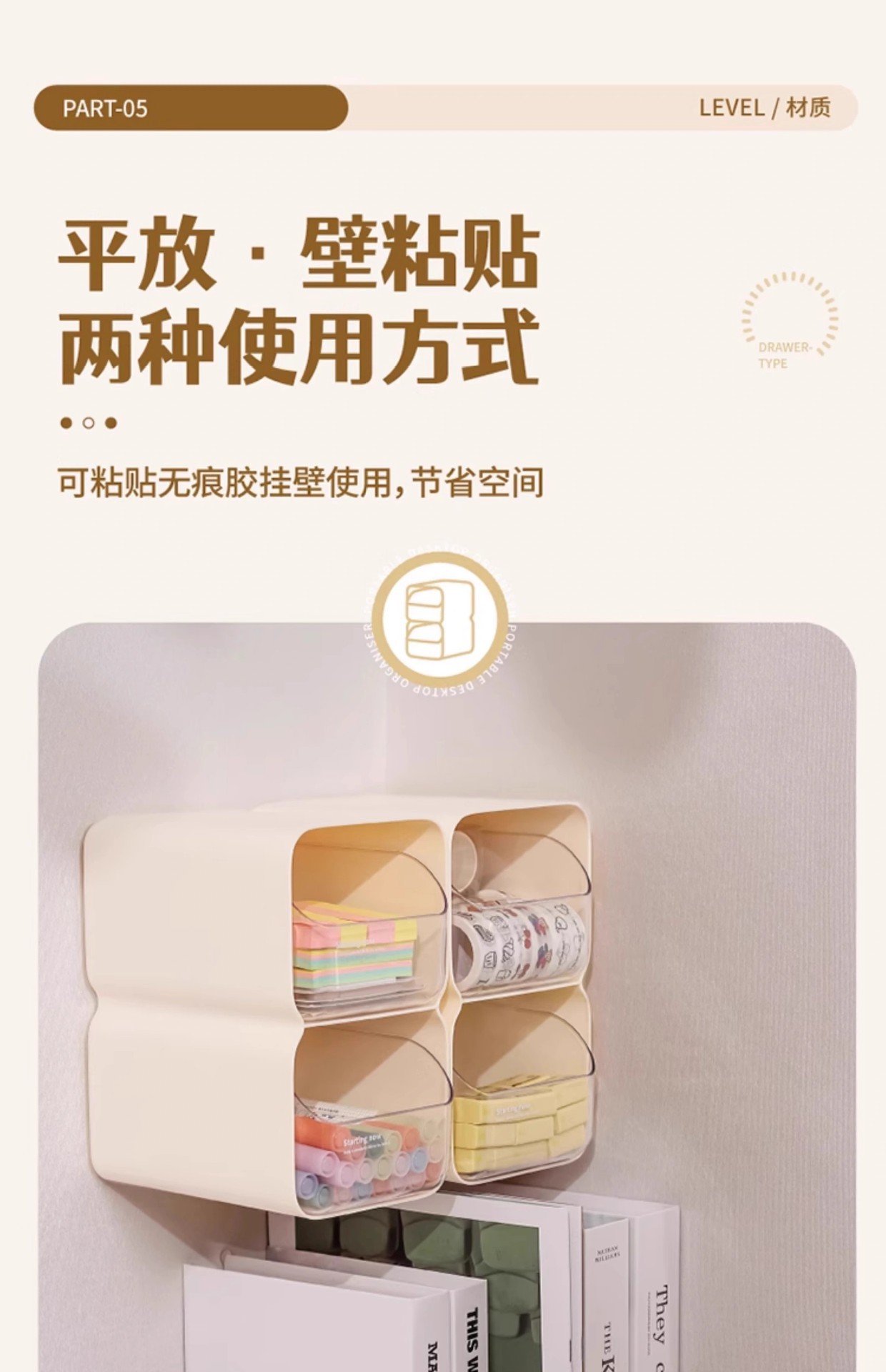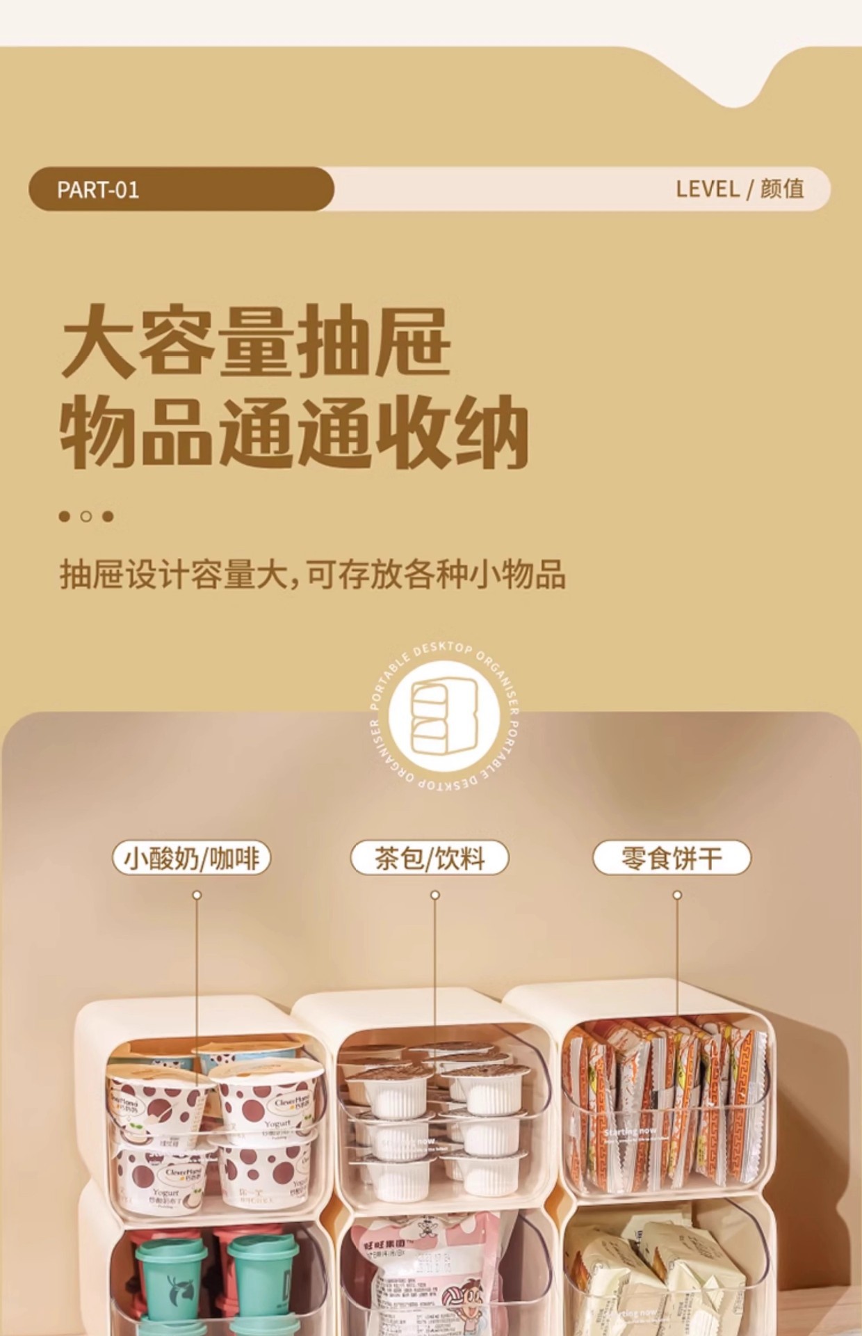 도파민 보관 상자 크림 스타일 서랍 형 데스크탑 잡화 정리 상자 사무실 책상 보관 펜 홀더
