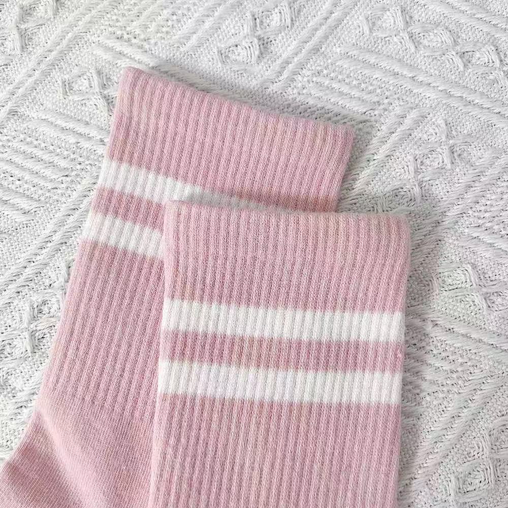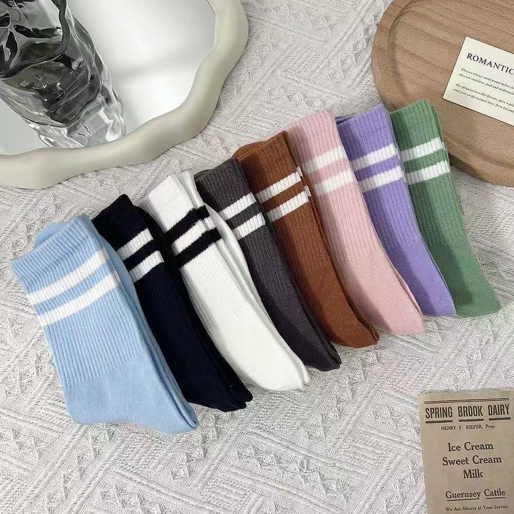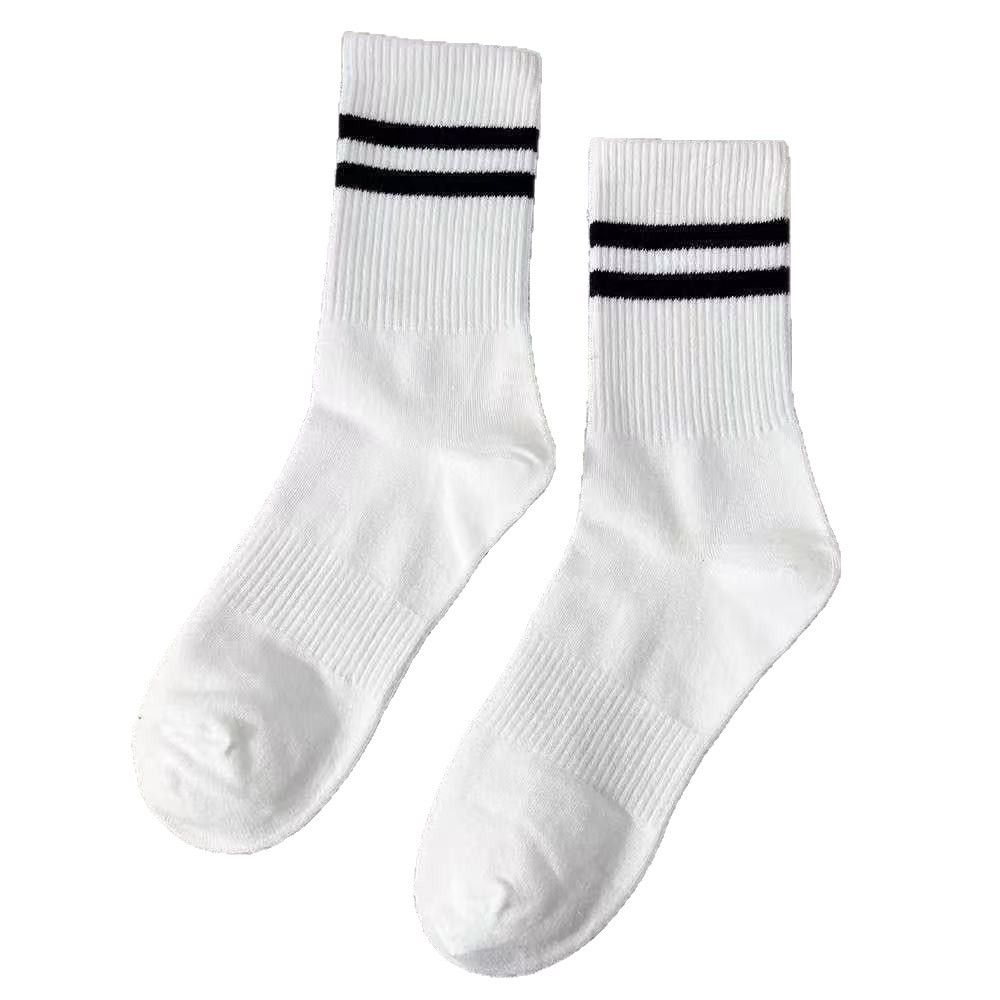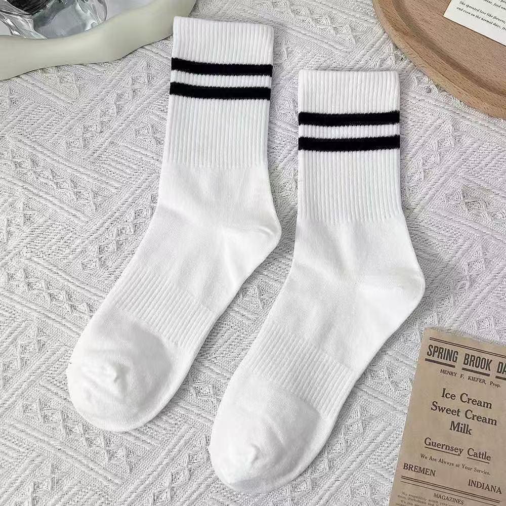 2줄 스트라이프 양말 여성용 종아리 중간 양말 봄, 가을 클라인 블루 스포츠 남성용 양말 대학 스타일 흑백스토어 가기