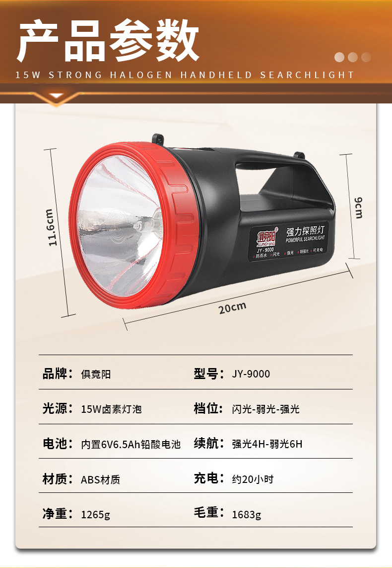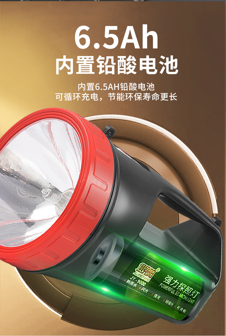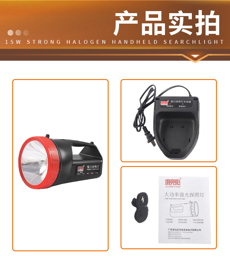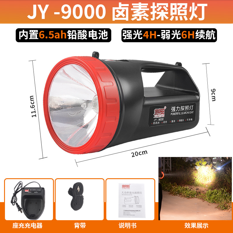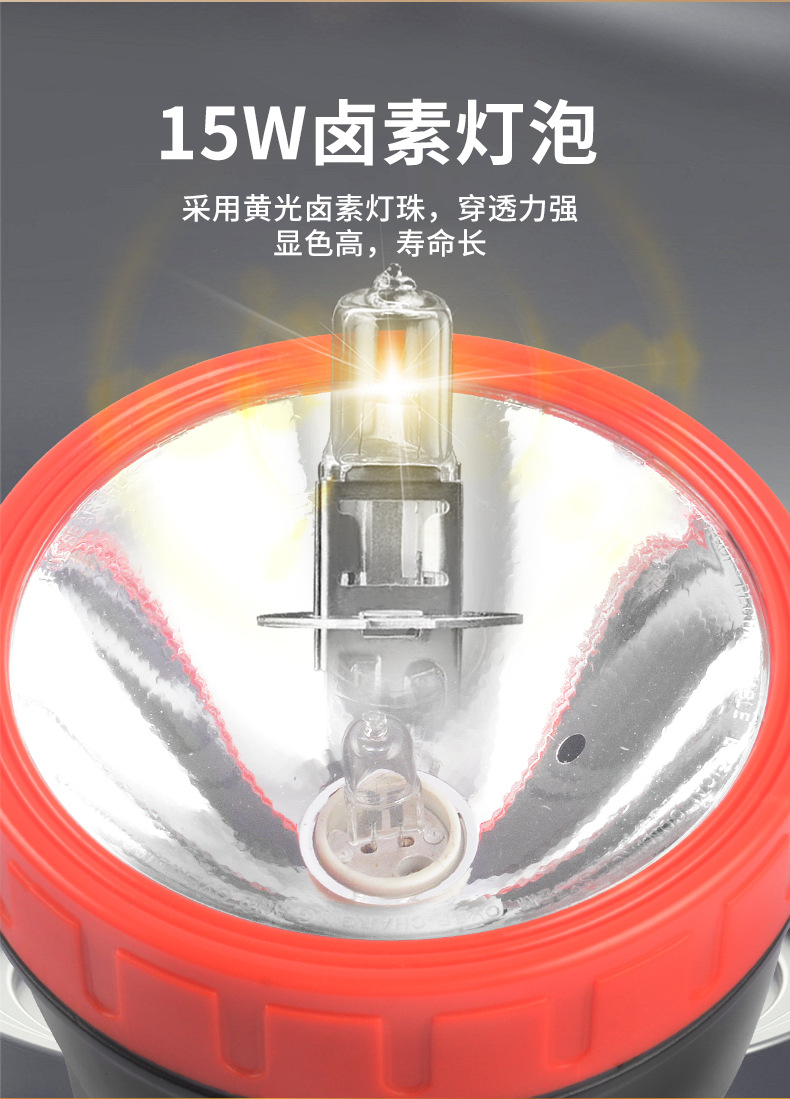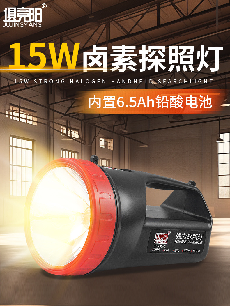 노란색 빛 할로겐 슈퍼 긴 배터리 수명 서치라이트 15W 충전식 슈퍼 밝은 스포트라이트 장거리 야외 캠핑 순찰 손전등
