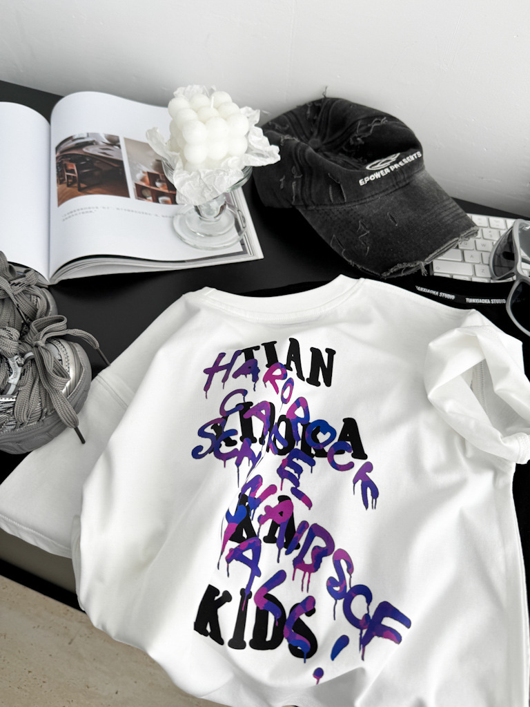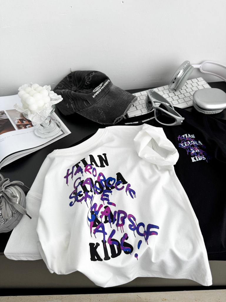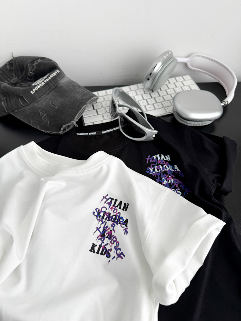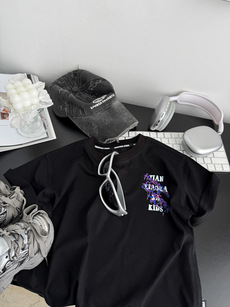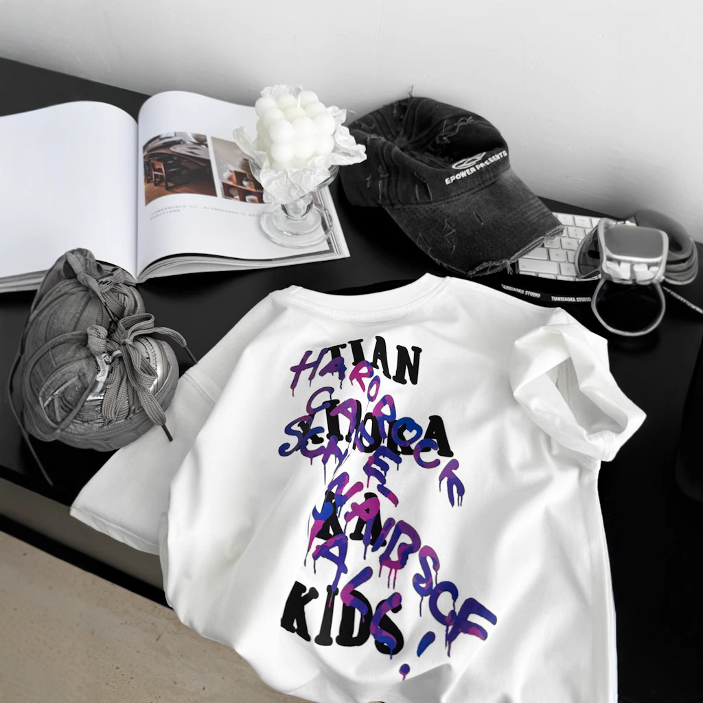 2025 여름 레터 코튼 티셔츠, 아동용 트렌디 쿨 탑, 한국식 캐주얼 바닥 셔츠, 반팔 티셔츠, 아동용 루즈한 옷스토어 가기
