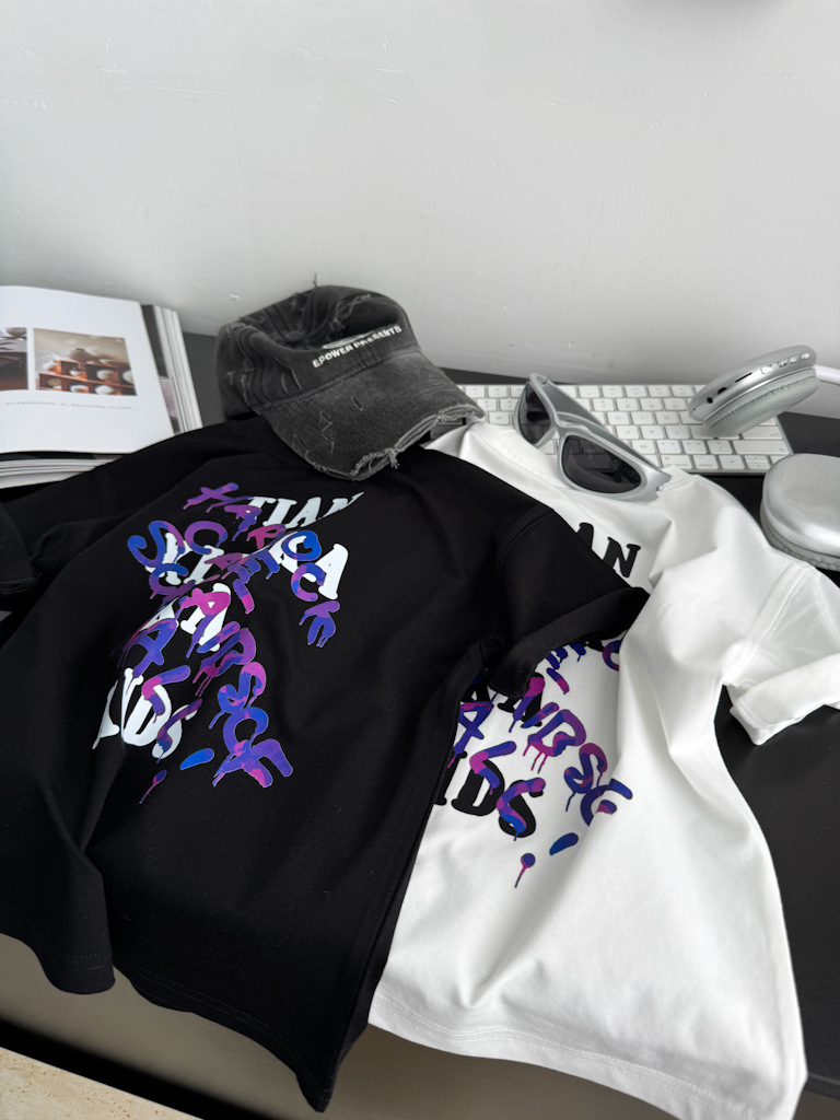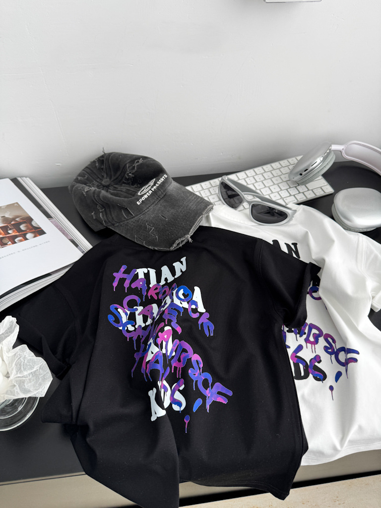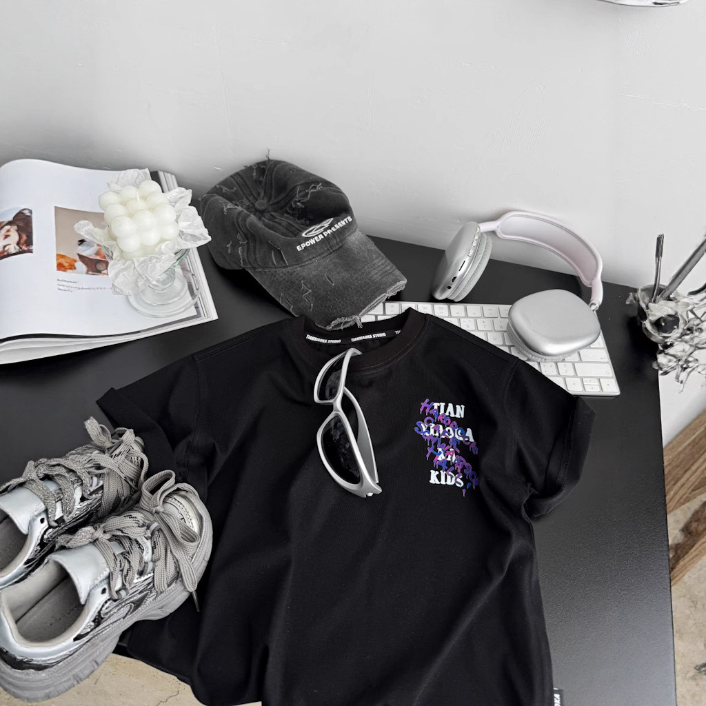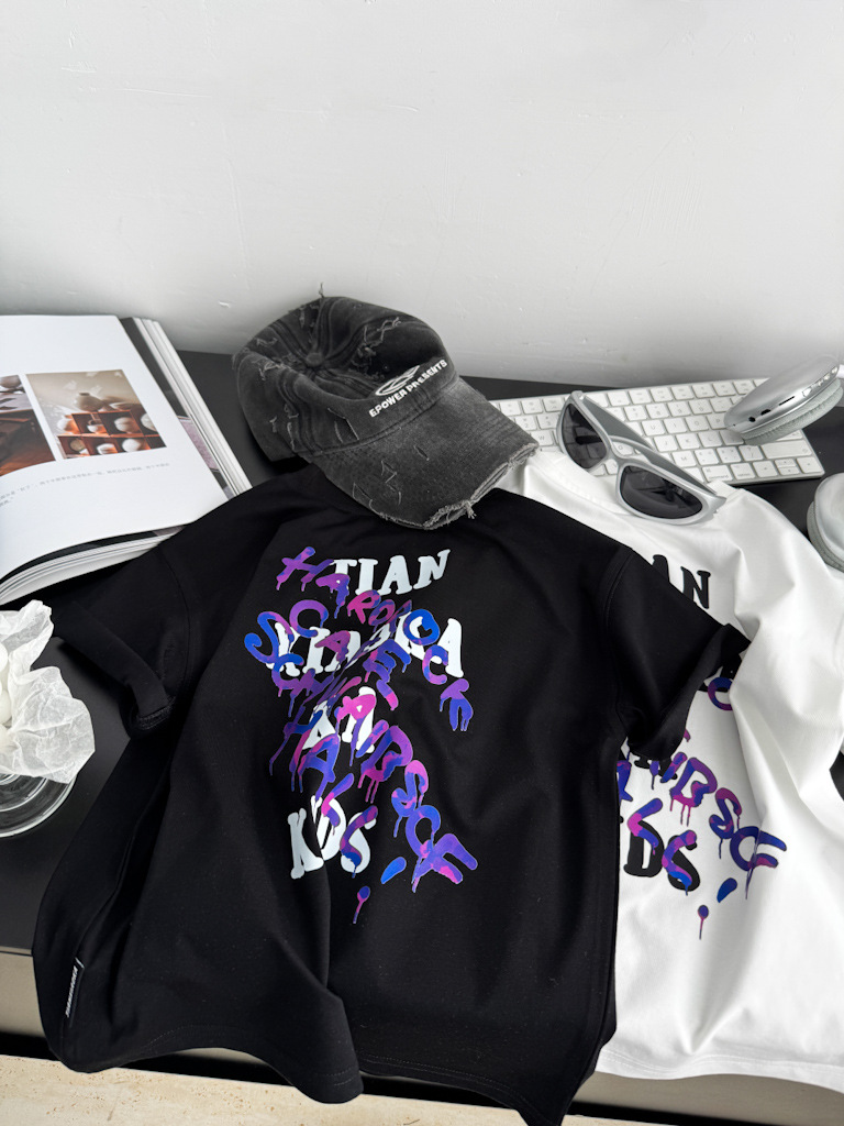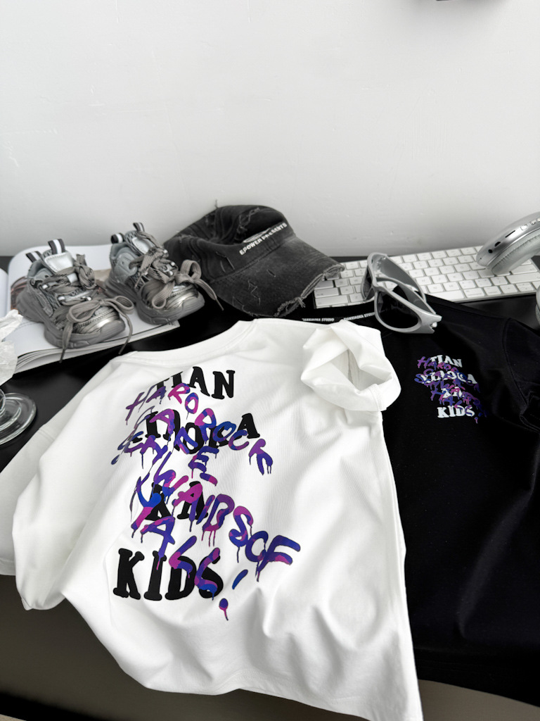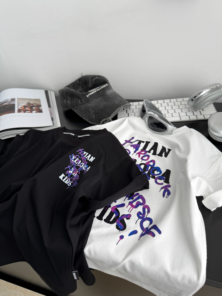 2025 여름 레터 코튼 티셔츠, 아동용 트렌디 쿨 탑, 한국식 캐주얼 바닥 셔츠, 반팔 티셔츠, 아동용 루즈한 옷스토어 가기