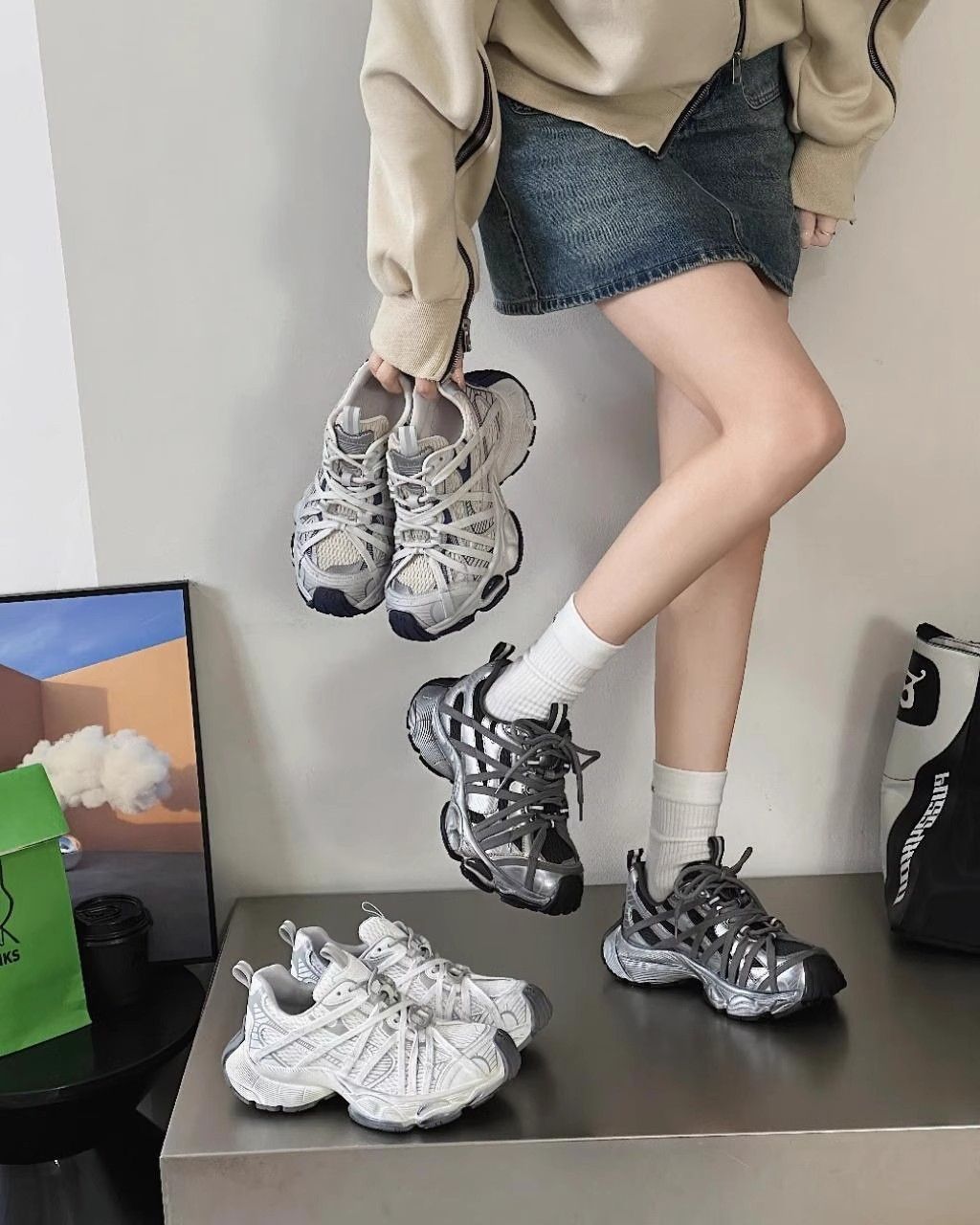 여성용 스트랩 엄마 신발 2025 봄 신상 두꺼운 밑창 다용도 스포츠 캐주얼 신발 캐주얼 인기 스포츠 신발스토어 가기