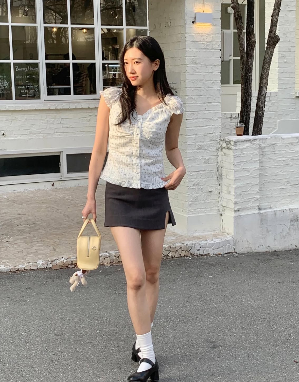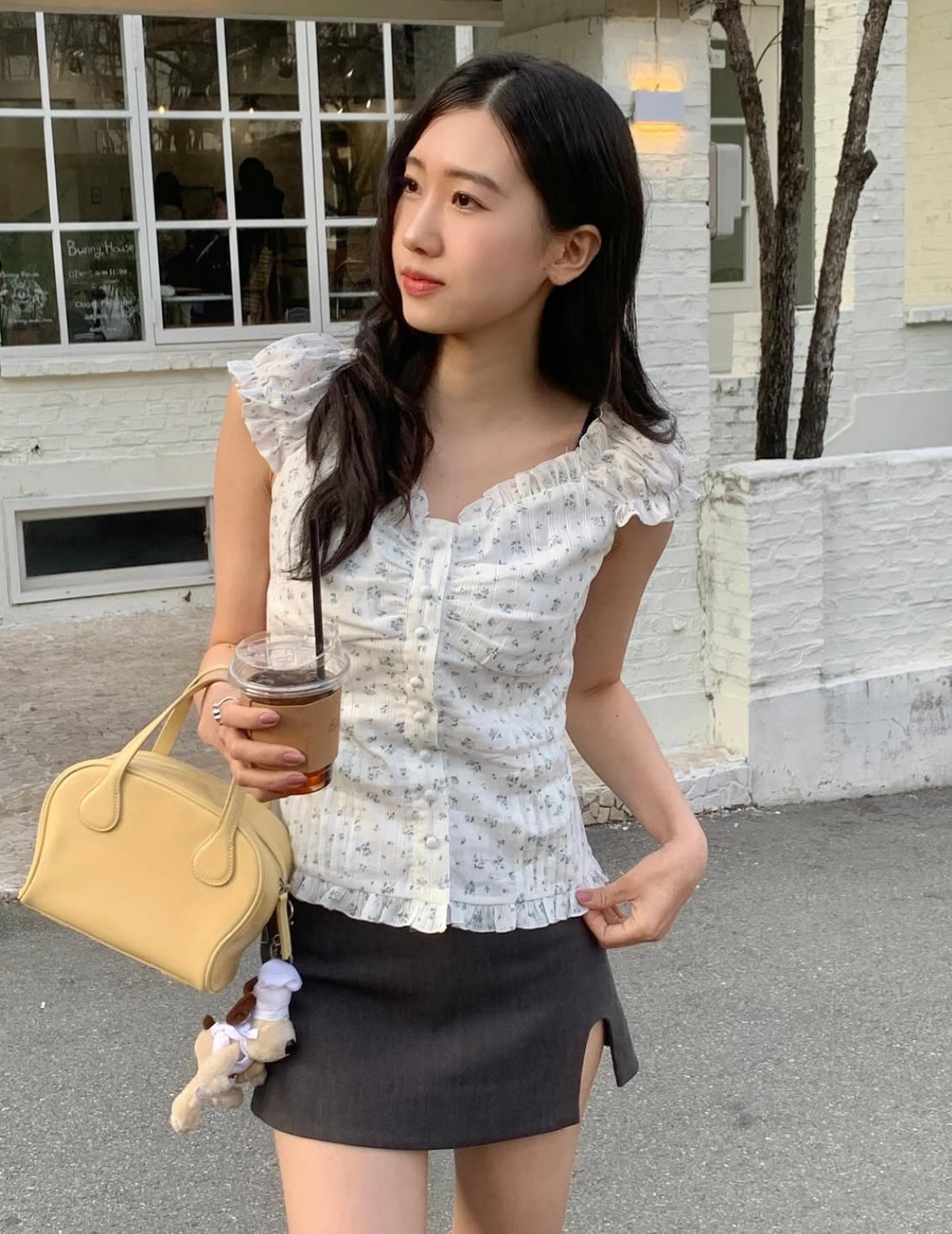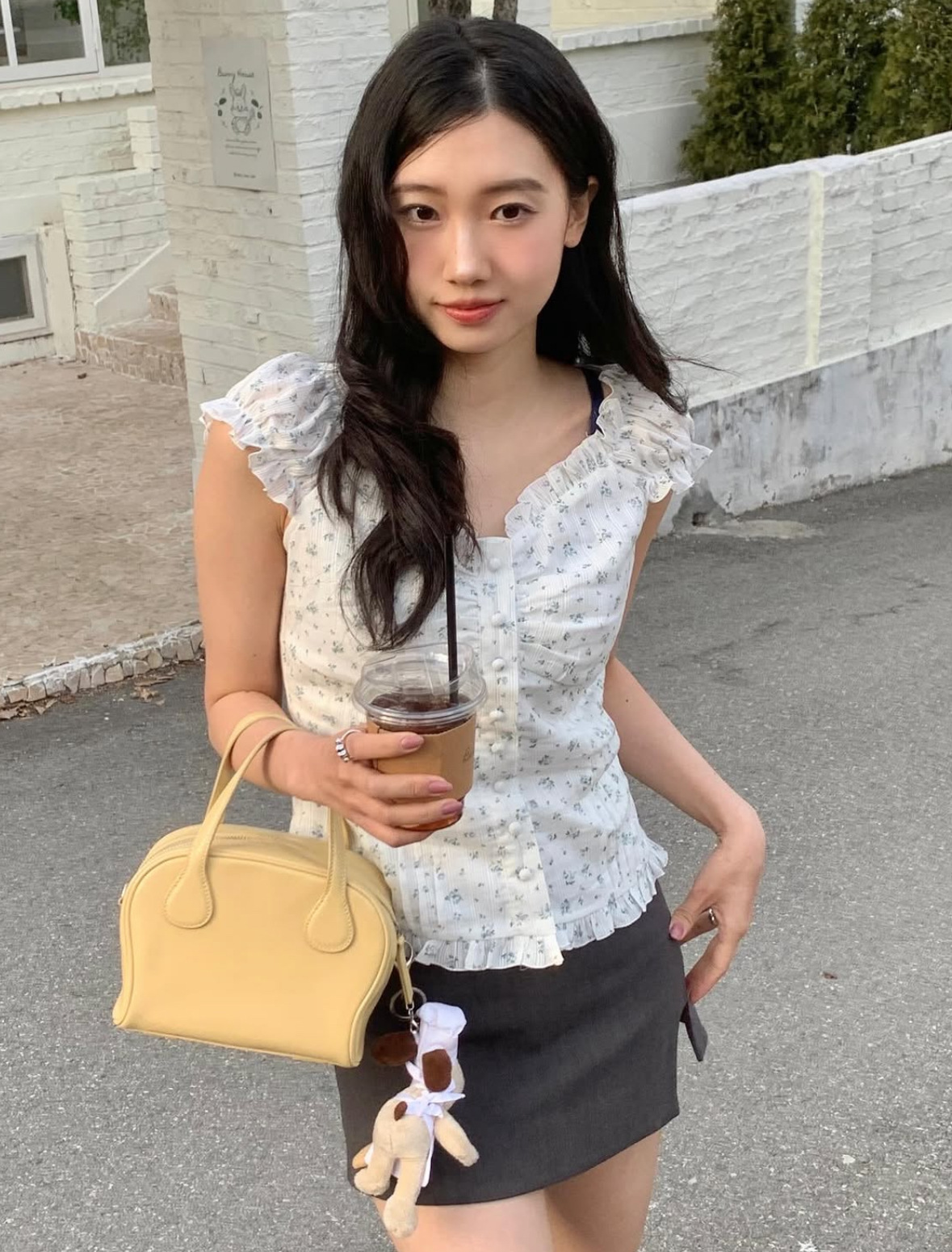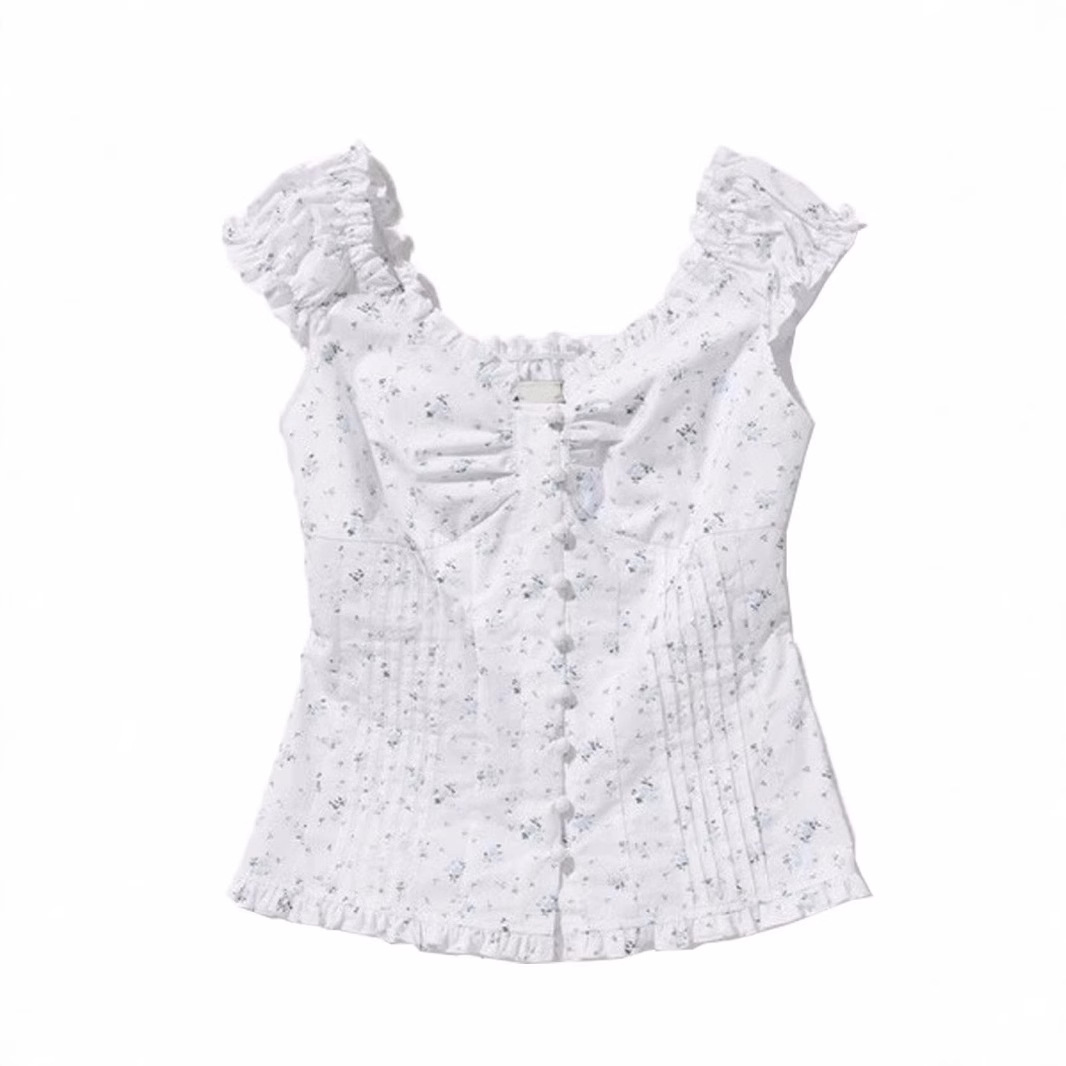 재고 있음 제니 김지니 같은 스타일 한국 니치 꽃무늬 소매 없는 셔츠 여성 연령 감소 탑스토어 가기