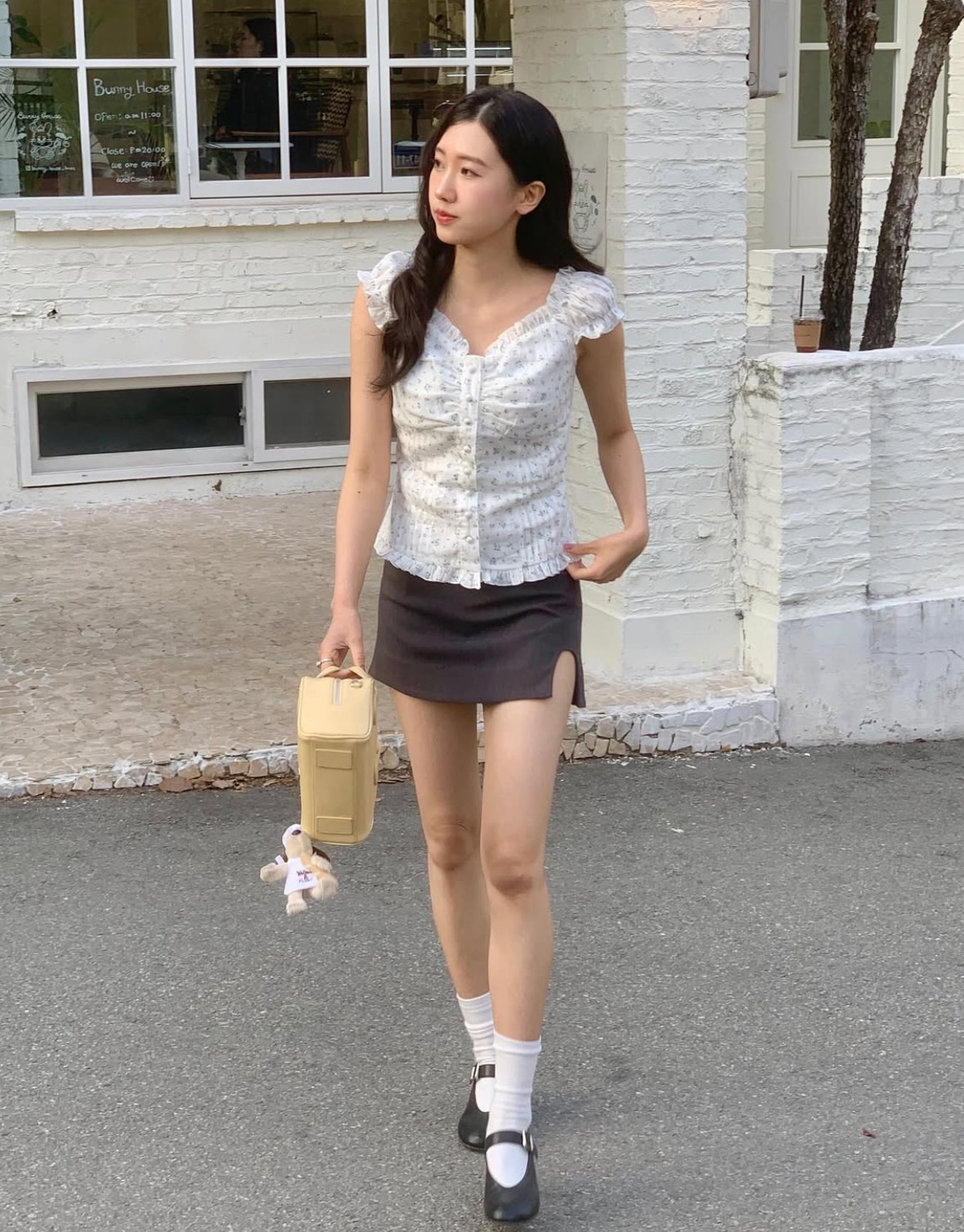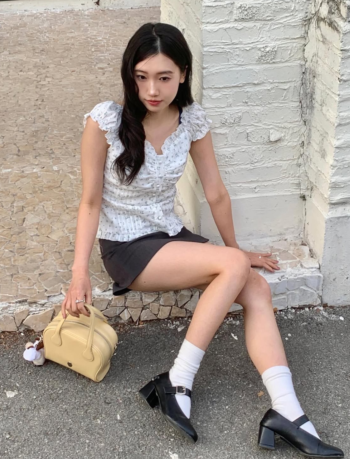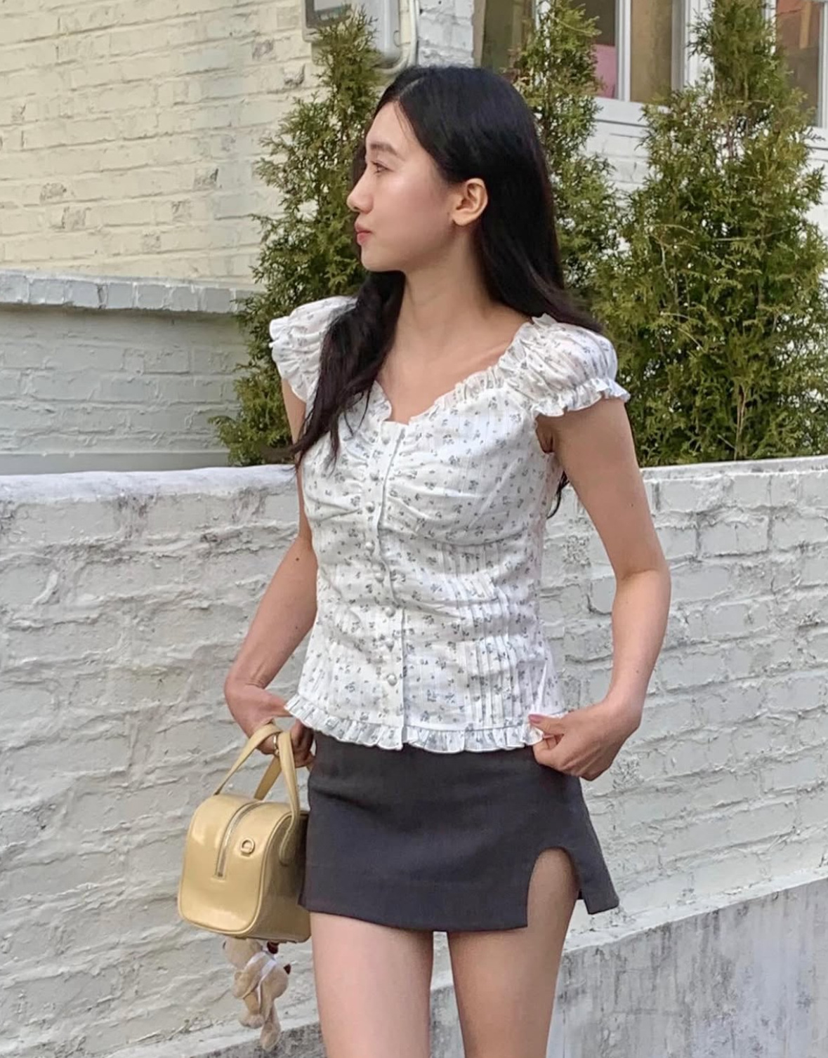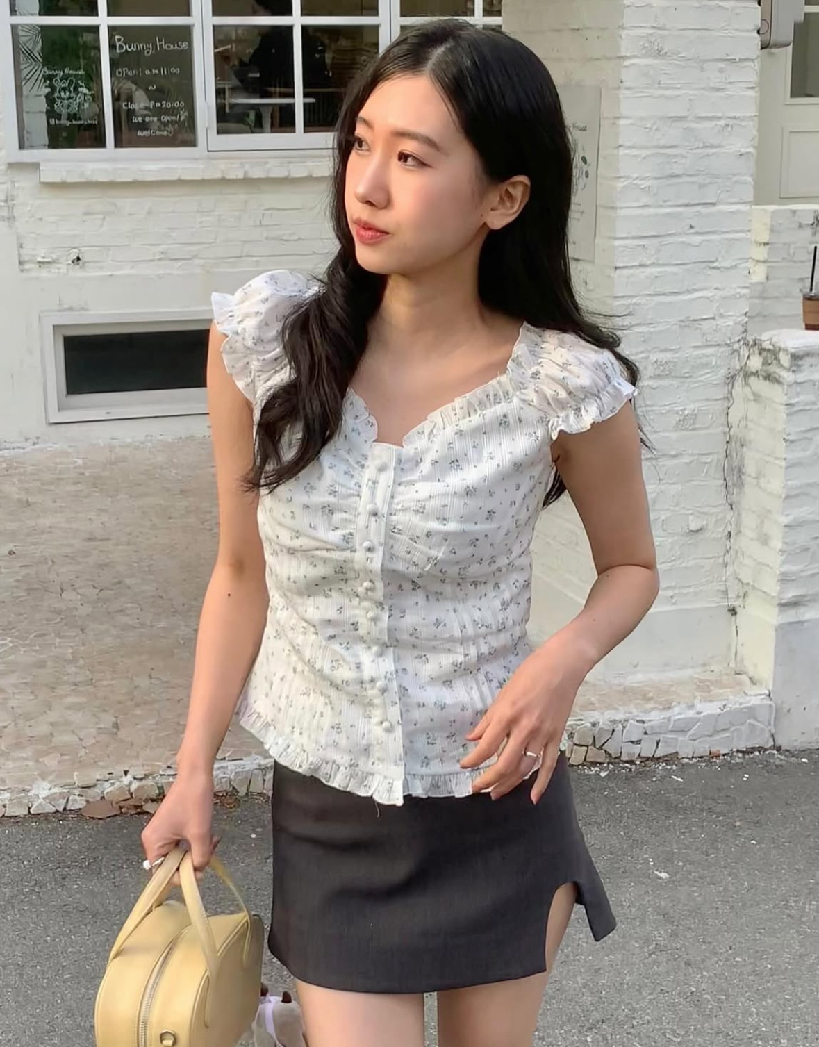 재고 있음 제니 김지니 같은 스타일 한국 니치 꽃무늬 소매 없는 셔츠 여성 연령 감소 탑스토어 가기