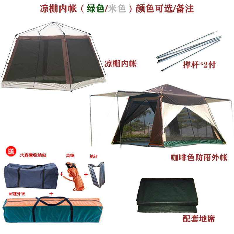 • 베이지 퍼걸러 + 브라운 아웃도어 텐트 + 폴 2개 + 그라운드 매트