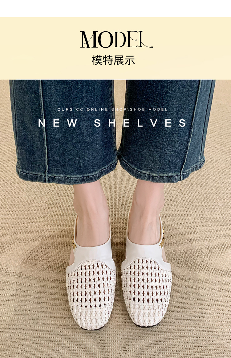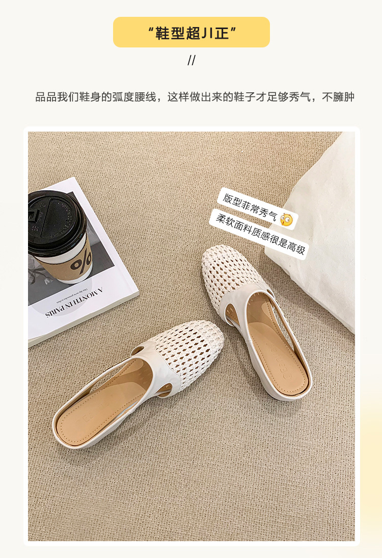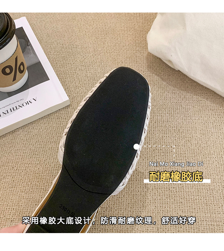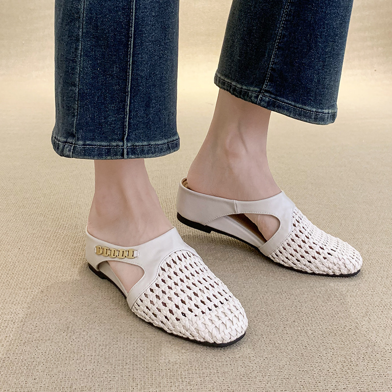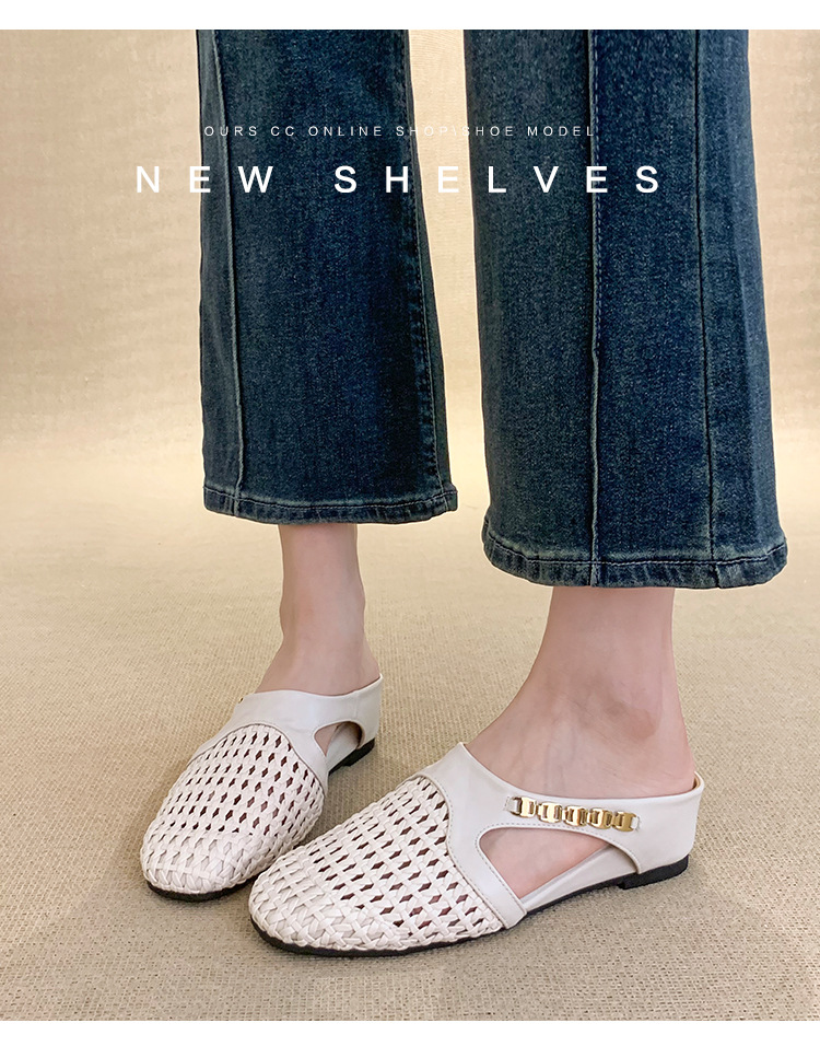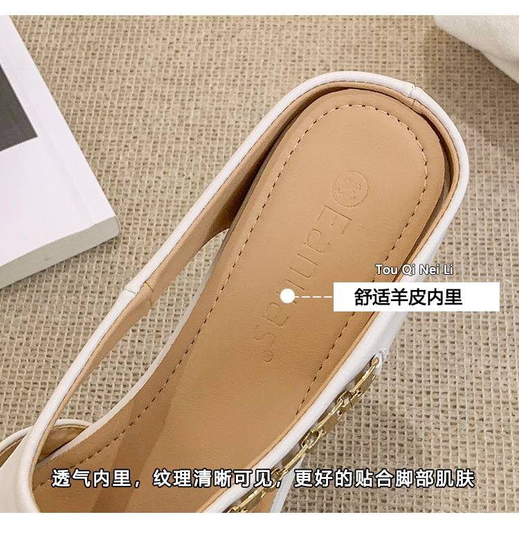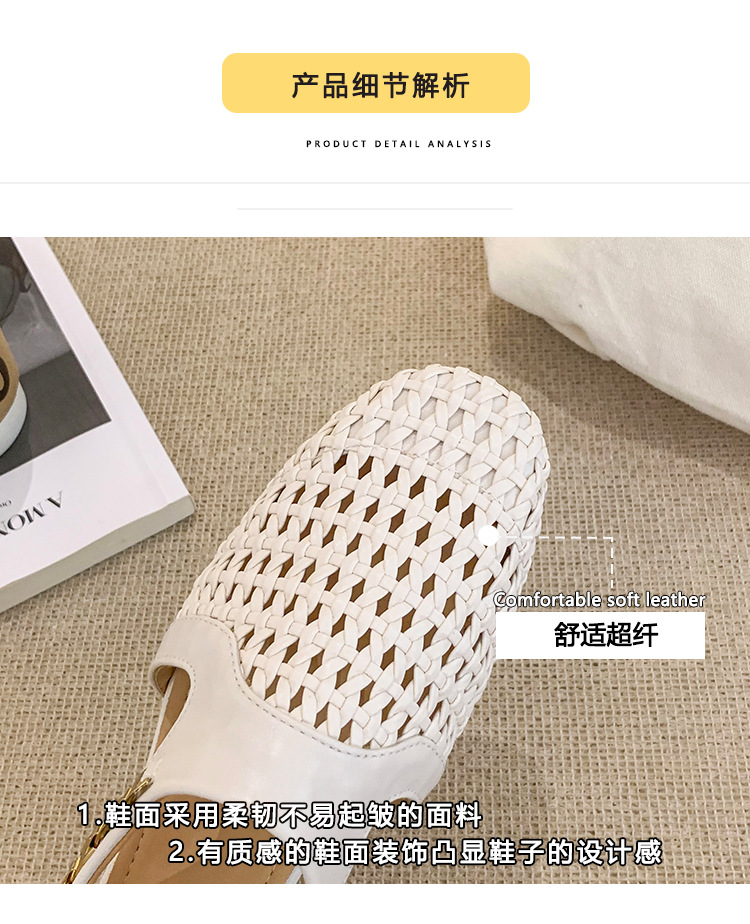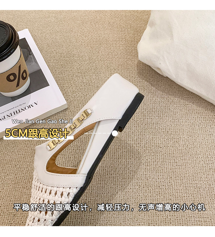 양가죽 버전 ~ 내부 높이가 5cm 증가한 여성용 우븐 중공 발가락 하프 슬립 슈즈, 스커트와 통기성이 뛰어난 여성용 두꺼운 밑창 샌들