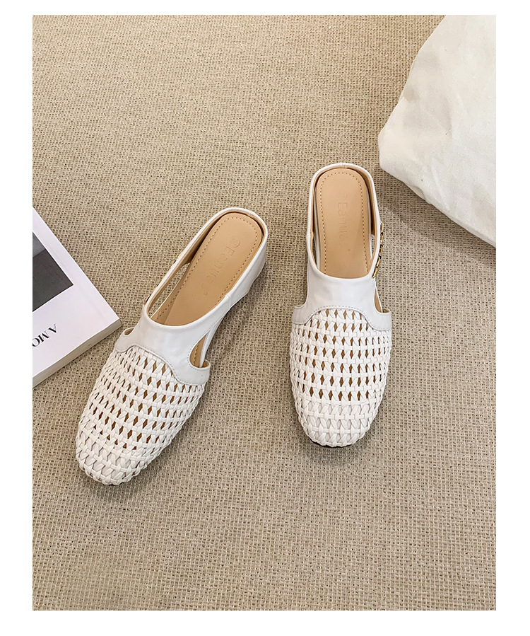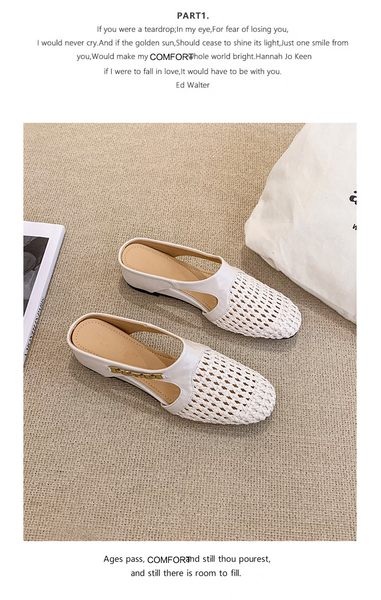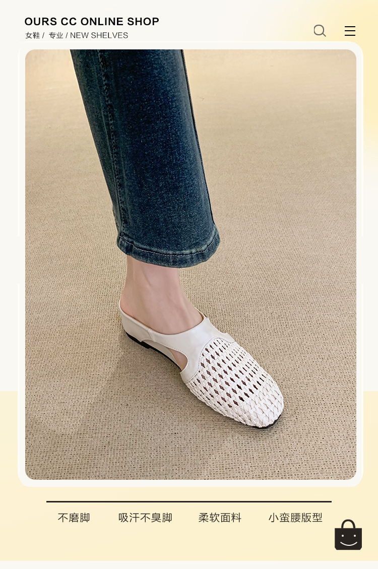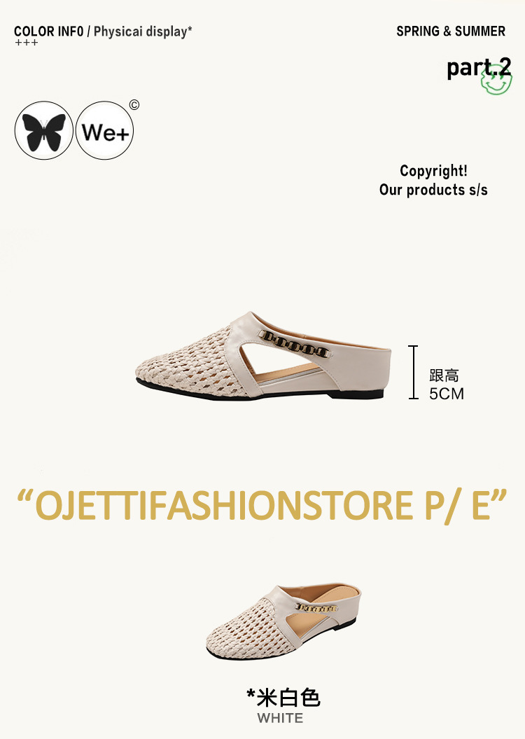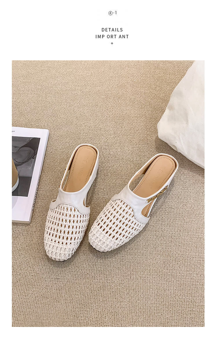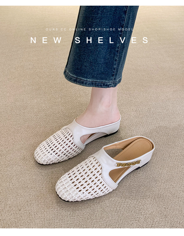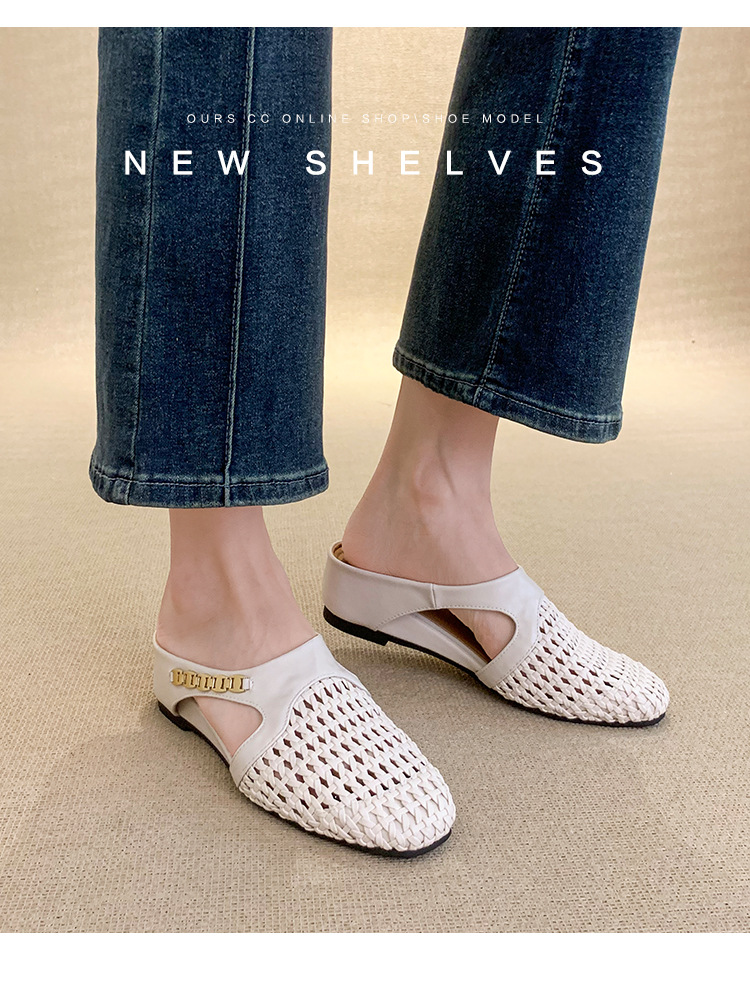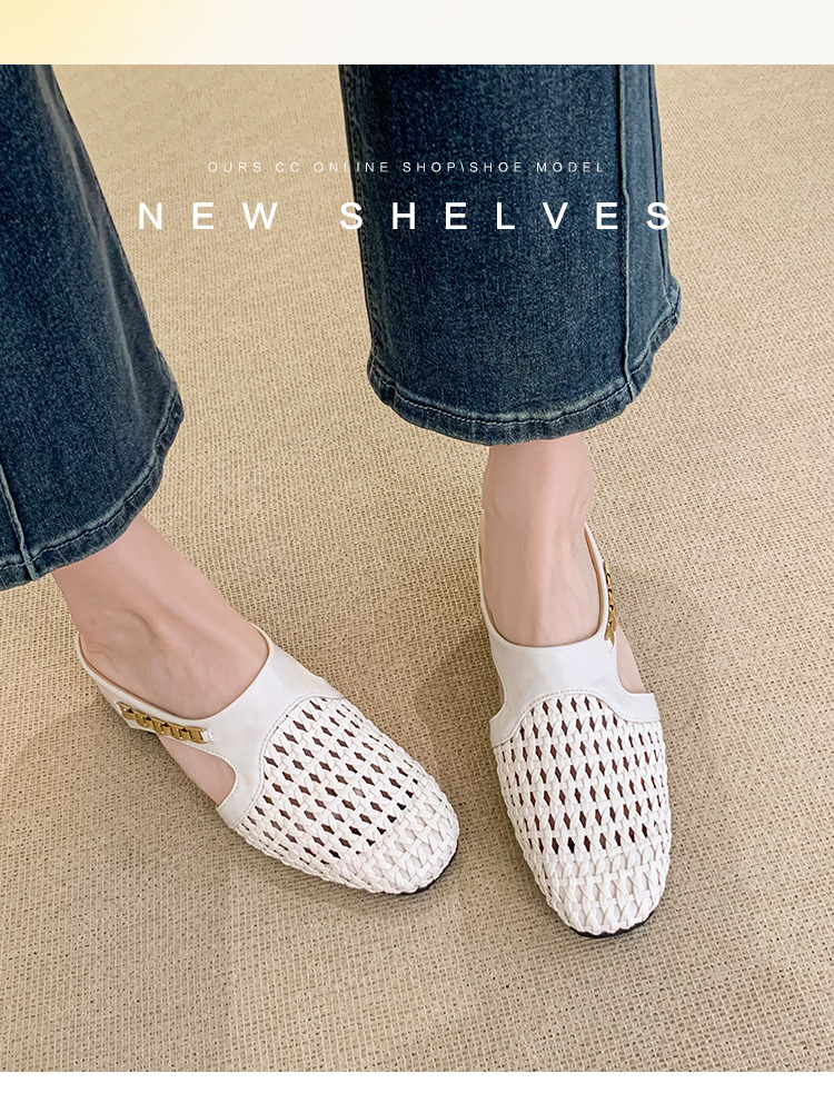 양가죽 버전 ~ 내부 높이가 5cm 증가한 여성용 우븐 중공 발가락 하프 슬립 슈즈, 스커트와 통기성이 뛰어난 여성용 두꺼운 밑창 샌들