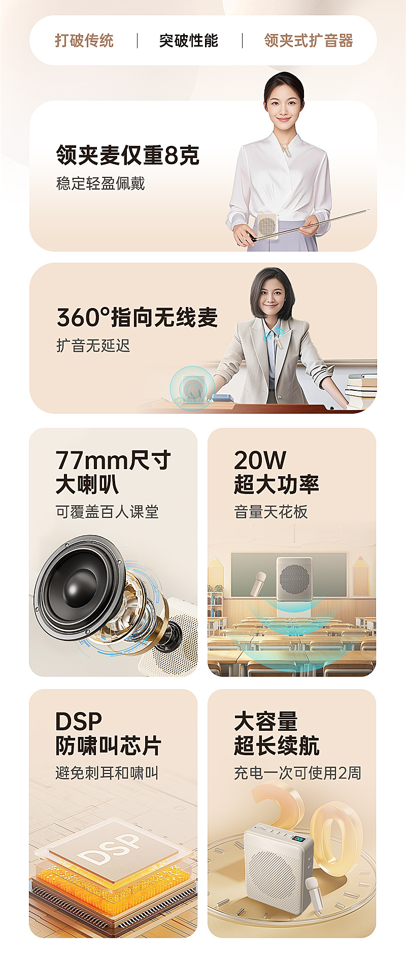 Little Bee 확성기 교사 전용 무선 라발리에 마이크 교사 강의 투어 가이드 스피커