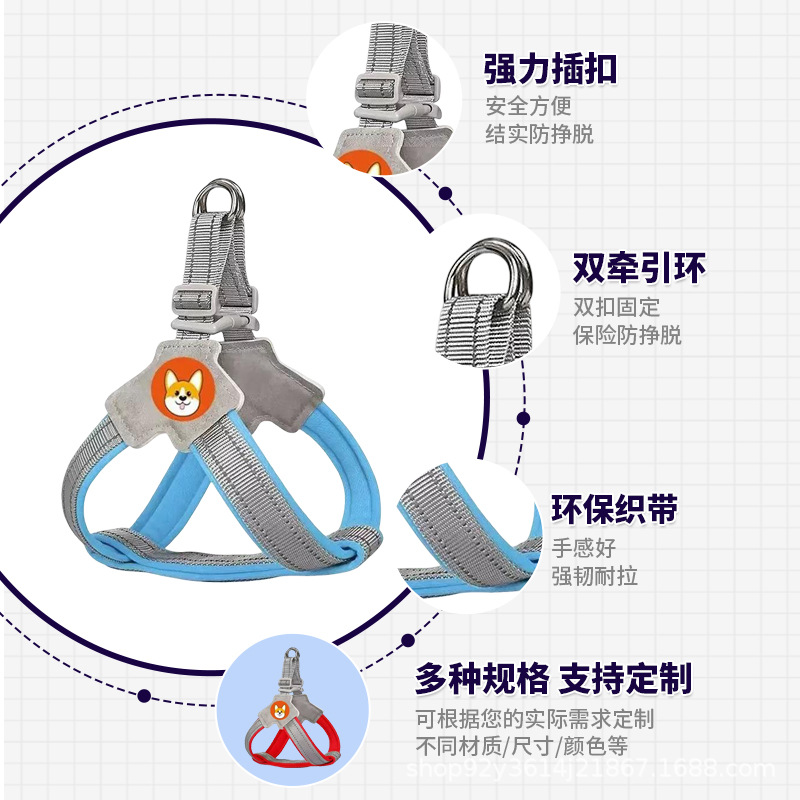 강아지 가죽끈 조끼형 애완동물 하네스 강아지 산책용 가죽끈 시바견 코기 반사 방폭형 강아지 산책용 가죽끈 하네스스토어 가기