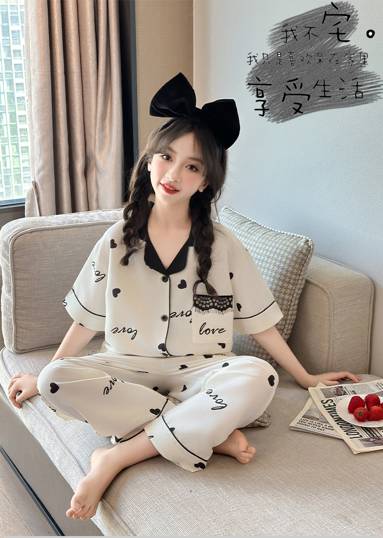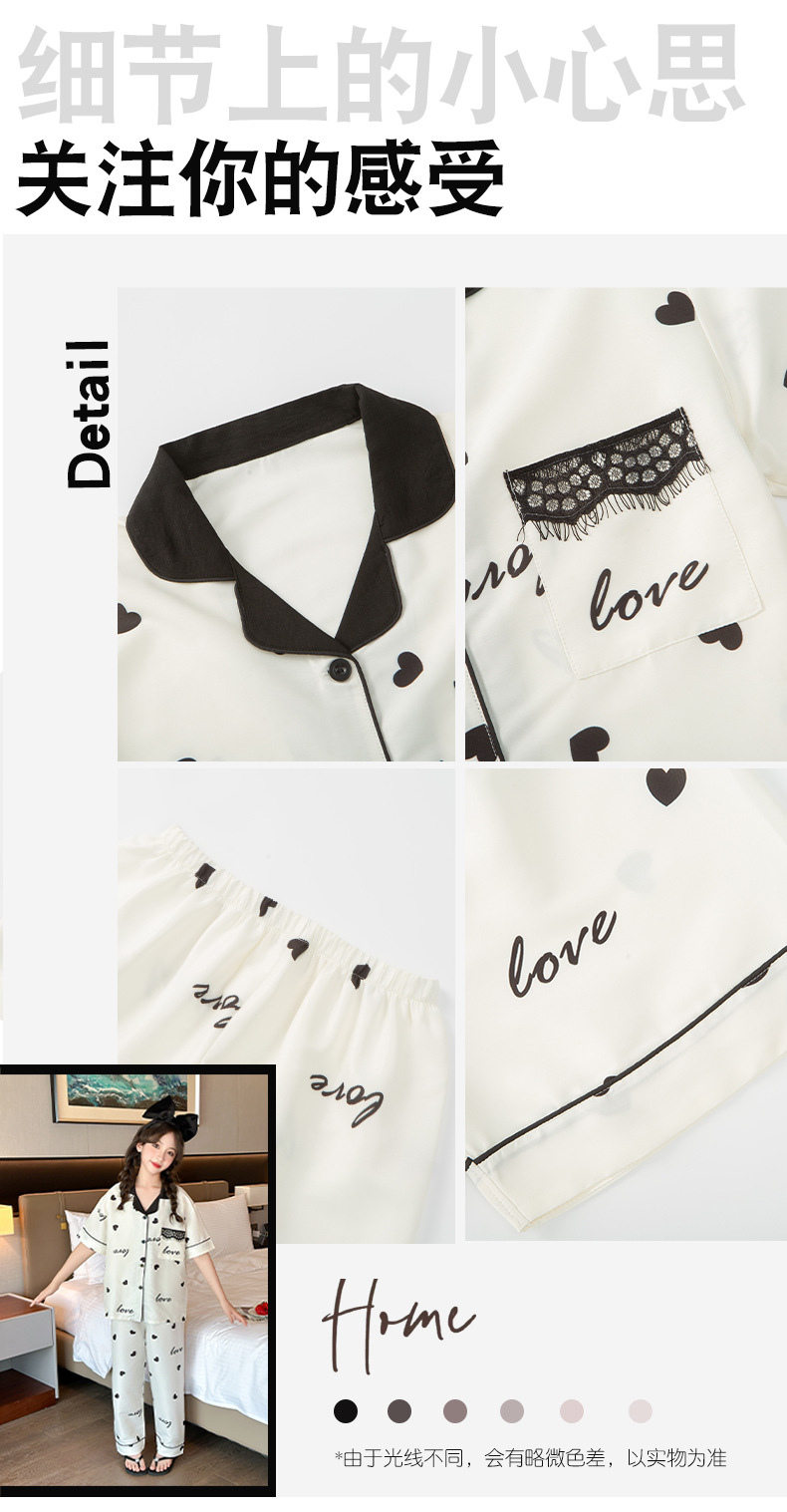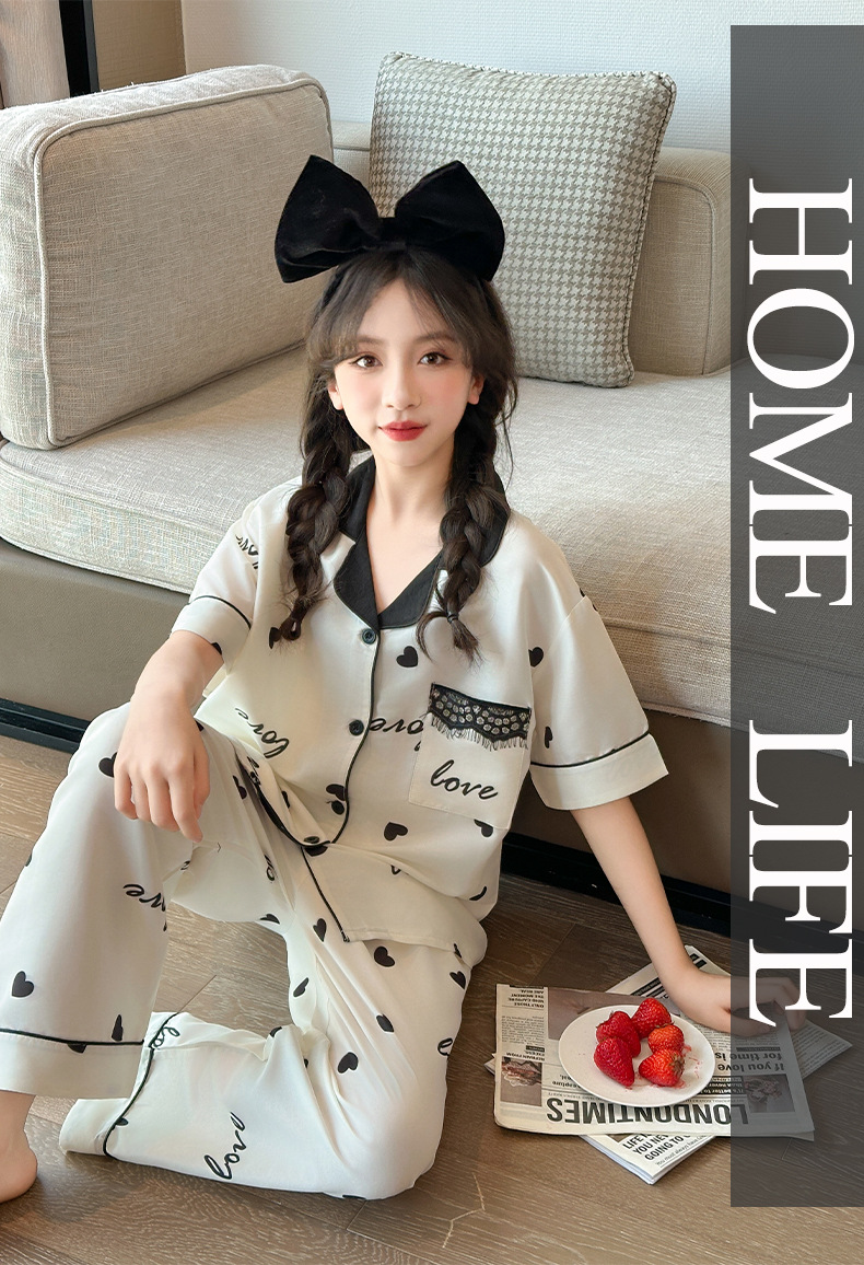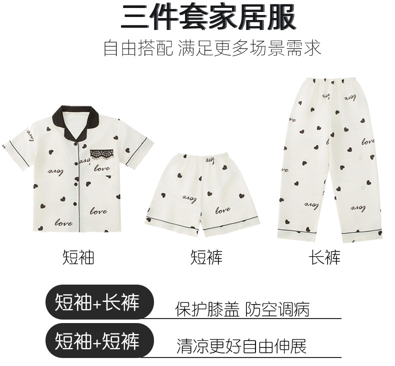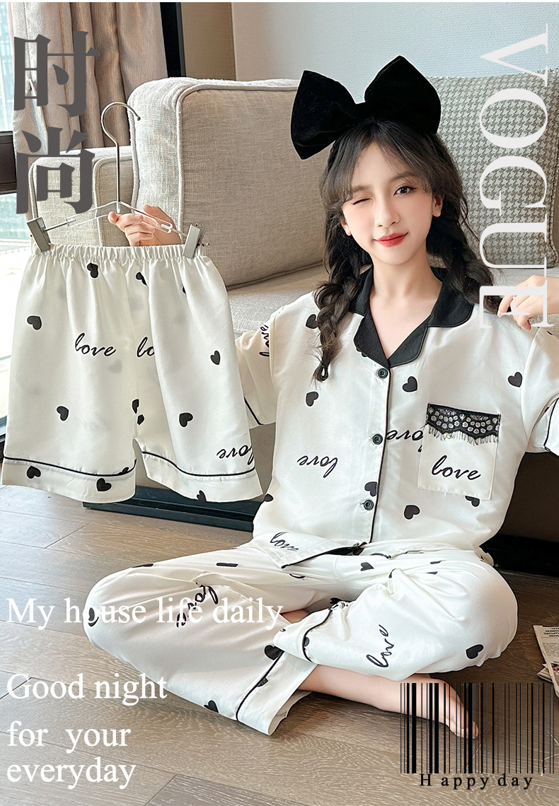여자 여름 얼음 실크 잠옷 3 피스 세트, 여자 여름 옷, 느슨한 가정 옷, 반바지 및 바지 정장