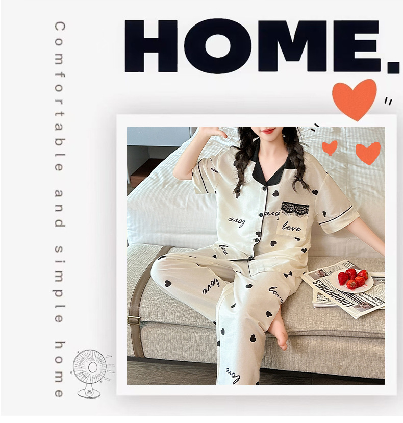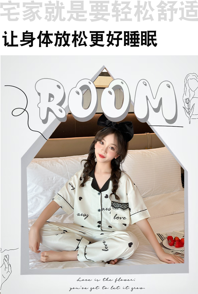 여자 여름 얼음 실크 잠옷 3 피스 세트, 여자 여름 옷, 느슨한 가정 옷, 반바지 및 바지 정장스토어 가기