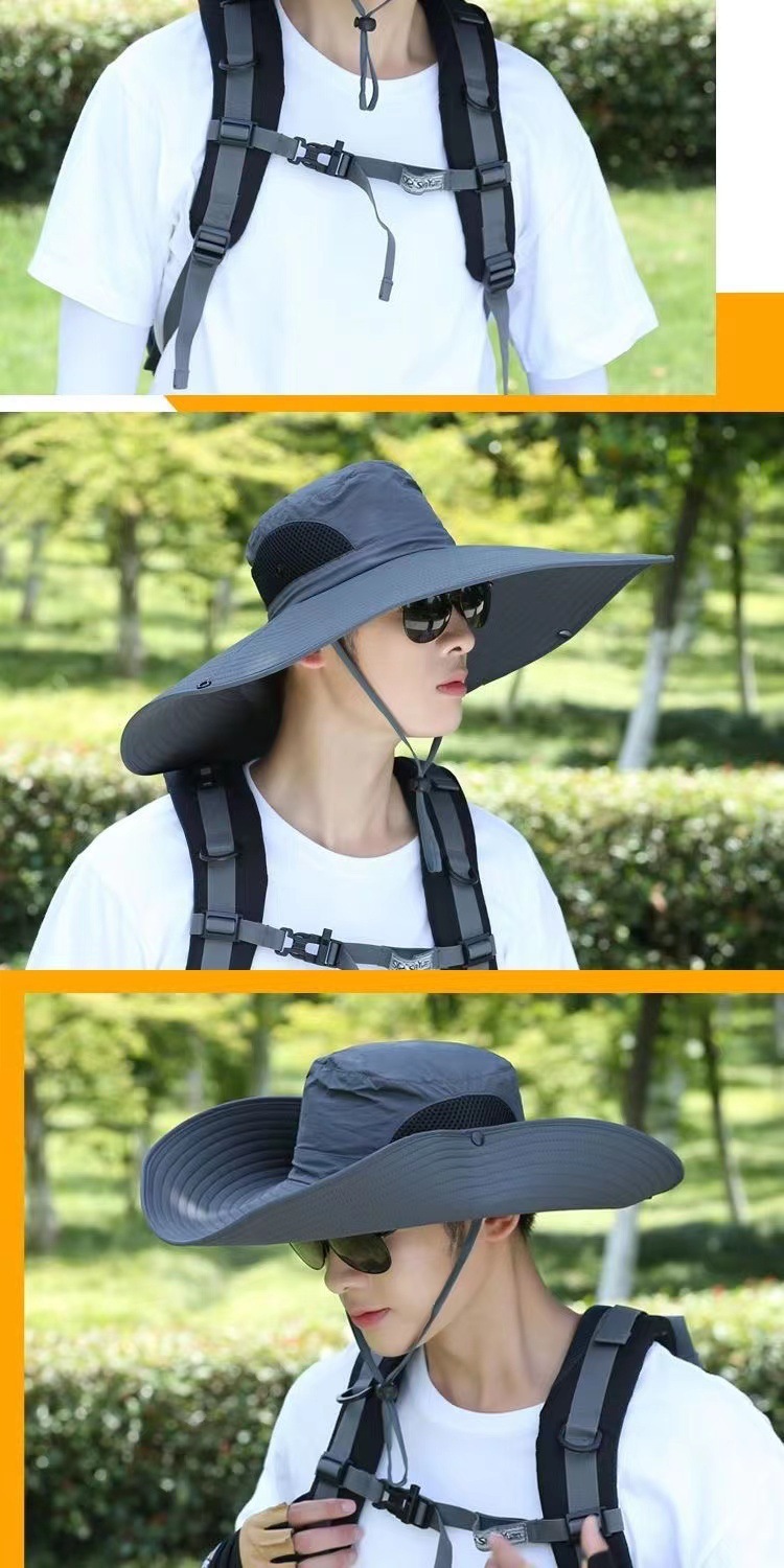 야외용 15CM 대형 챙 모자 남성용 자외선 차단 모자 여름용 태양 모자 낚시 모자 등산용 어부 모자