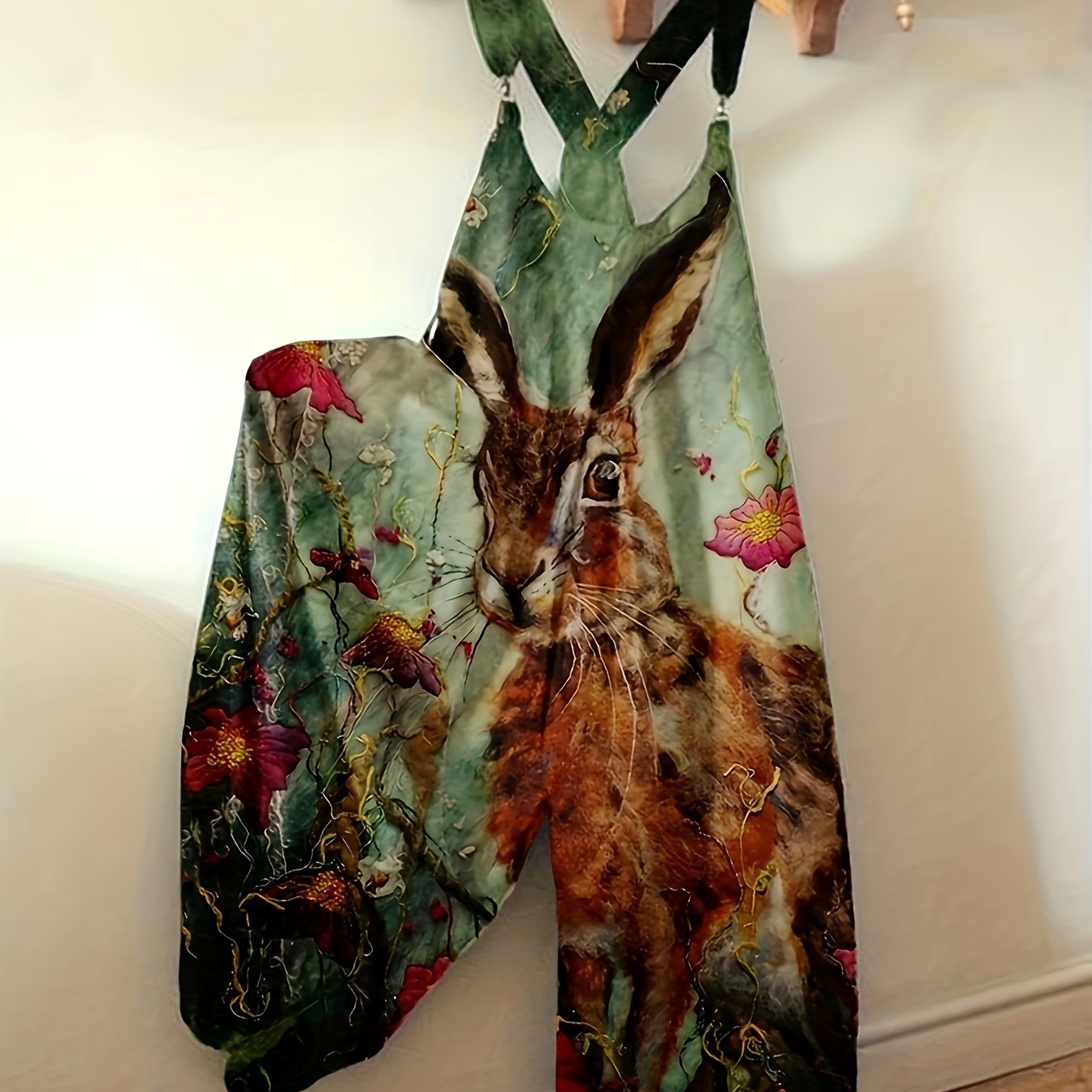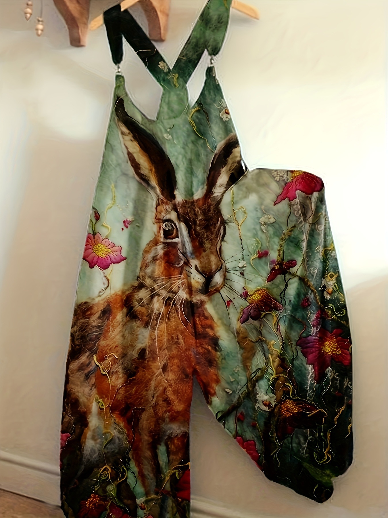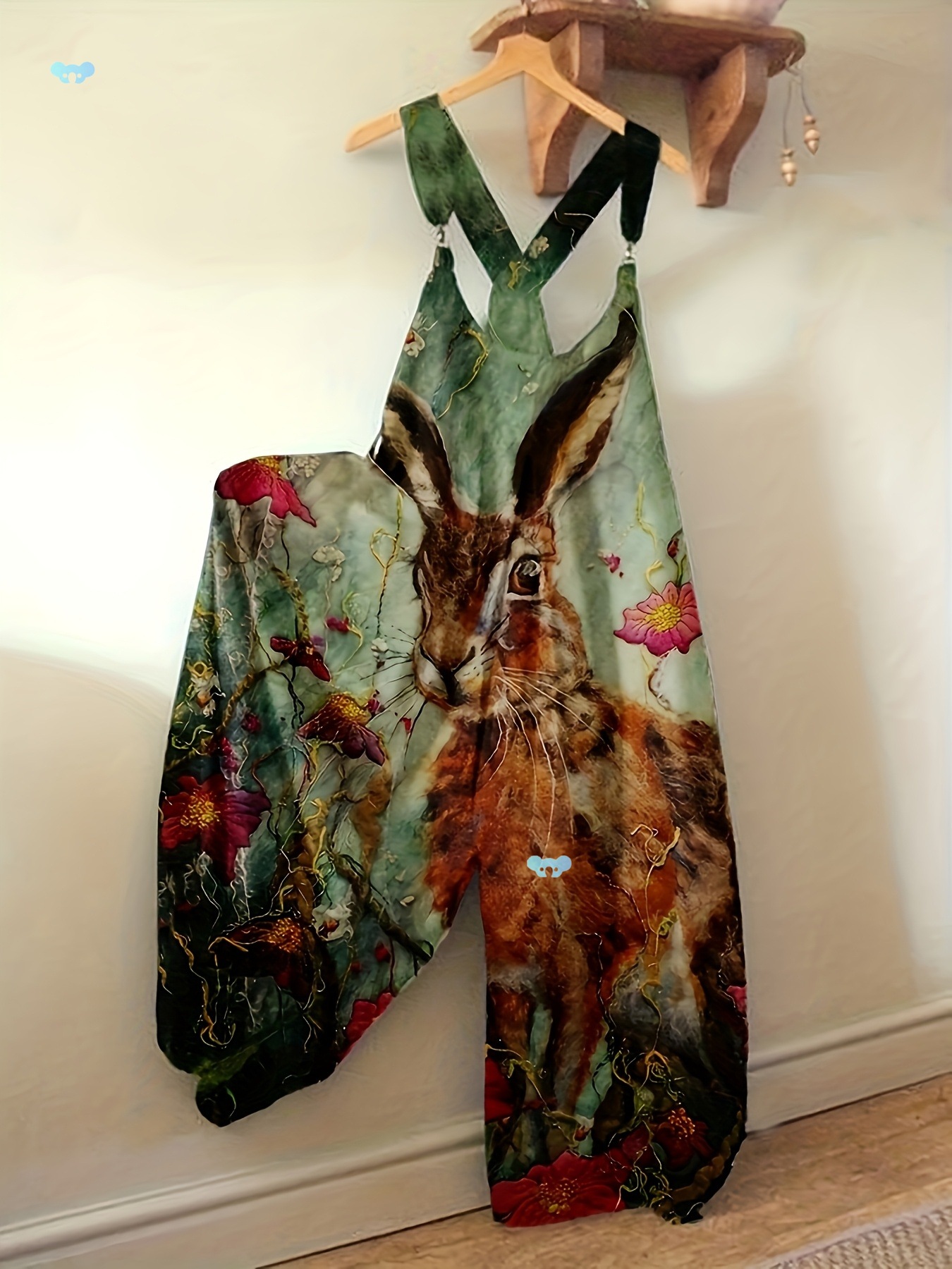 여성용 부활절 귀여운 토끼 프린트 작업복 봄 여름