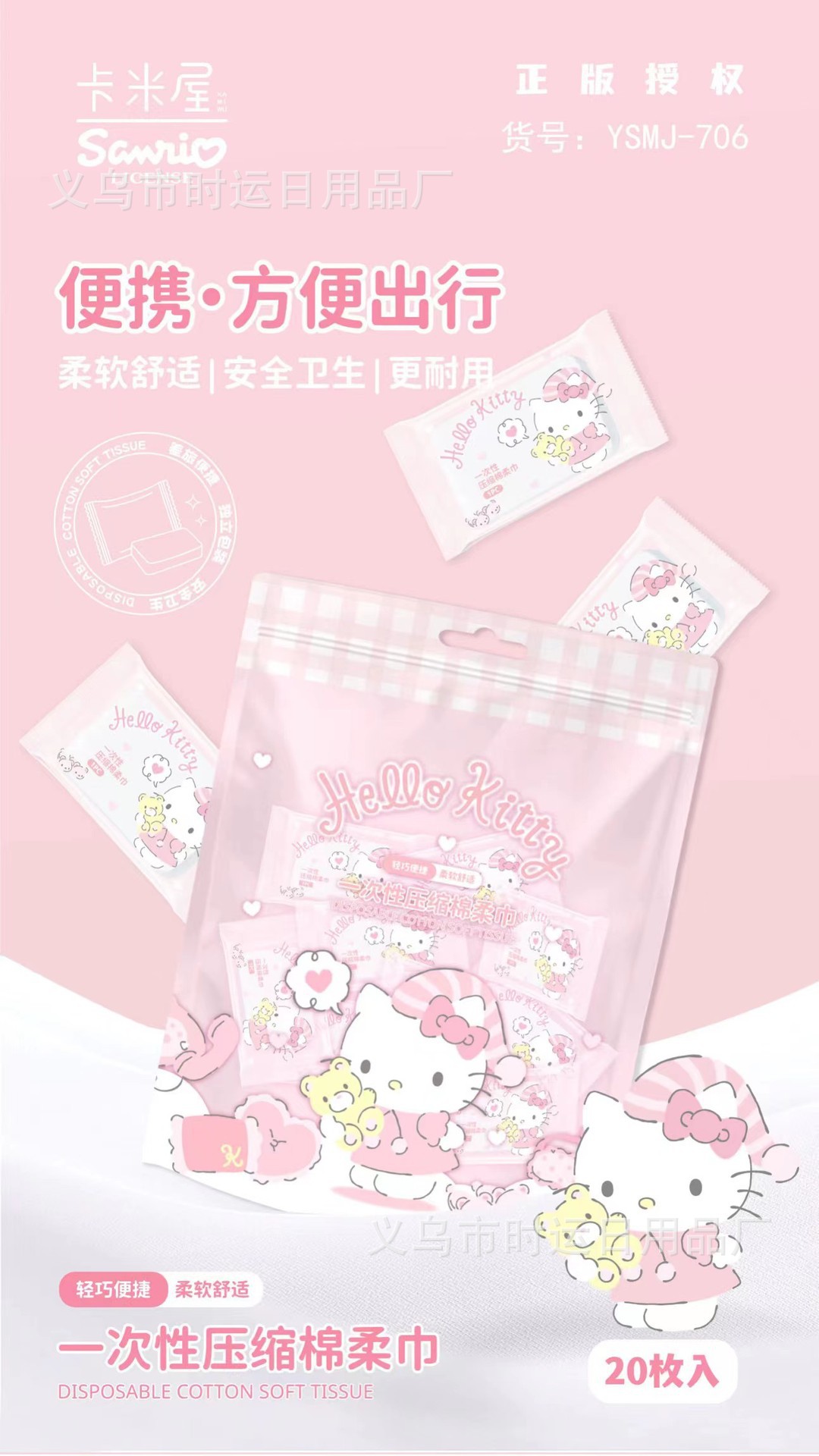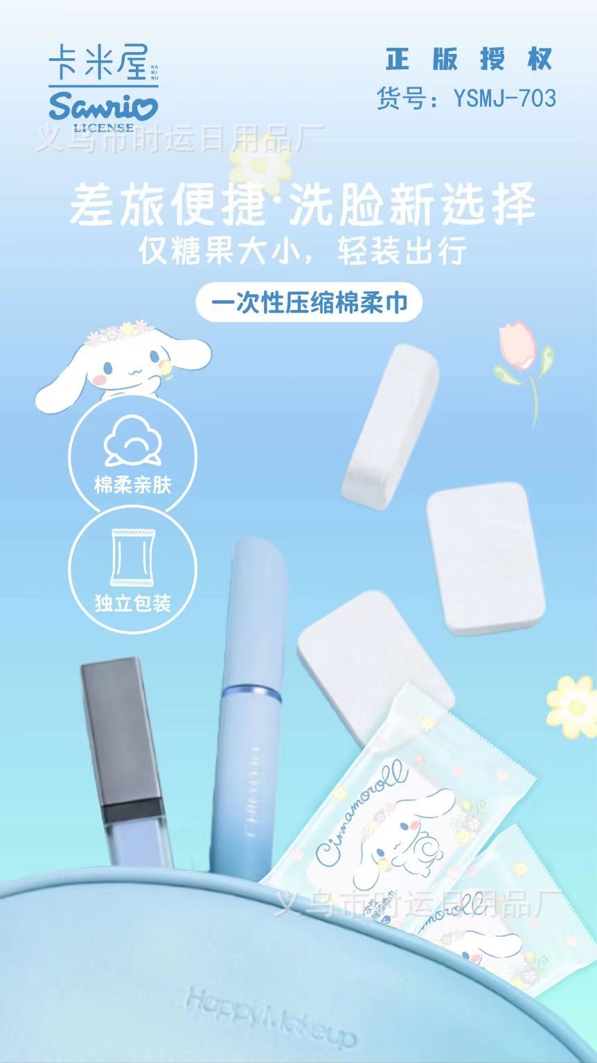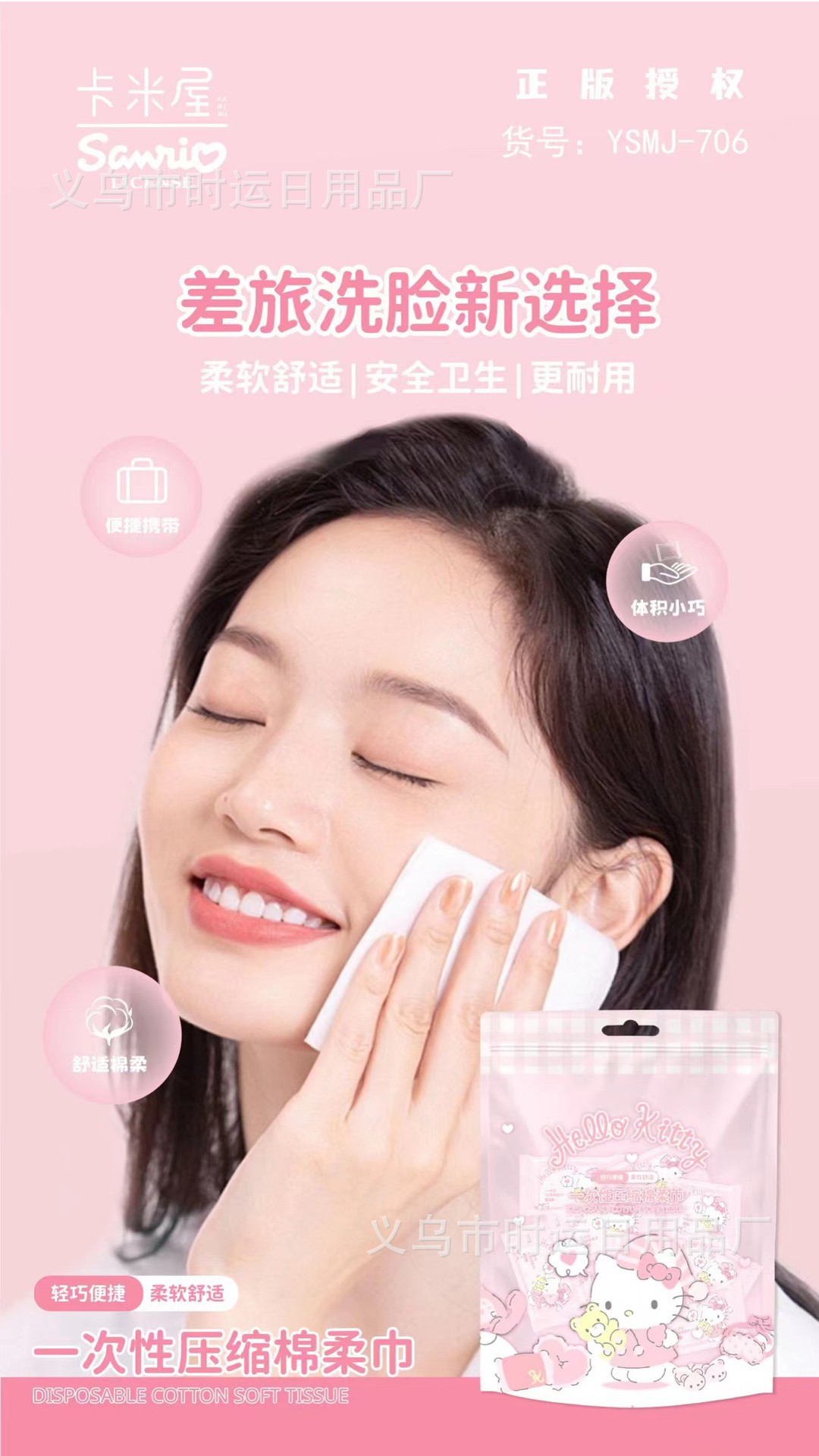 Sanrio 일회용 압축 수건 여행 휴대용 캔디 클렌징 수건 두꺼운 독립형 얼굴 수건