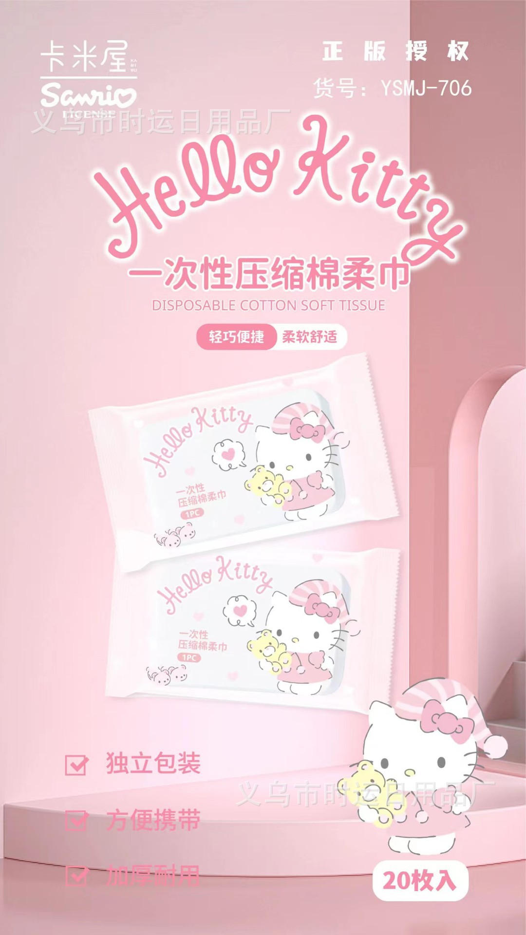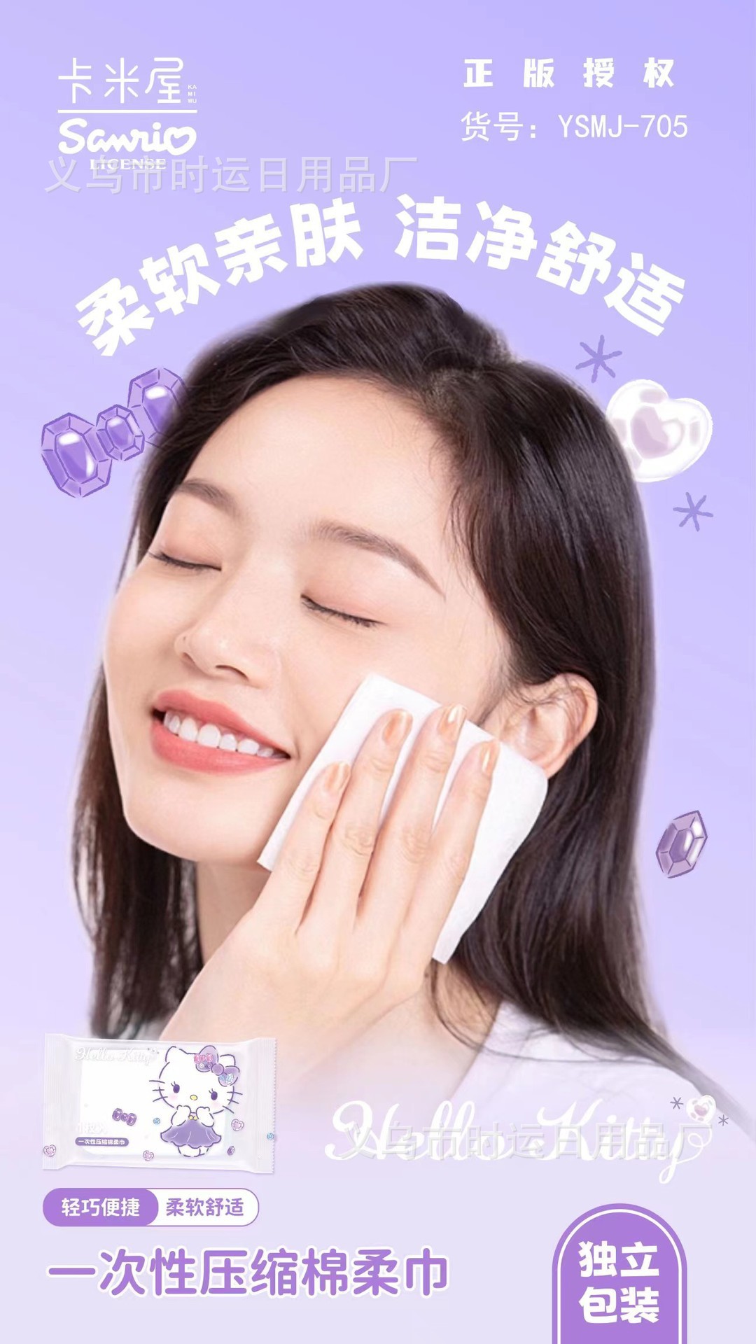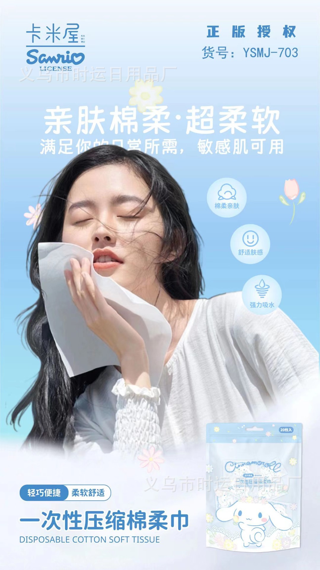 Sanrio 일회용 압축 수건 여행 휴대용 캔디 클렌징 수건 두꺼운 독립형 얼굴 수건