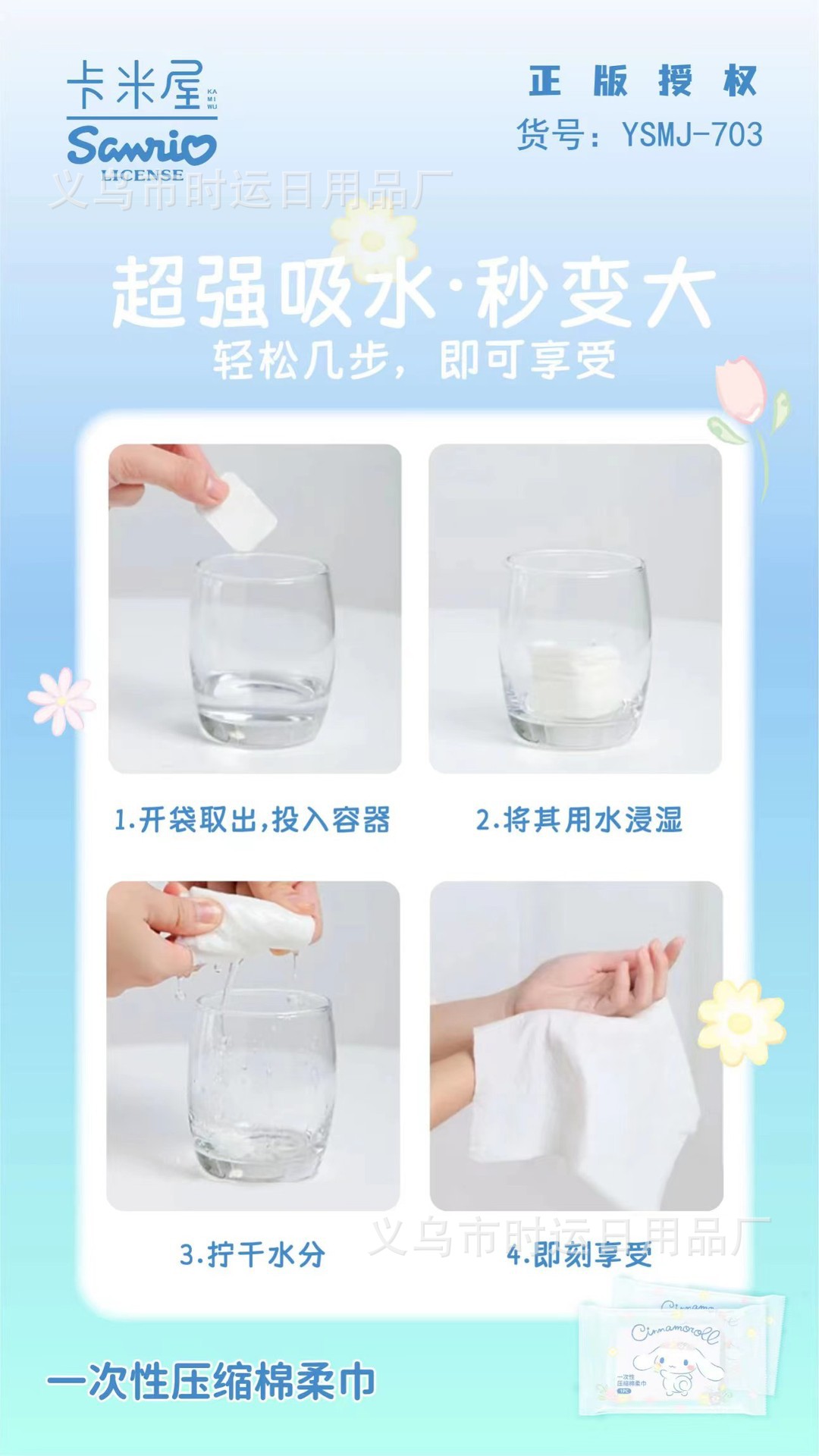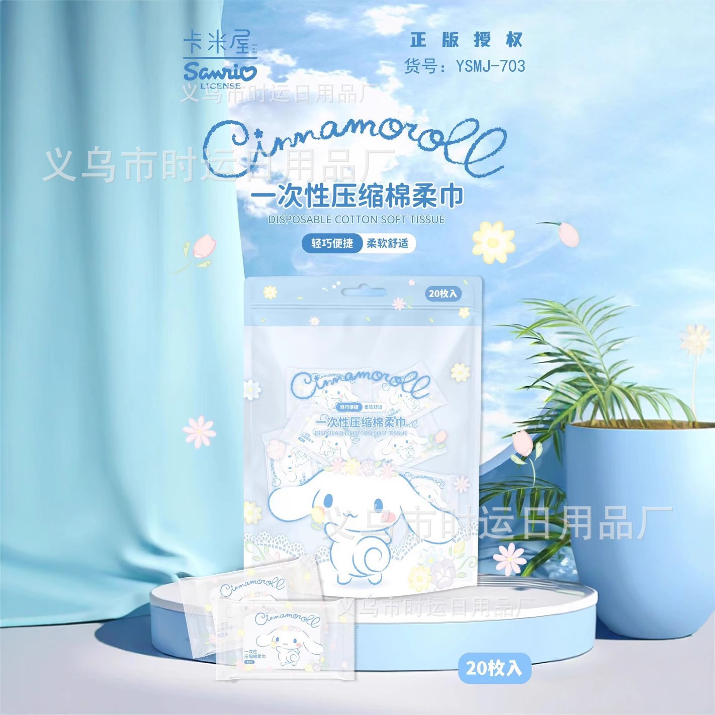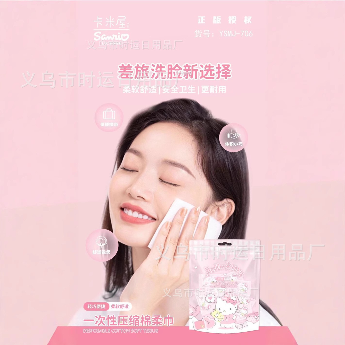 Sanrio 일회용 압축 수건 여행 휴대용 캔디 클렌징 수건 두꺼운 독립형 얼굴 수건스토어 가기