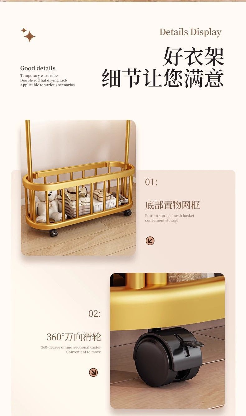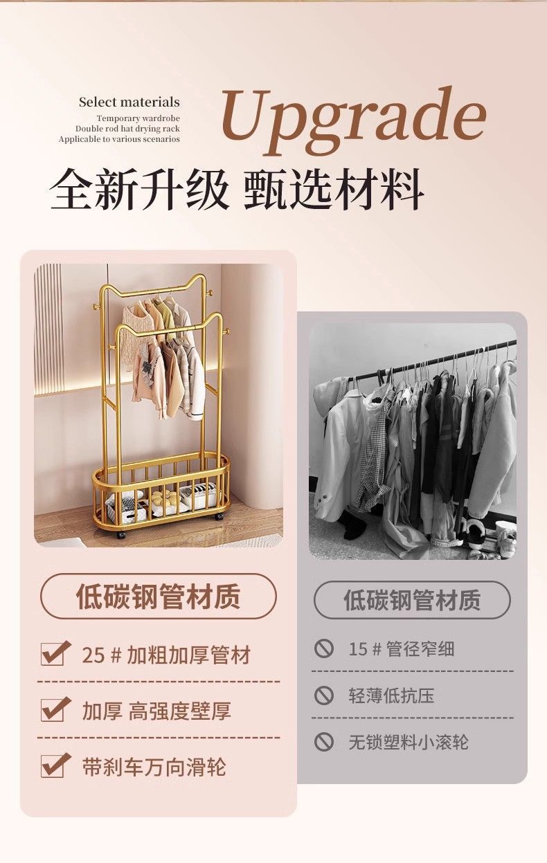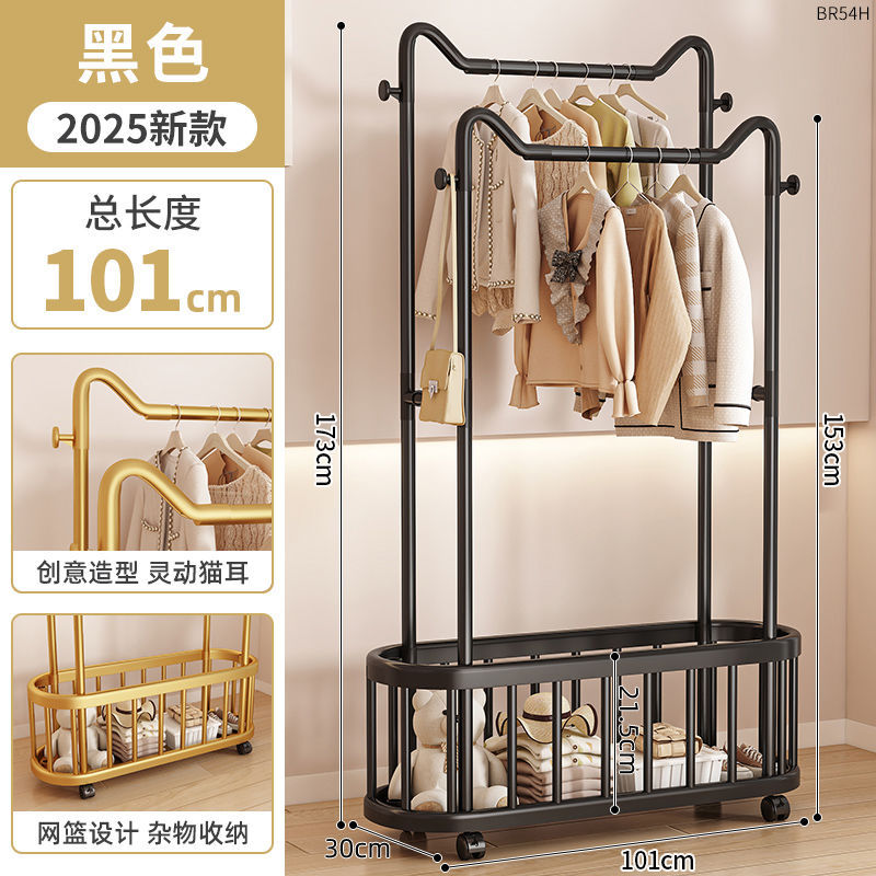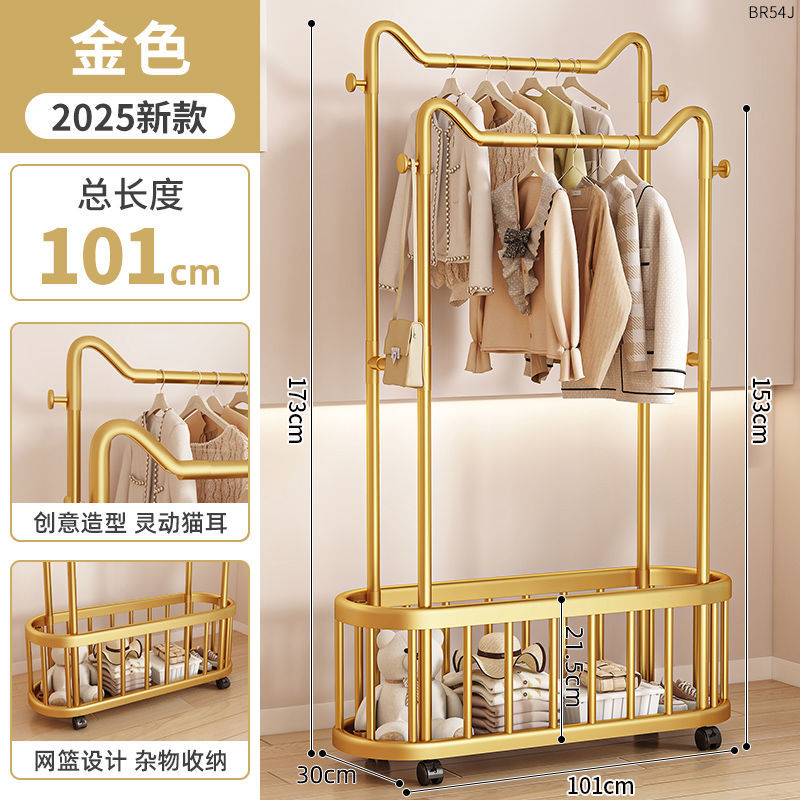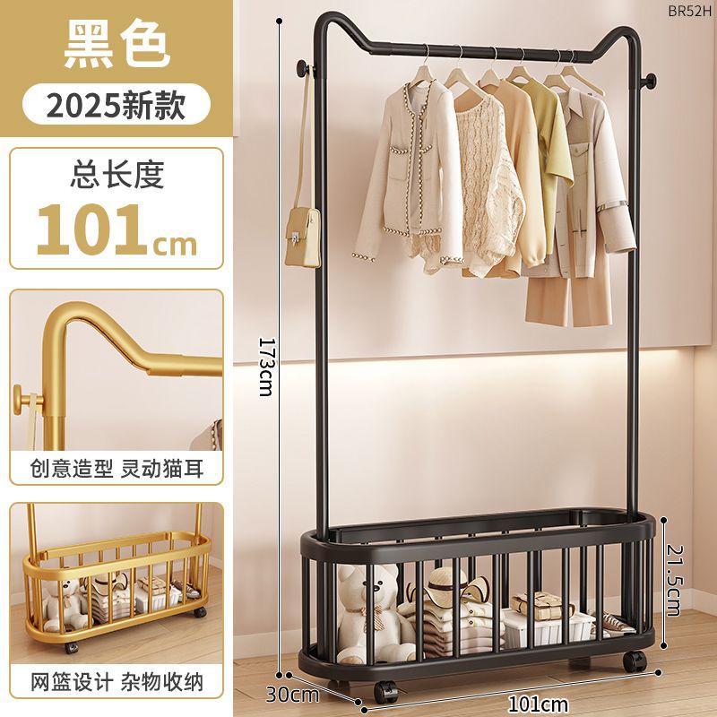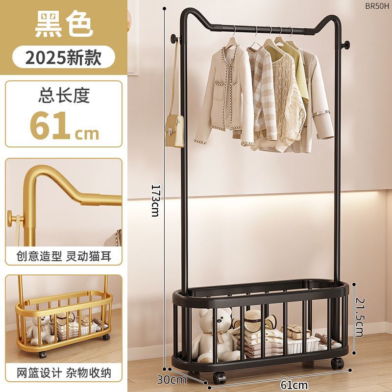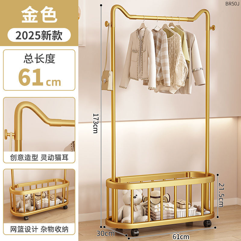 옷걸이 바닥 스탠딩 수직 옷걸이 이동식 바퀴 달린 가정용 수납 옷걸이 거실 인터넷 연예인 가벼운 간단한 코트 랙
