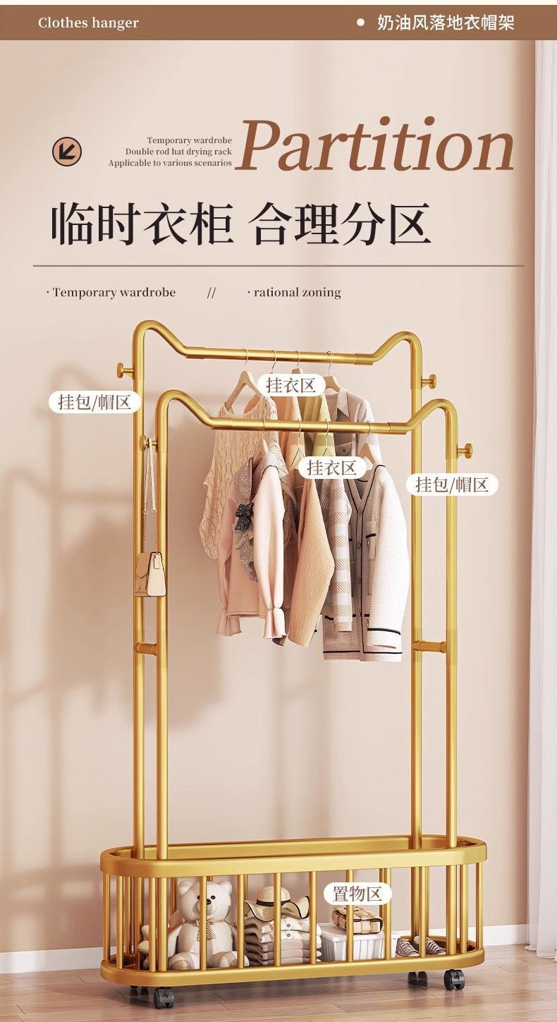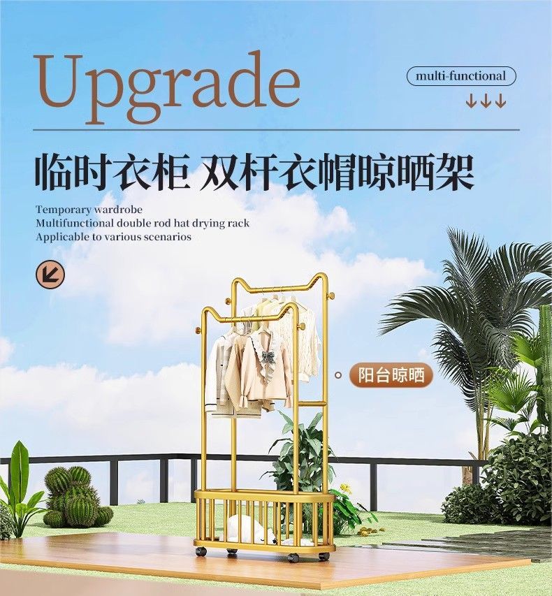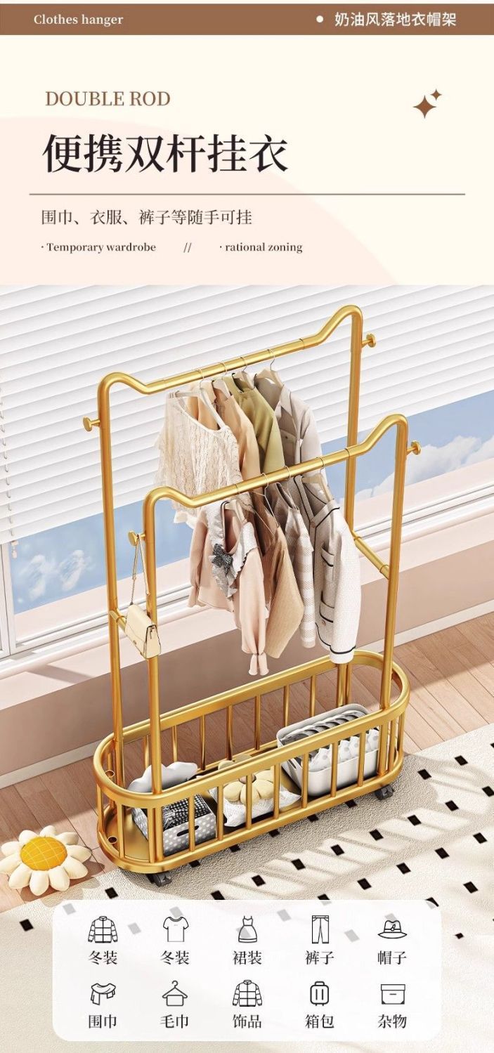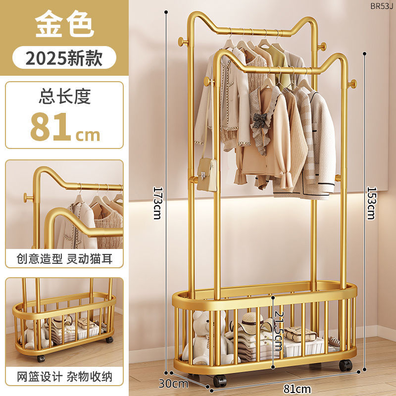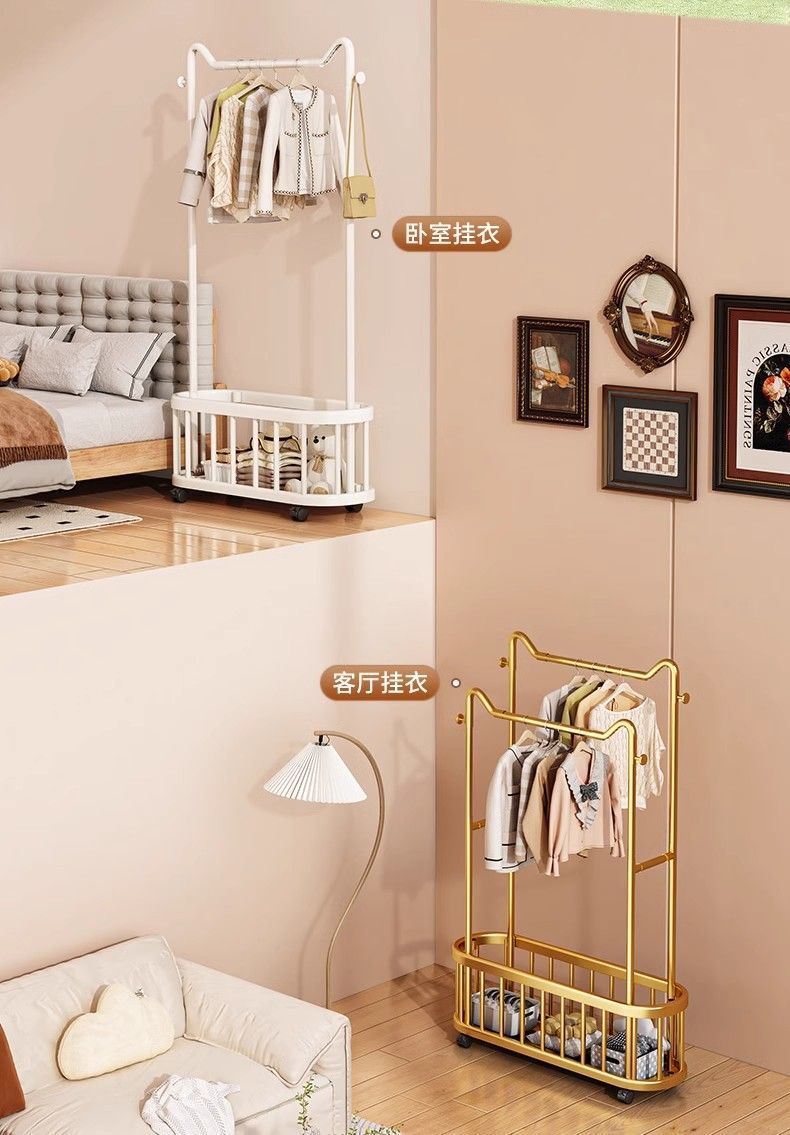 옷걸이 바닥 스탠딩 수직 옷걸이 이동식 바퀴 달린 가정용 수납 옷걸이 거실 인터넷 연예인 가벼운 간단한 코트 랙스토어 가기