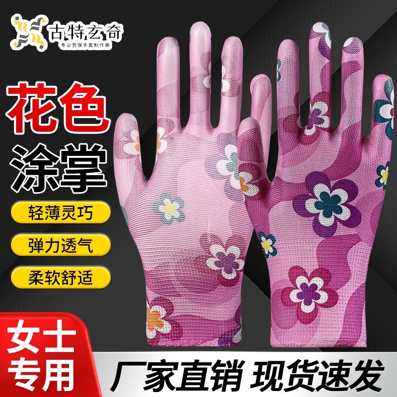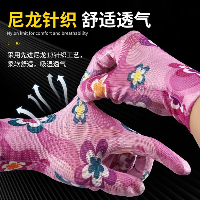 도매 얼룩말 패턴 PU 코팅 손바닥 장갑, 유연한 포장, 수확, 노동 보호, 원예, 고무 코팅 및 내유성스토어 가기