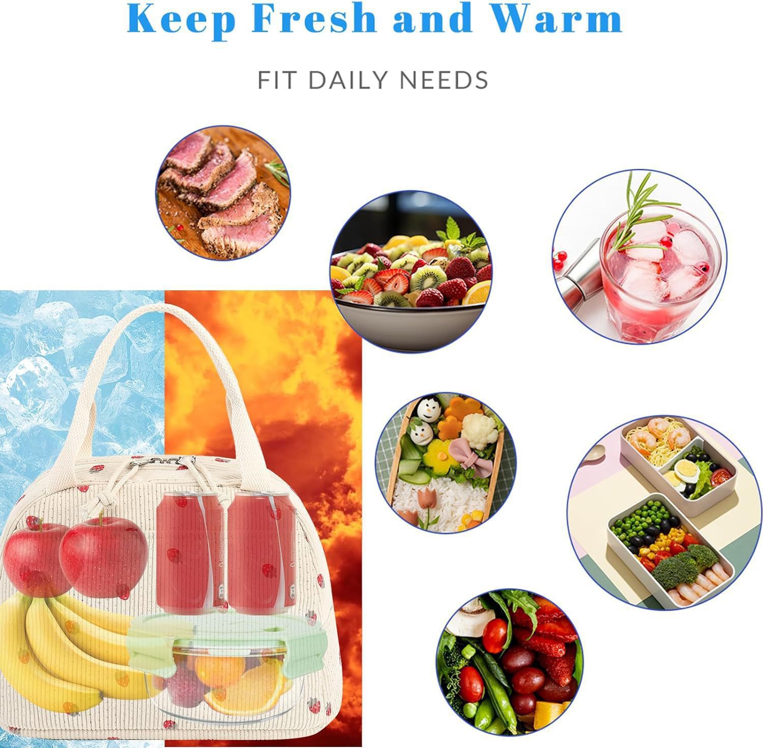 학생 및 직장인을 위한 국경 간 신제품 코듀로이 도시락 가방, 도시락 보온 가방, 휴대용 휴대용 식사 가방, 아이스 백스토어 가기