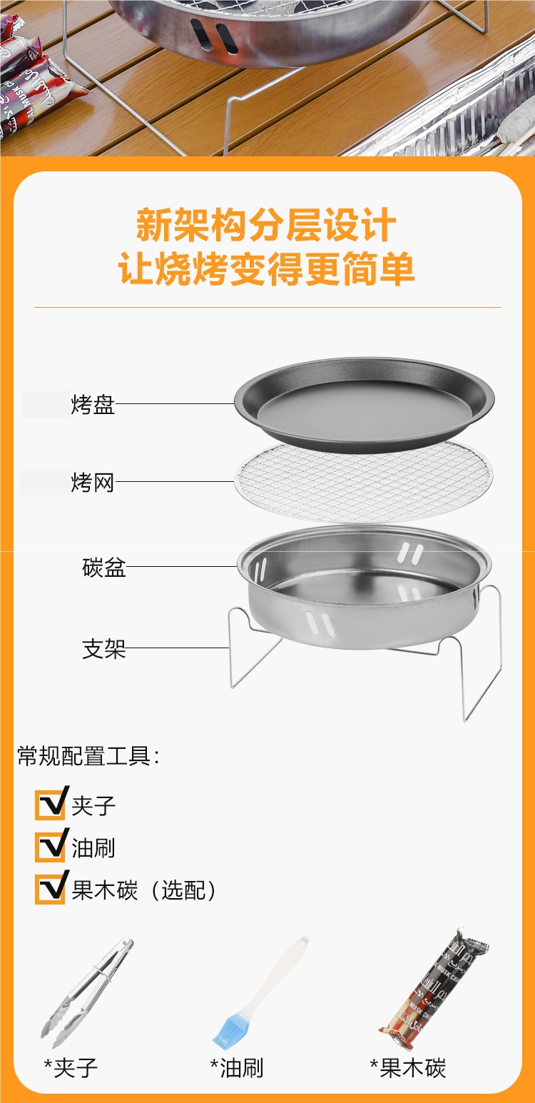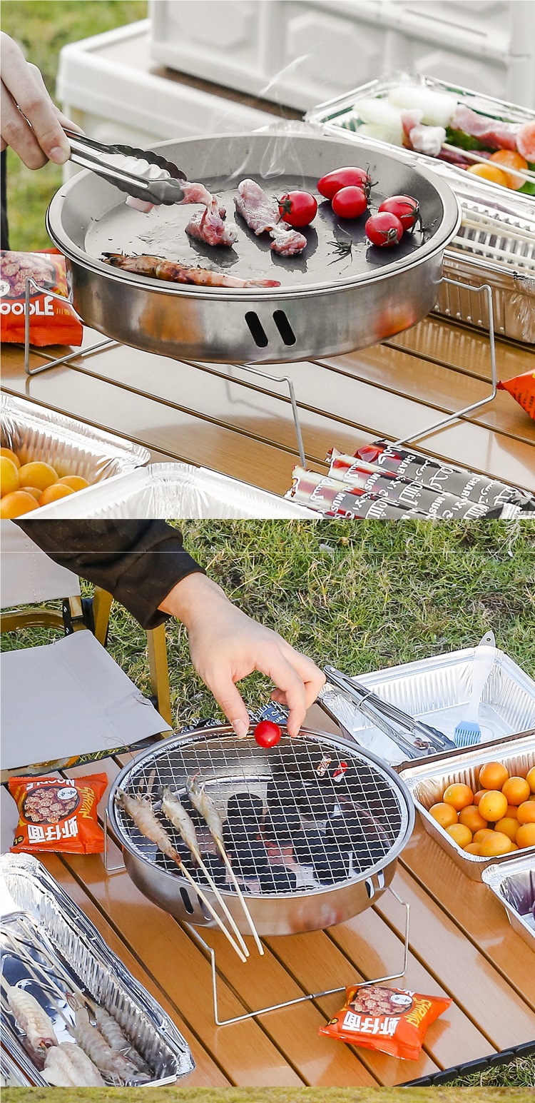 야외 일회용 바베큐 그릴 휴대용 원형 그릴 가정용 무연 과일 숯불 그릴 캠핑 소형 스토브