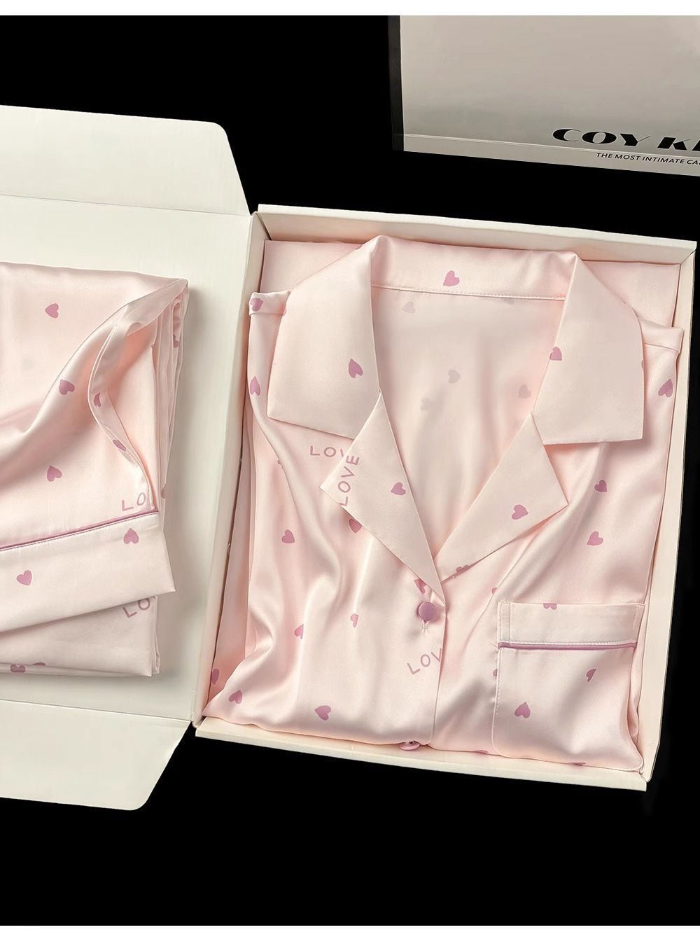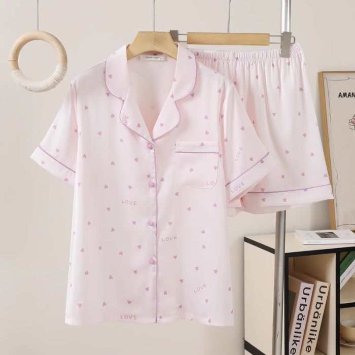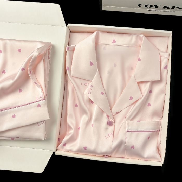여성용 여름 잠옷, 얼음과 눈의 실크 더블 쇼트 스위트 러브 라펠 가디건, 얇고 더블 롱 편안한 홈웨어