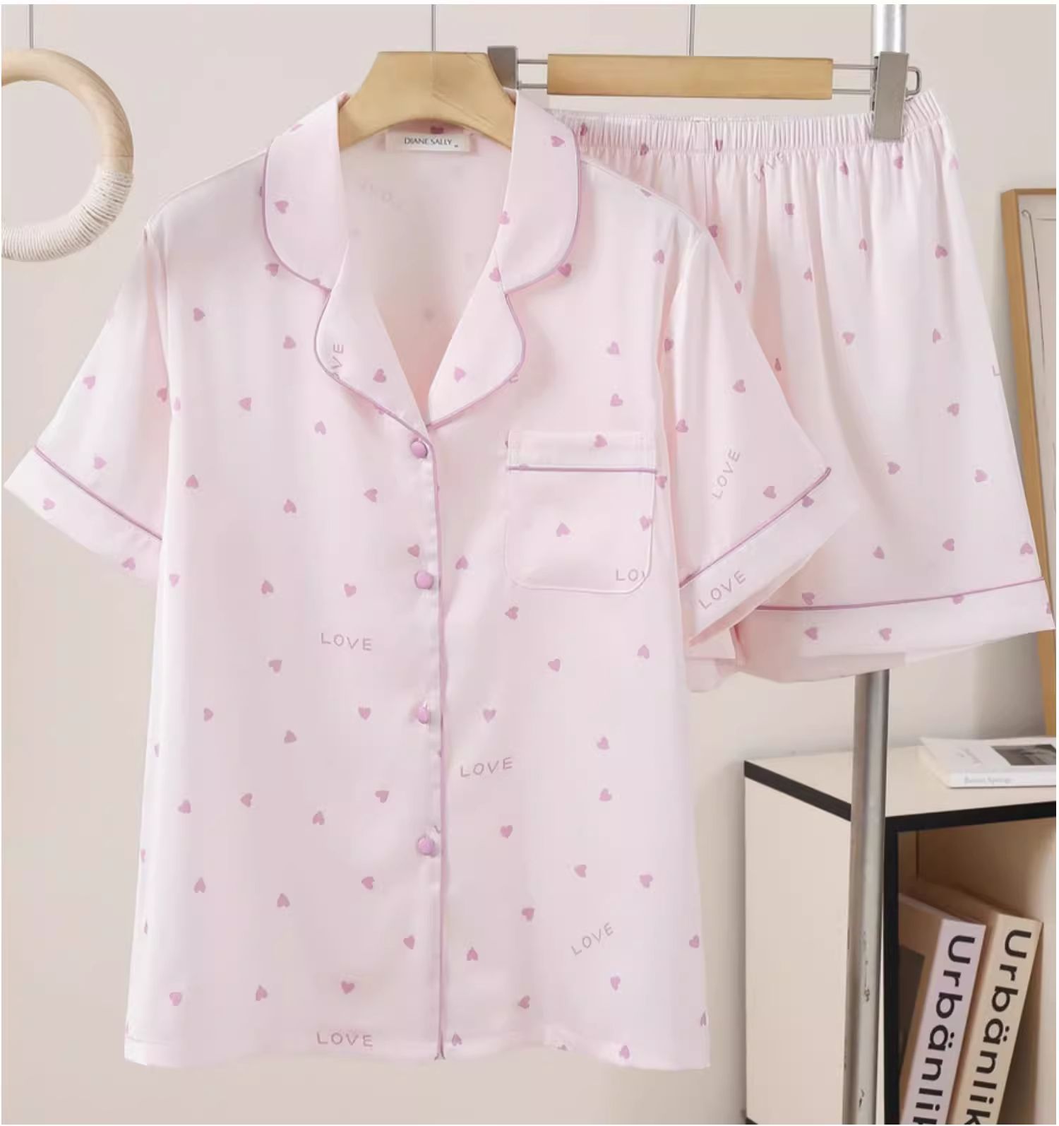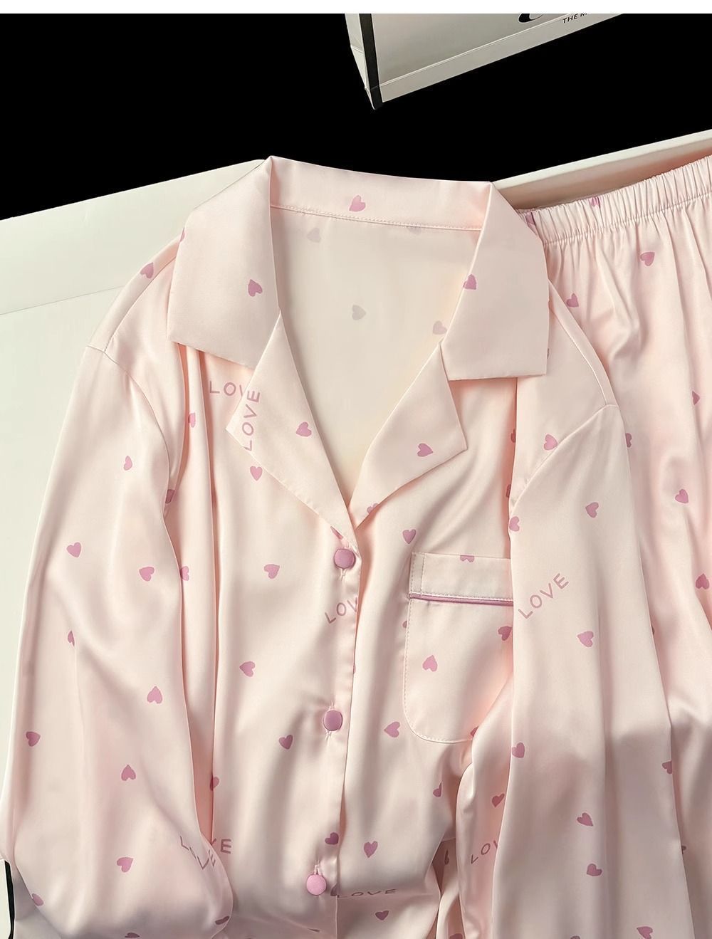 여성용 여름 잠옷, 얼음과 눈의 실크 더블 쇼트 스위트 러브 라펠 가디건, 얇고 더블 롱 편안한 홈웨어스토어 가기