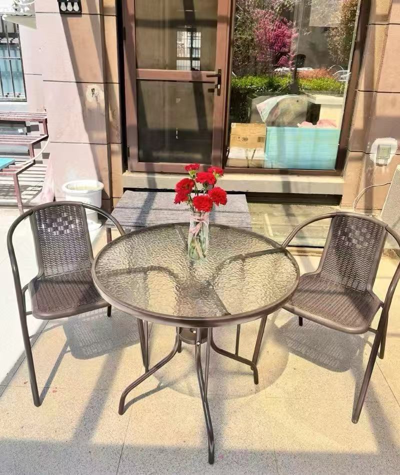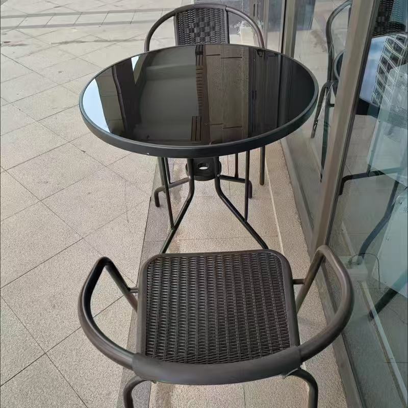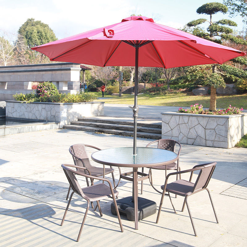 정원 발코니 조합 야외 레저 우산 야외 홈 안뜰 접이식 테이블 야외 테이블과 의자 3피스 세트