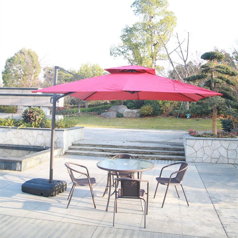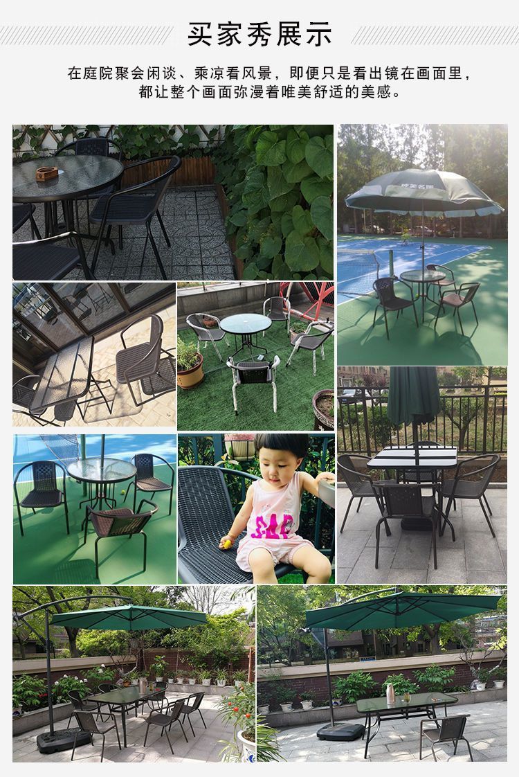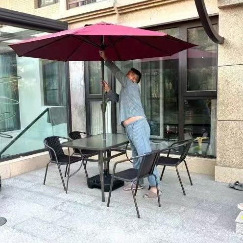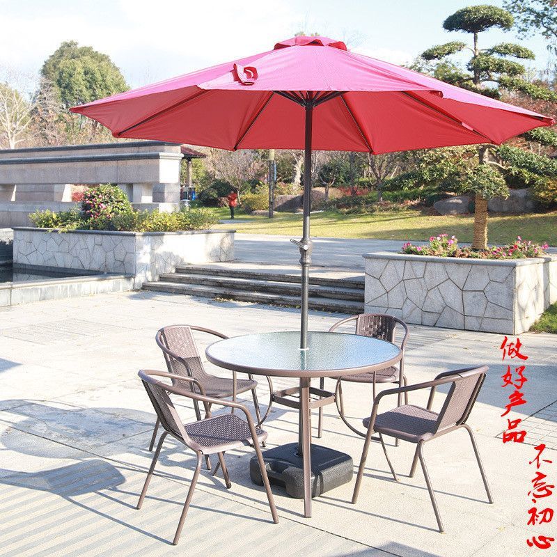정원 발코니 조합 야외 레저 우산 야외 홈 안뜰 접이식 테이블 야외 테이블과 의자 3피스 세트스토어 가기
